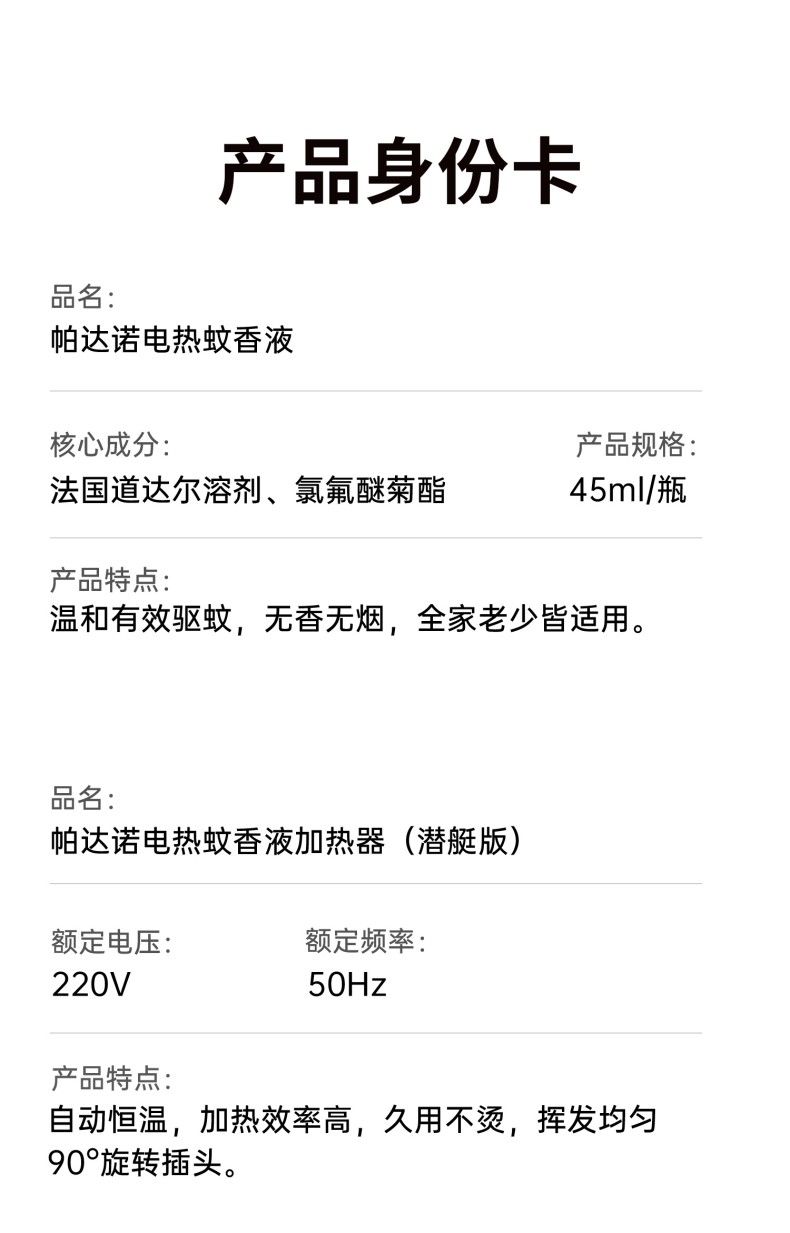 商品名称:帕达诺电蚊香液6瓶+2器