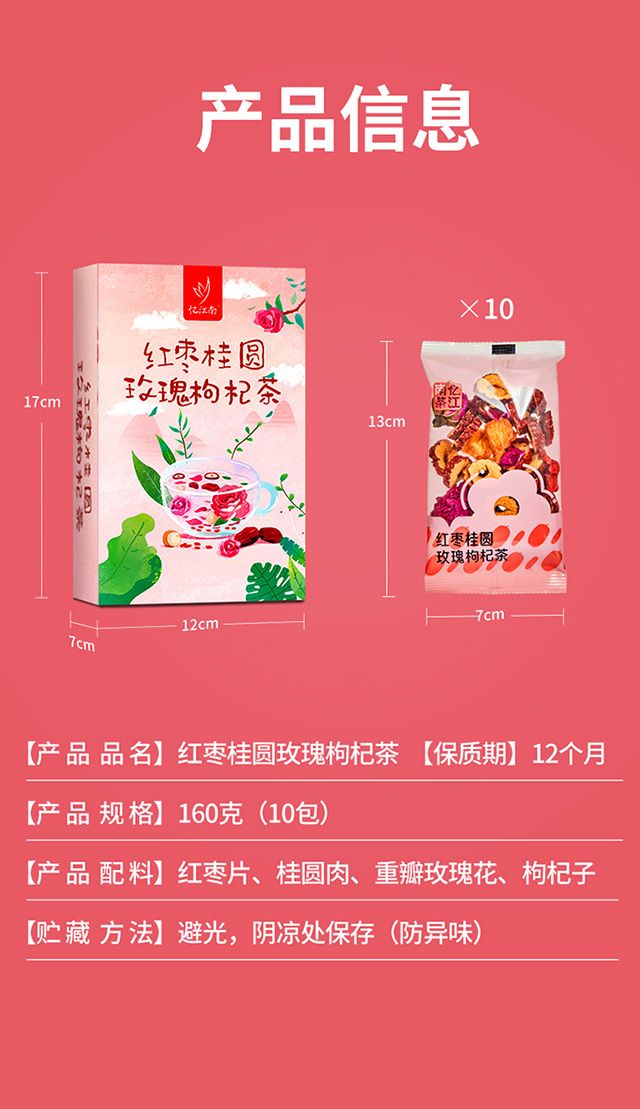 商品名称:忆江南桂圆红枣玫瑰枸杞茶160g*2盒