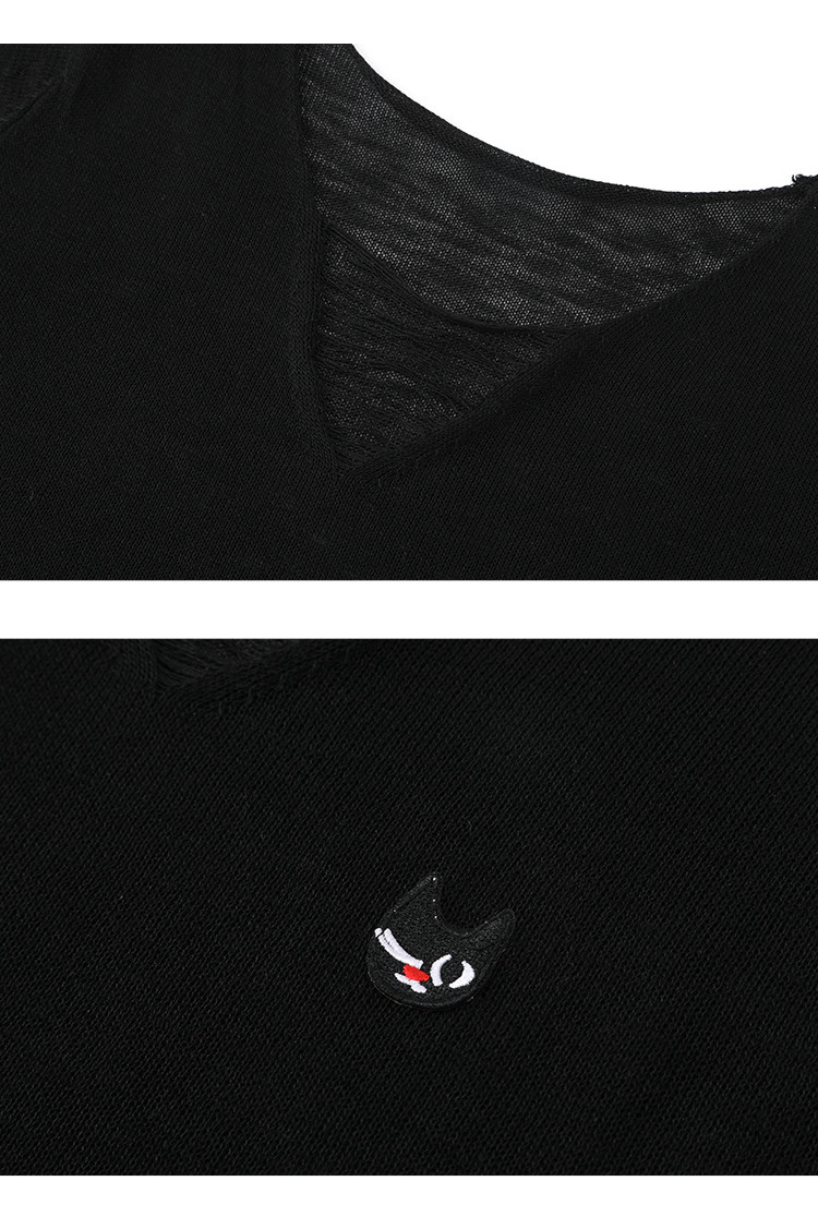 时尚文艺风设计感V领短袖T恤2025夏季休闲百搭女式针织衫 797853
