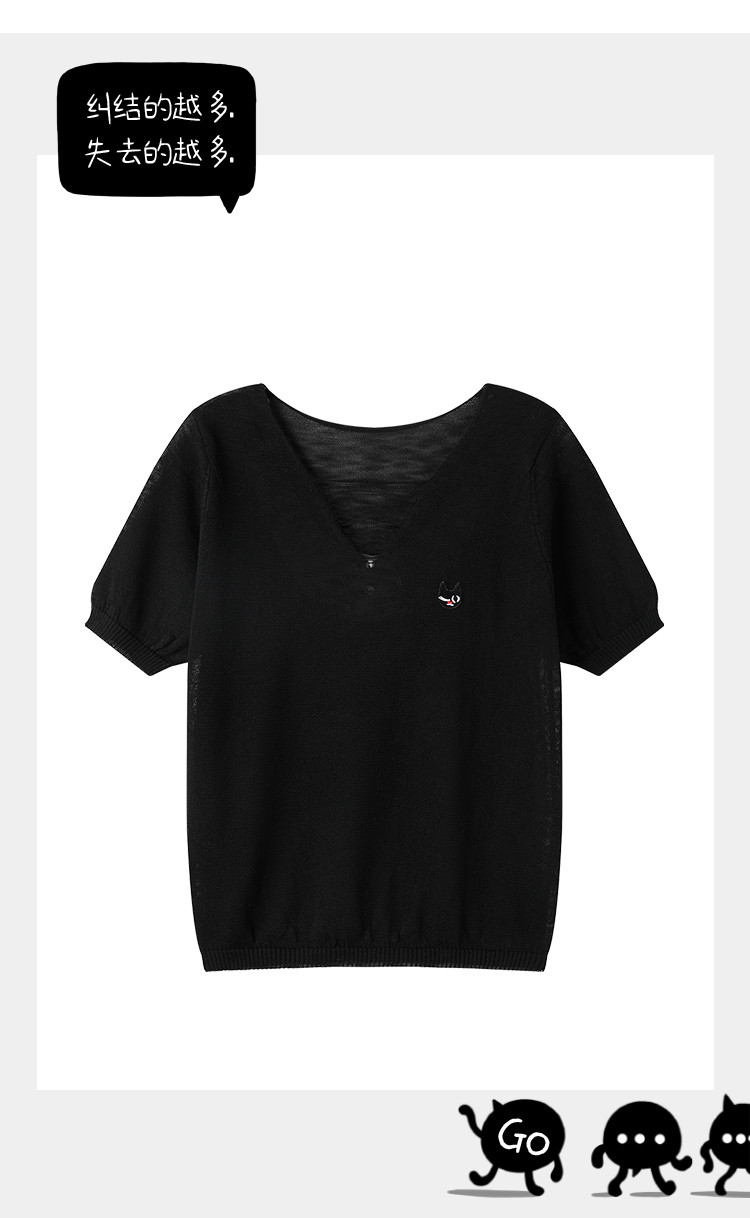 商品名称:时尚文艺风设计感V领短袖T恤2025夏季休闲百搭女式针织衫 797853