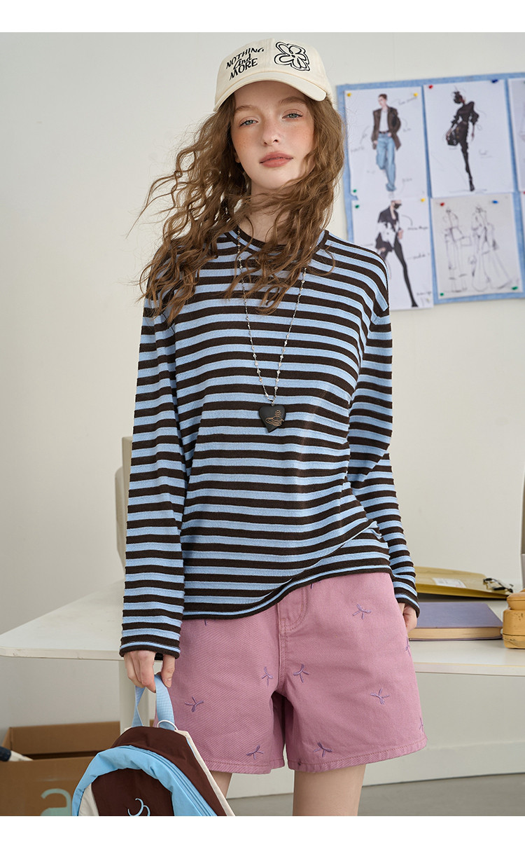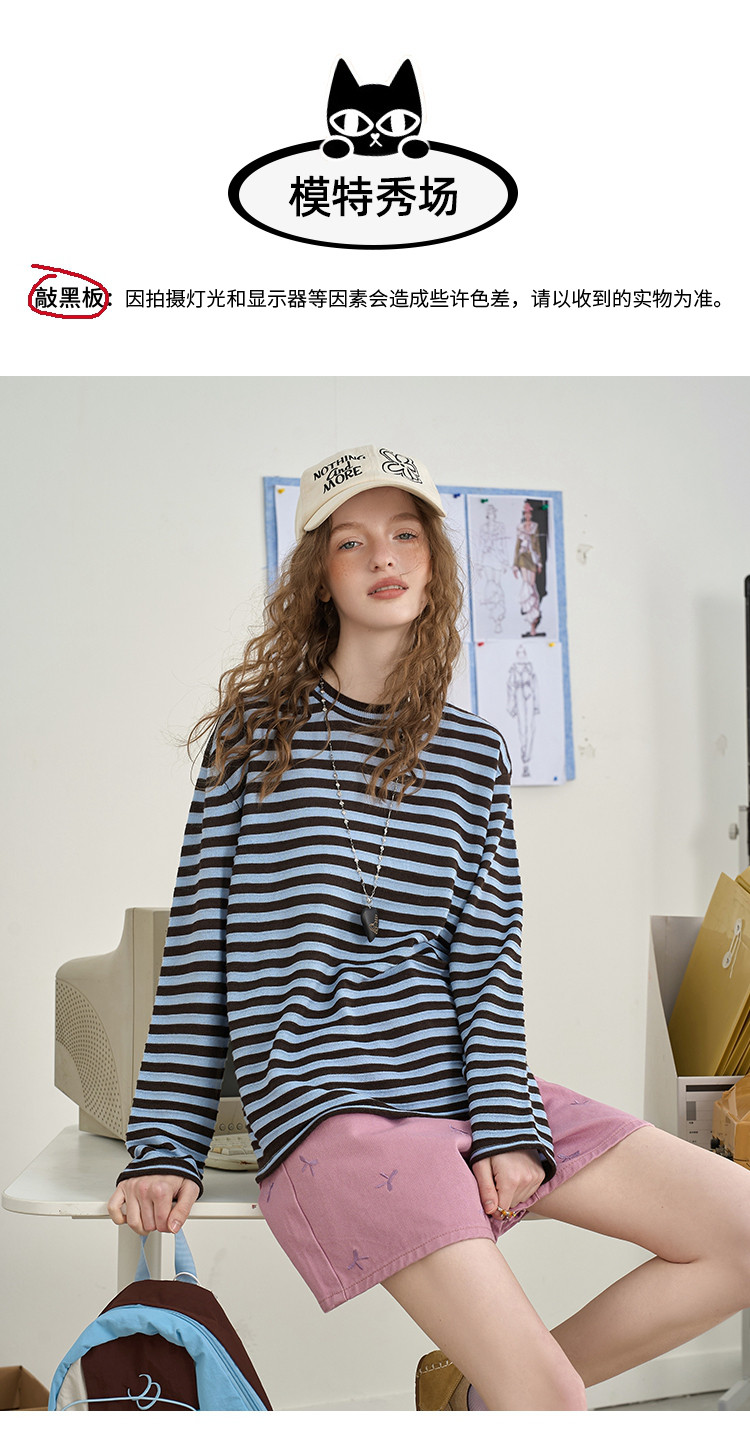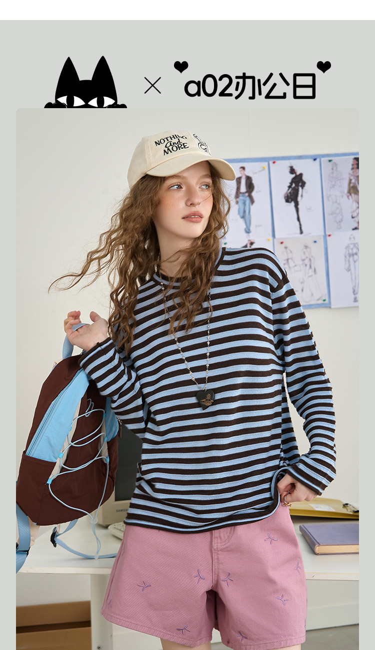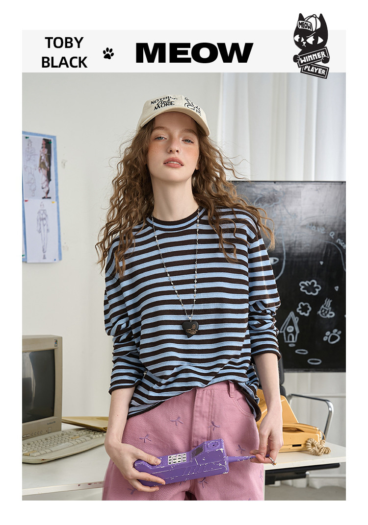 商品名称:肯豆风撞色立体提花条纹打底长袖2025秋季宽松休闲女式针织衫 492893