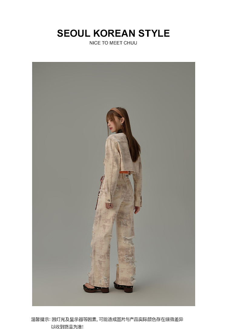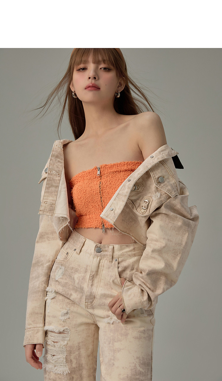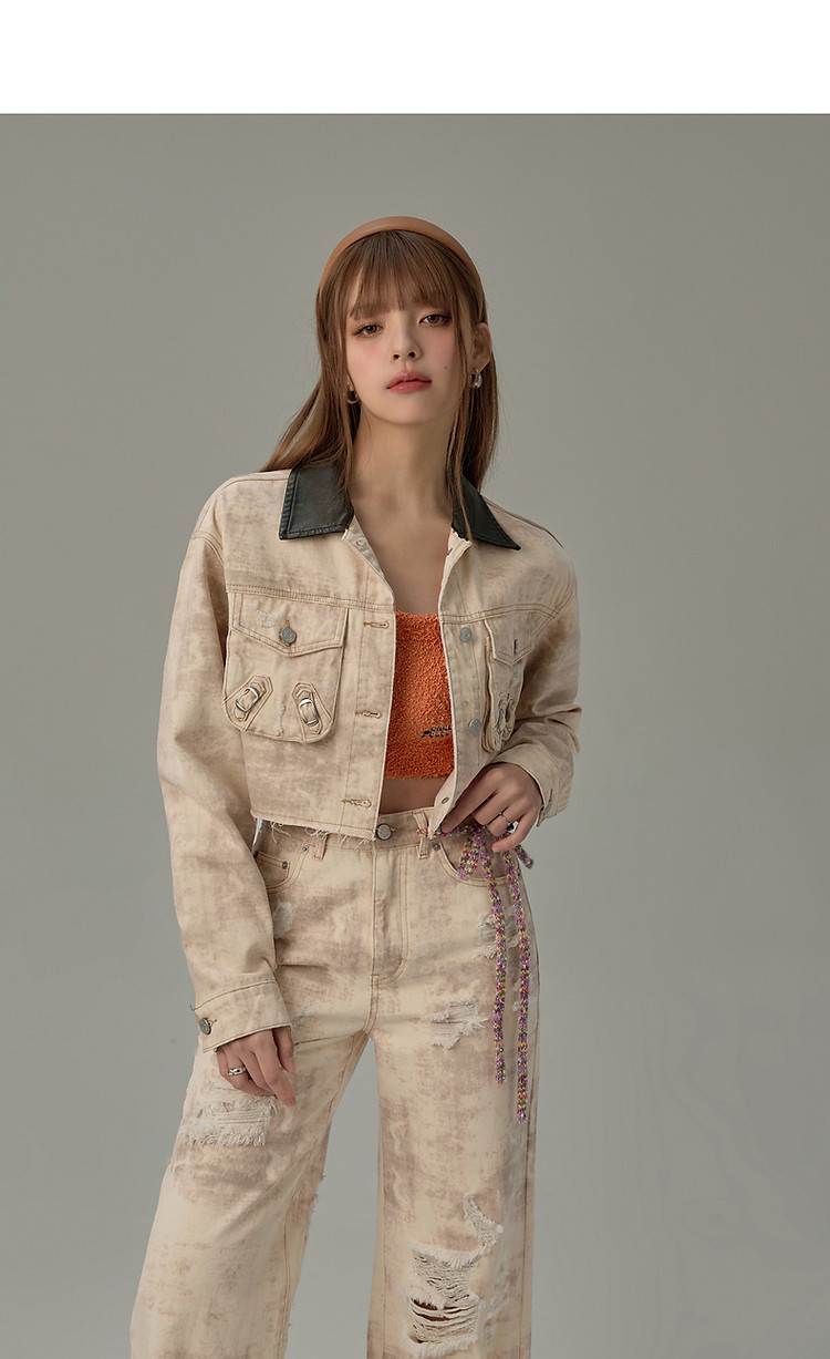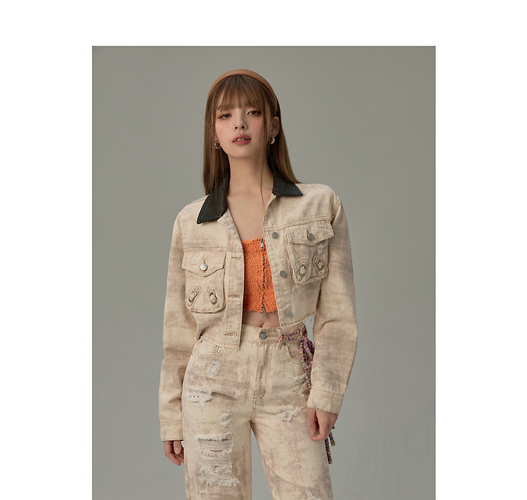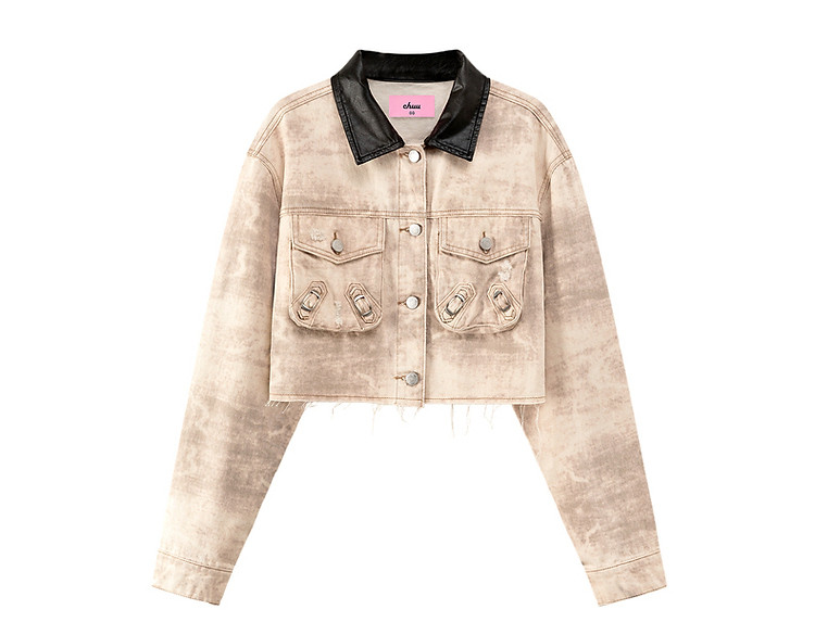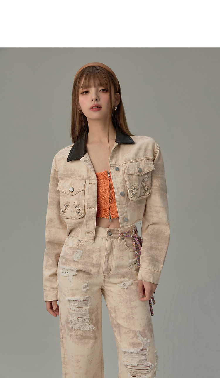 商品名称:多口袋毛边长袖外套女2025夏沙漠破旧重工系列短款牛仔衣 632147
