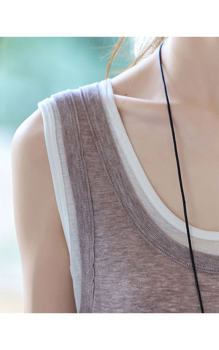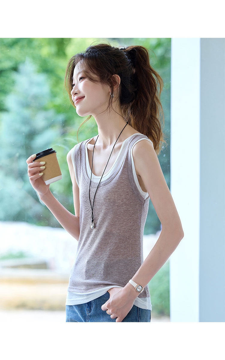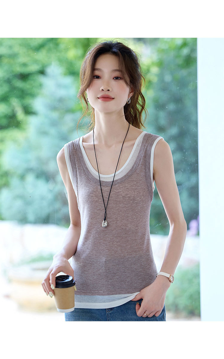 【含绵羊毛天丝】舒适柔软云感背心2025夏季时髦假两件上衣女 012063