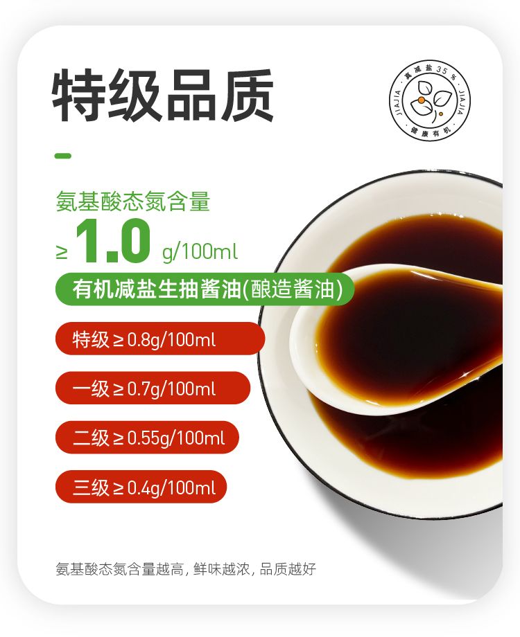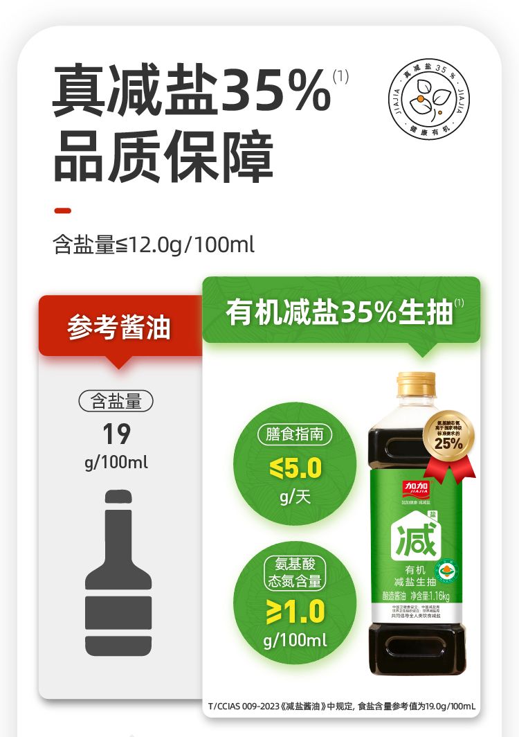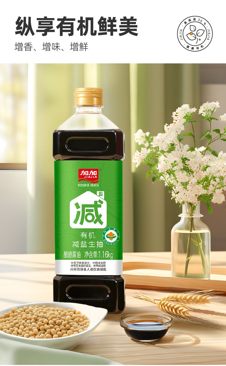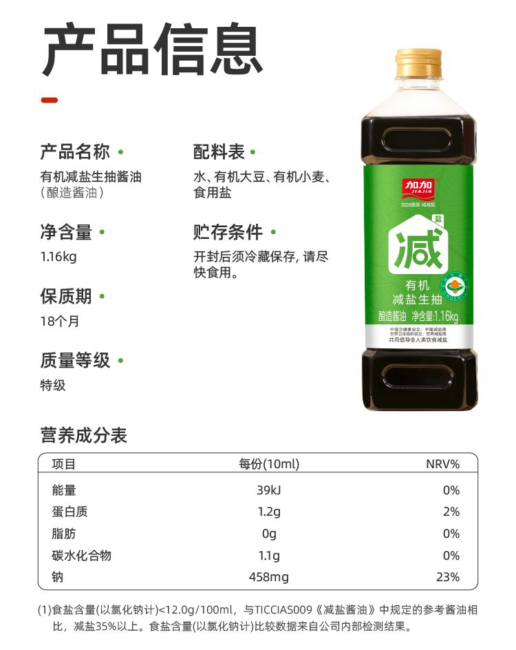 商品名称:加加零添加有机减盐35%生抽1.16kg