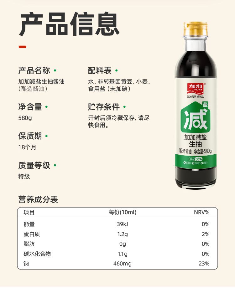 减盐生抽580g*1瓶+减盐陈醋508g+减盐老抽628g+减盐蚝油500g+减盐米醋500g+减盐鸡精100g*1包+减盐生抽120ml (新老包装随机发)