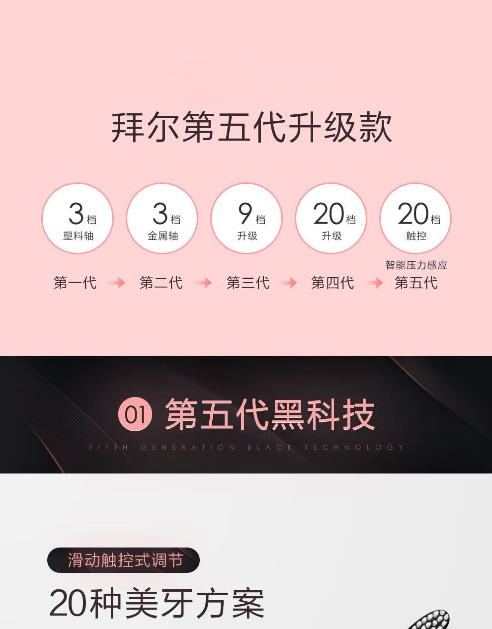 商品名称:拜尔电动牙刷成人充电式声波全自动情侣套装学生党男士8支刷头 X1s+Plus