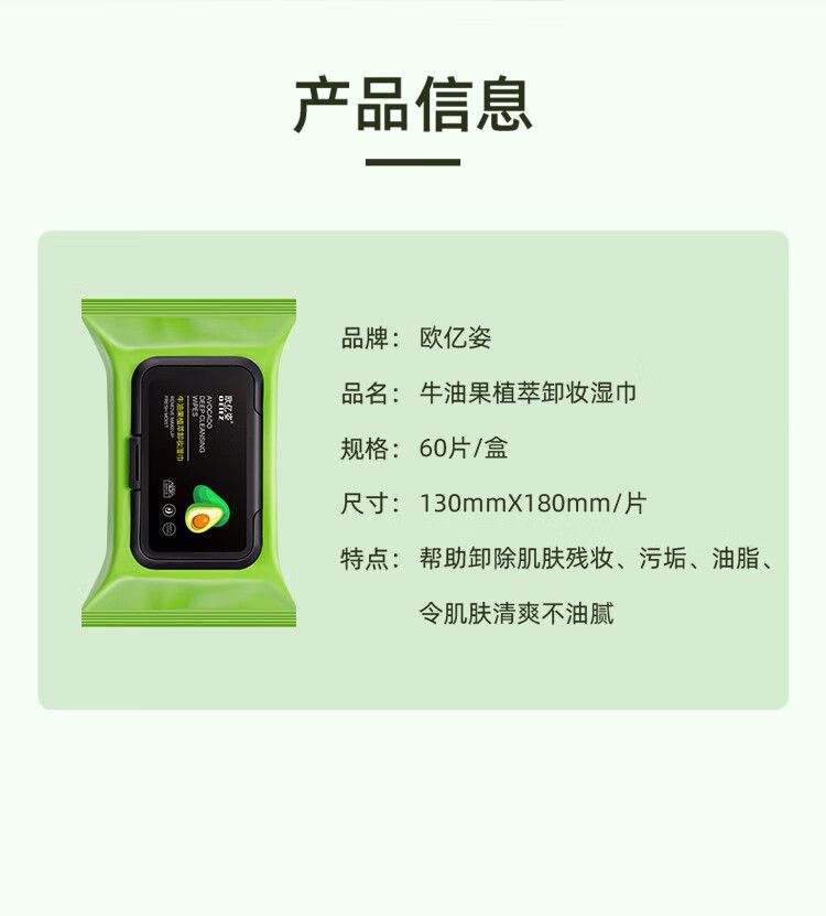 商品名称:欧亿姿牛油果卸妆湿巾60抽*3包