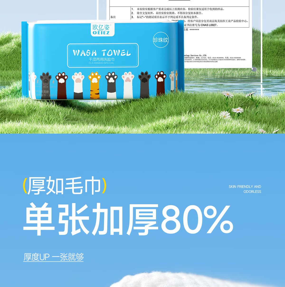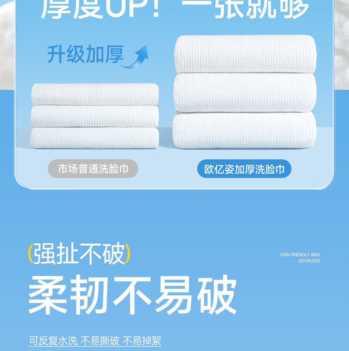 商品名称:欧亿姿一次性加大加厚干湿两用抽取式洗脸巾家庭装10包/提