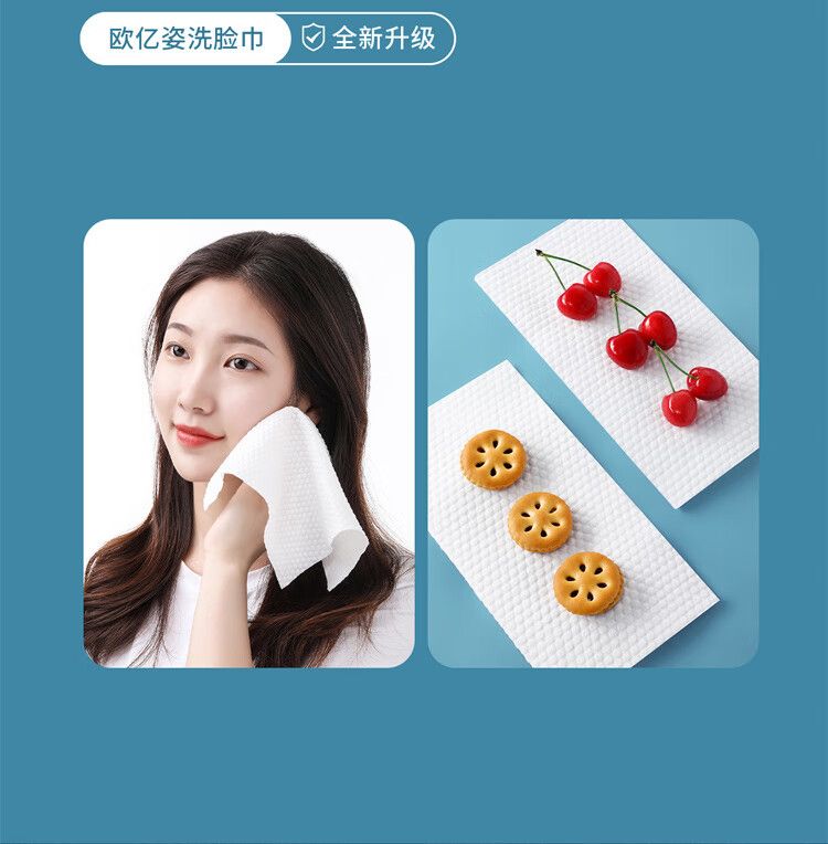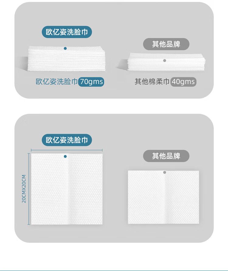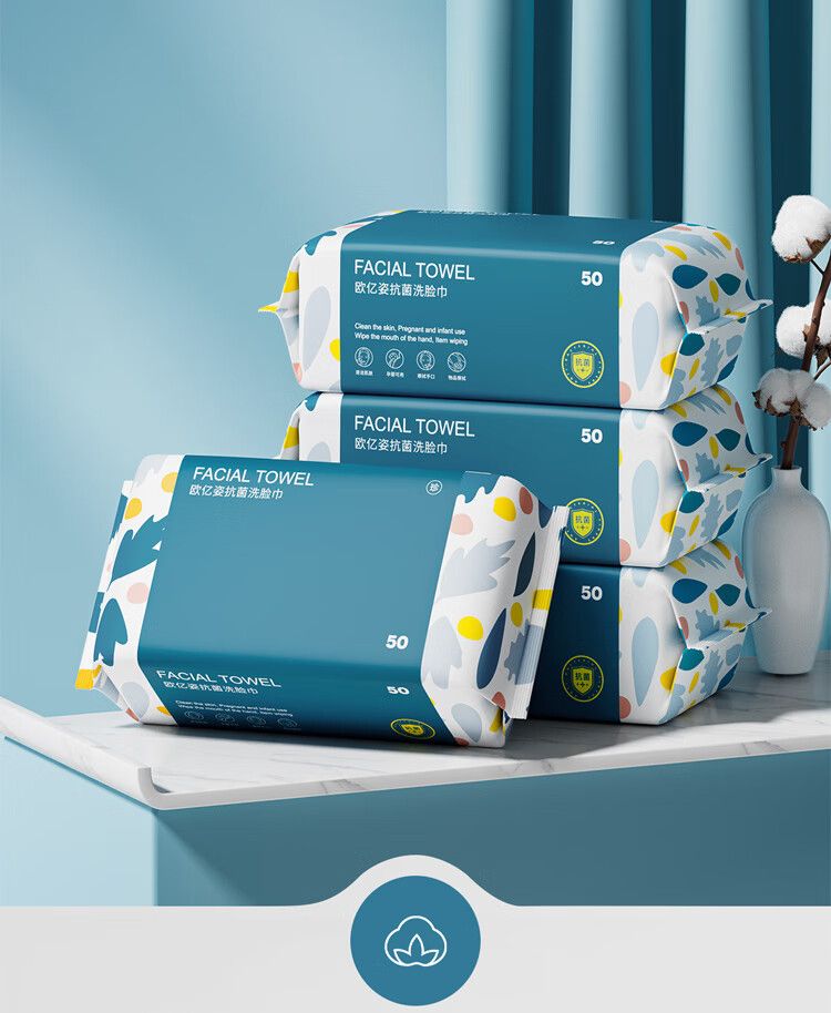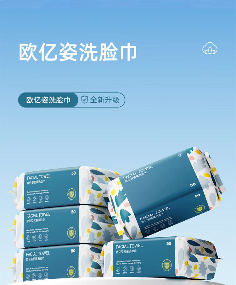 商品名称:欧亿姿一次性抗菌抽取式加厚干湿两用洁面巾50抽*6包