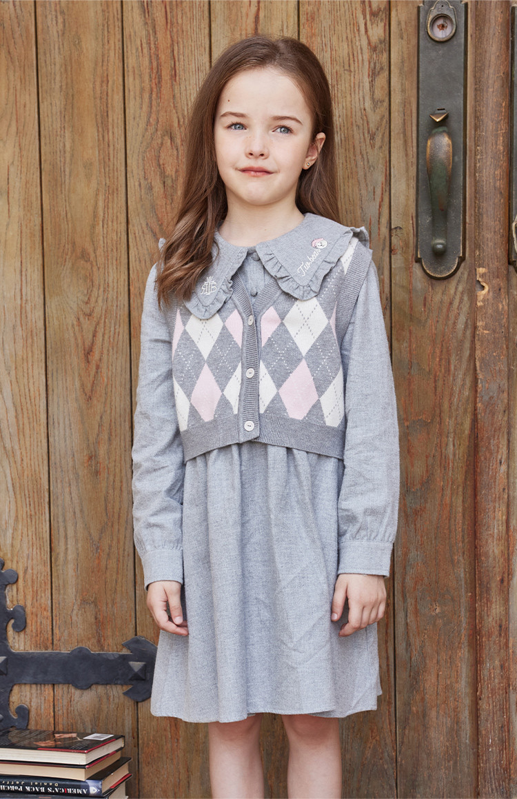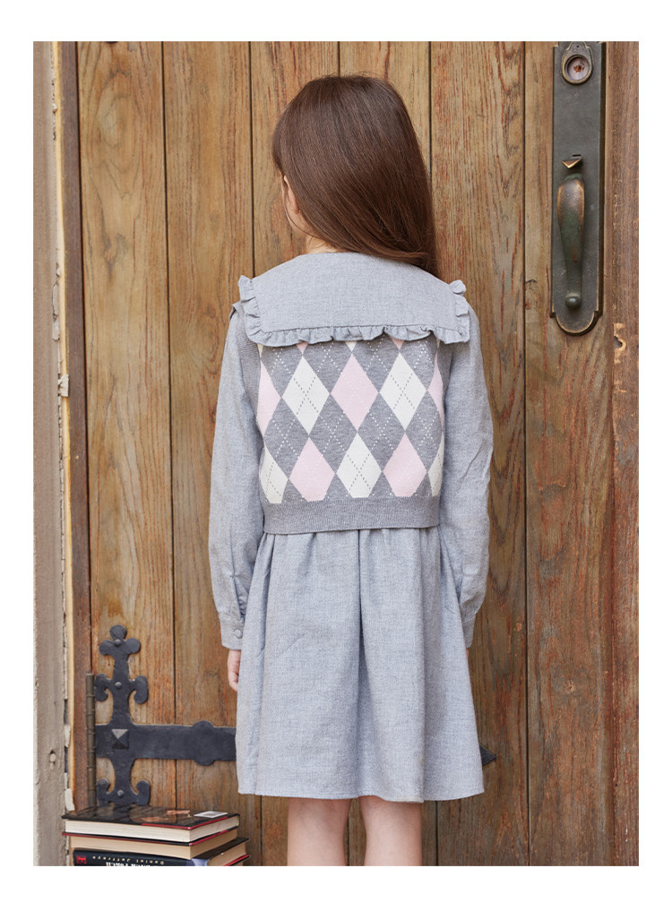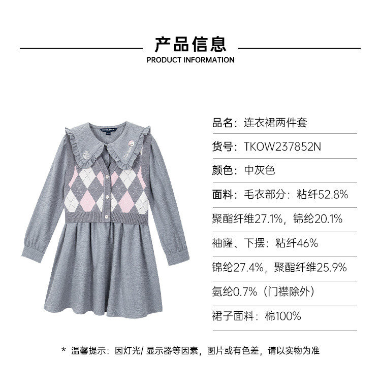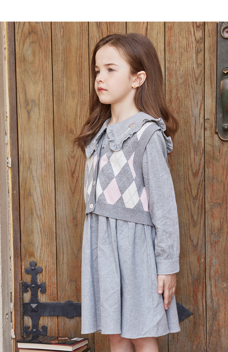 商品名称:小熊童装女童秋季款针织背心连衣裙套装 855425