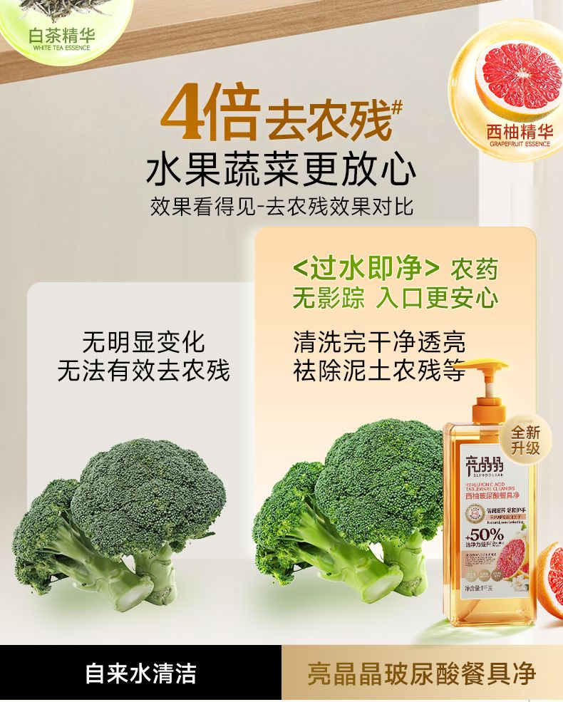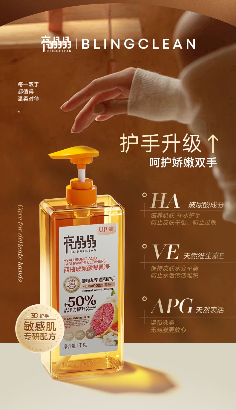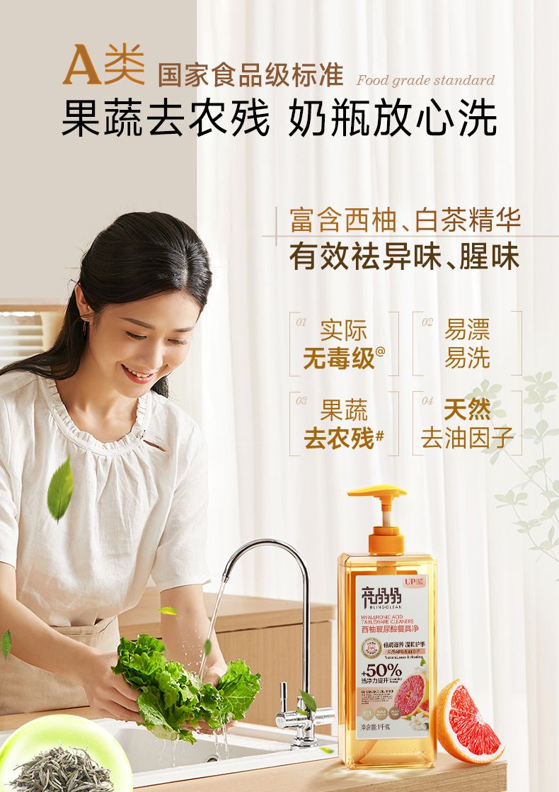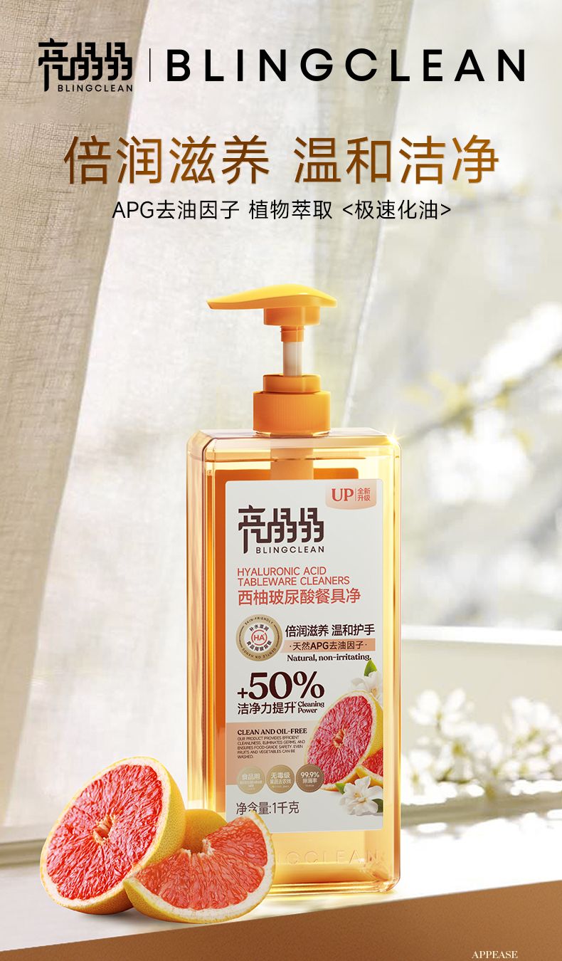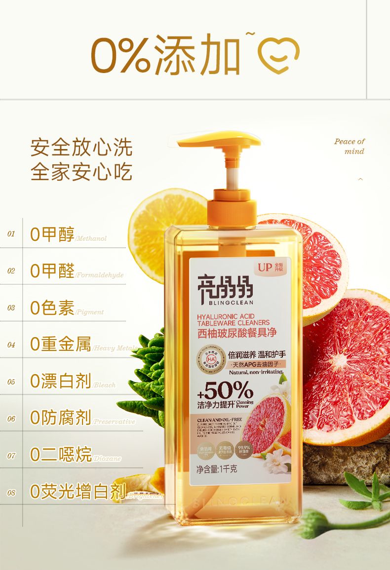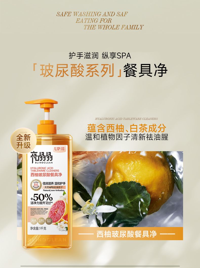 商品名称:亮晶晶玻尿酸餐具净1KG*2瓶(西柚味)