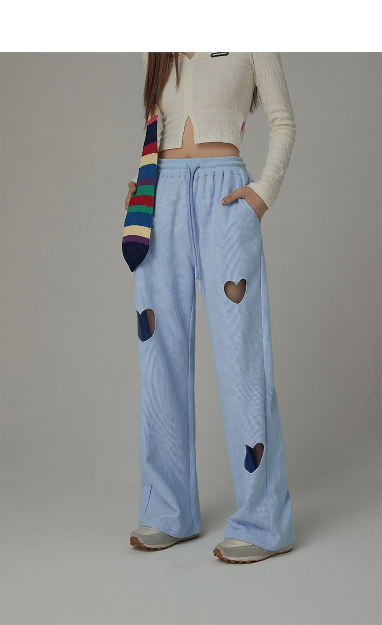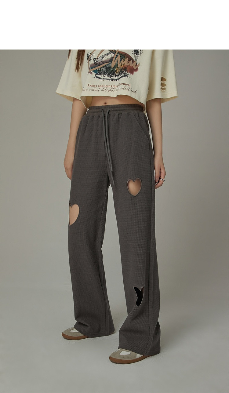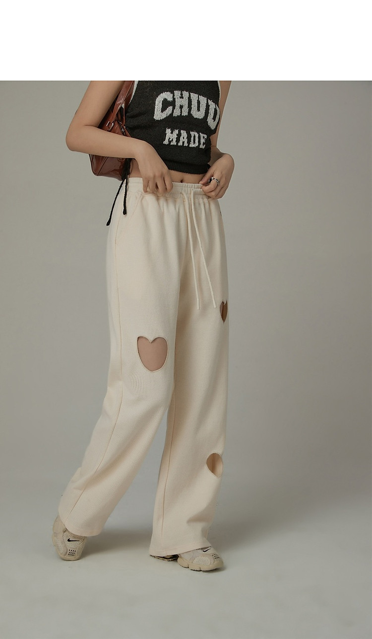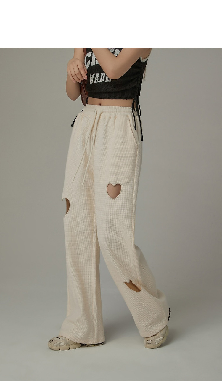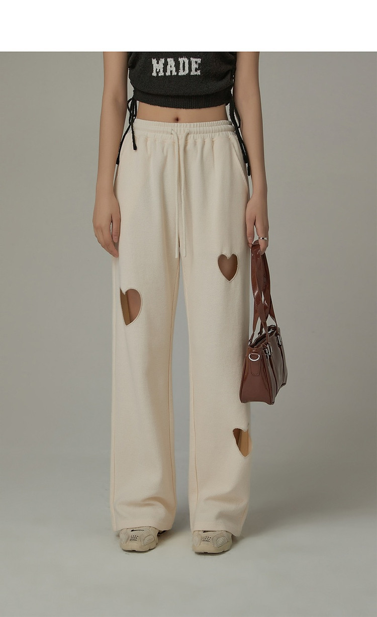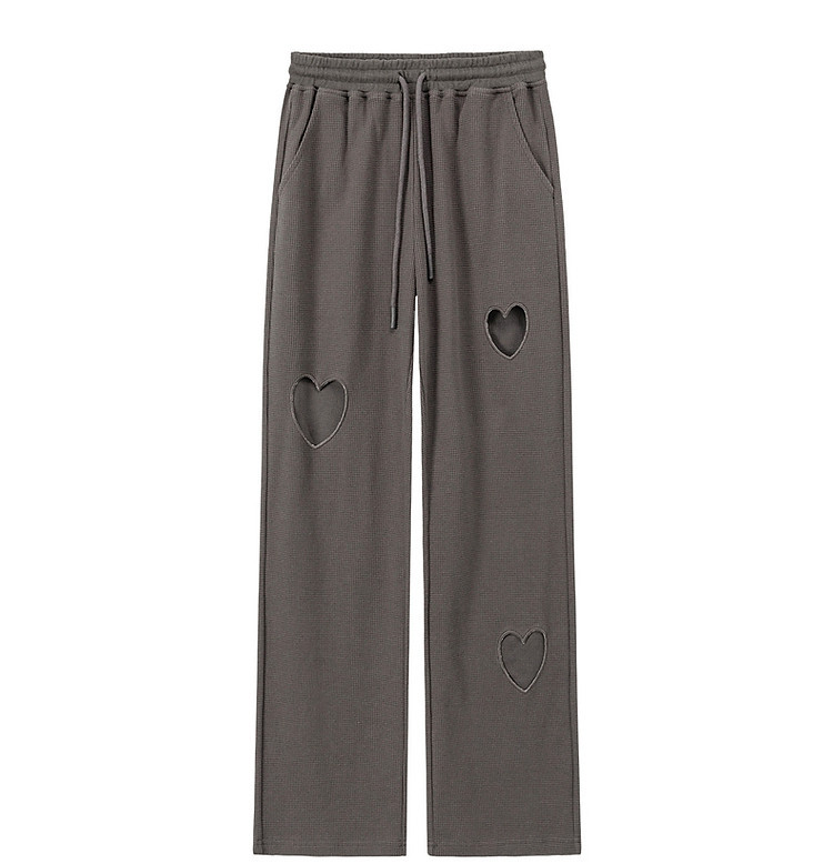镂空爱心休闲裤女2025夏设计感长裤子抽绳阔腿裤 222931