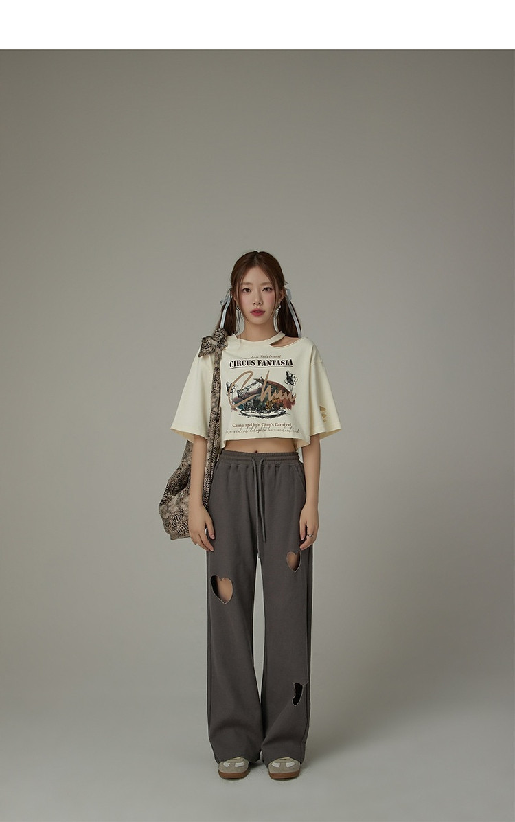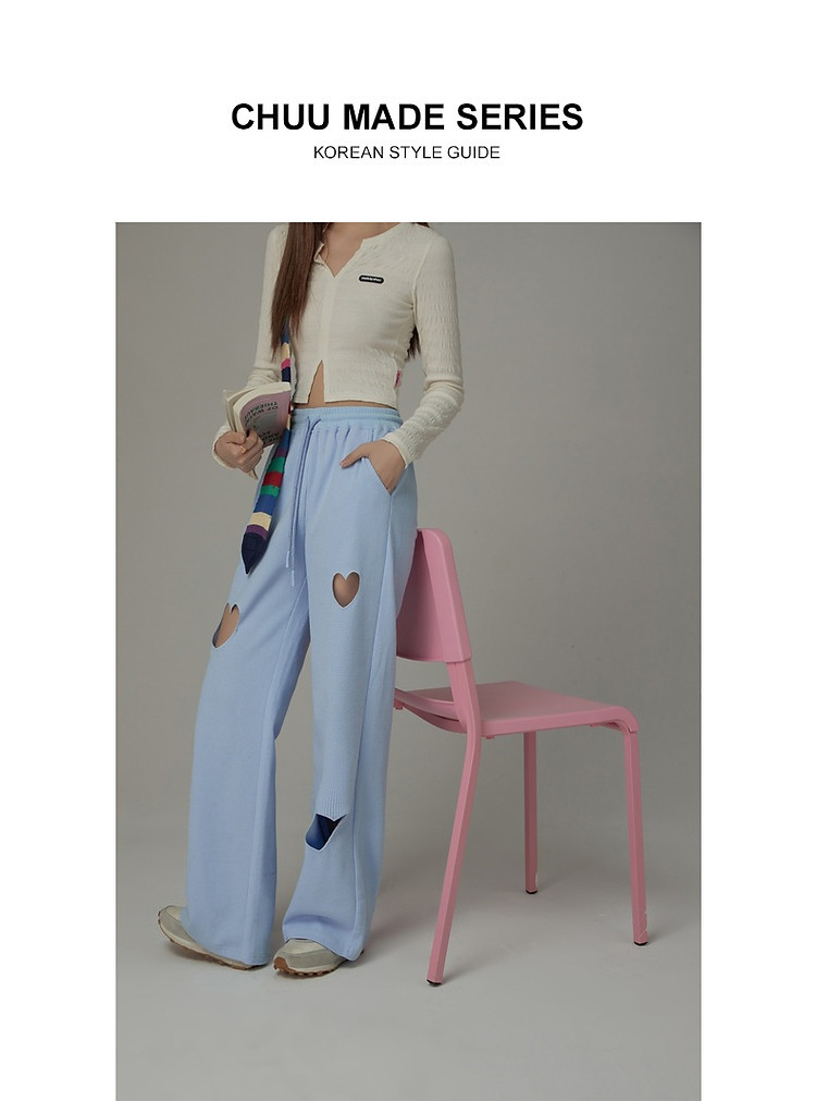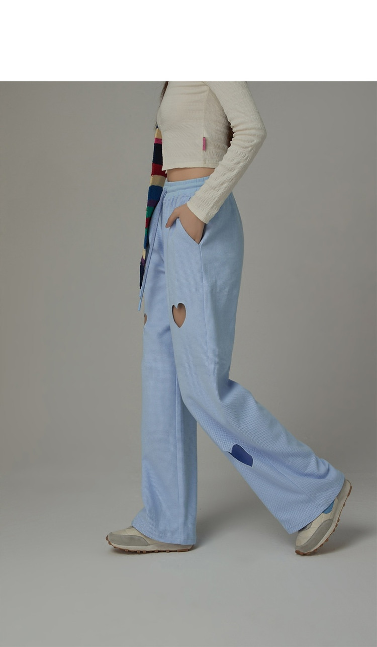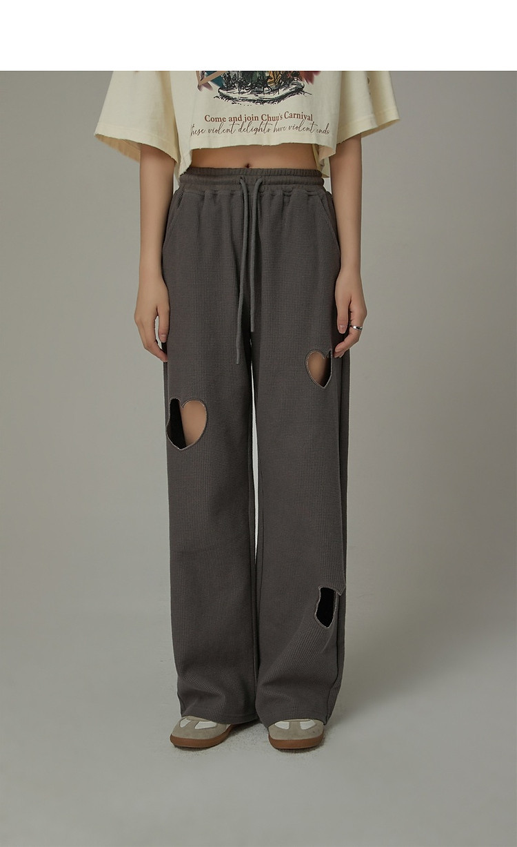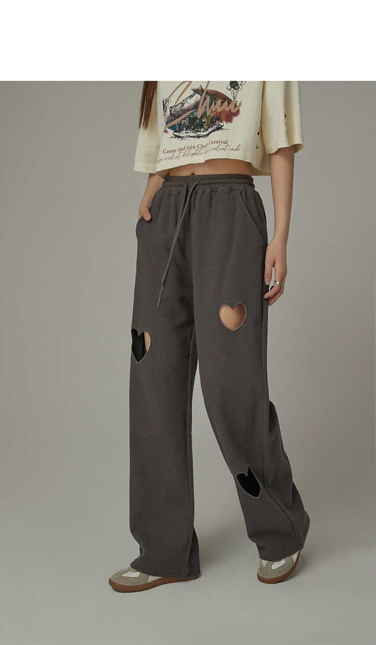 镂空爱心休闲裤女2025夏设计感长裤子抽绳阔腿裤 222931