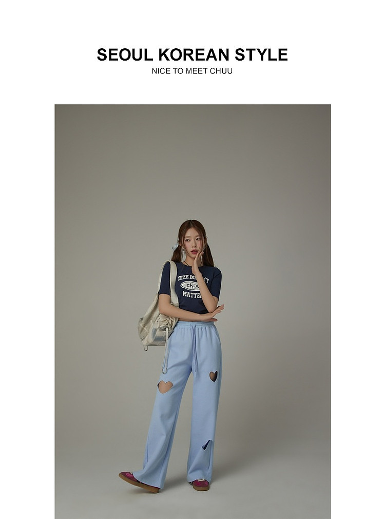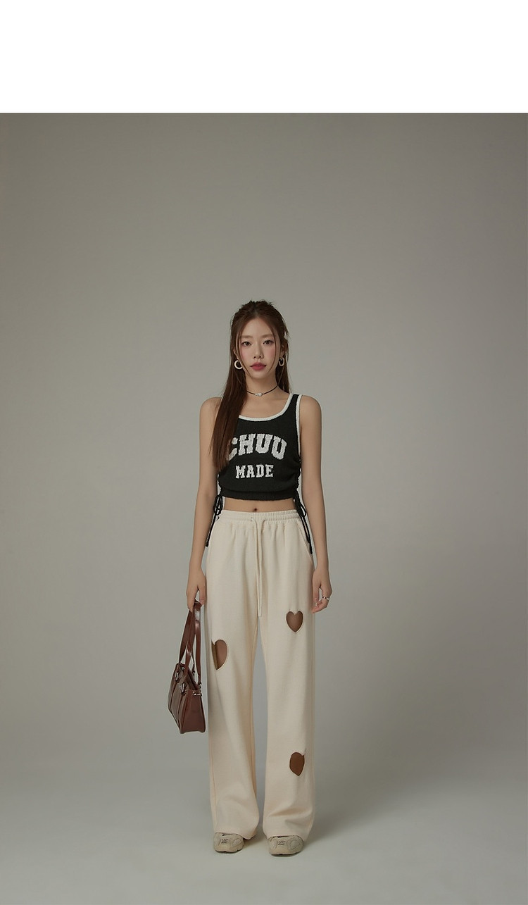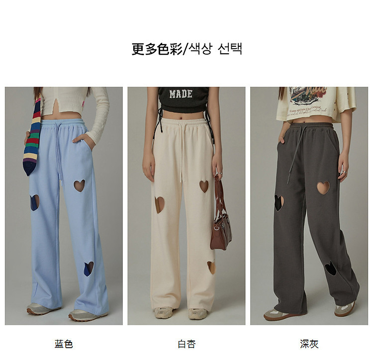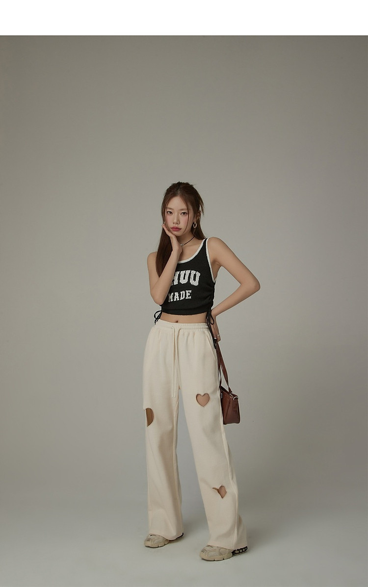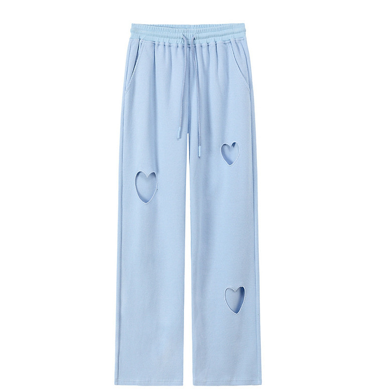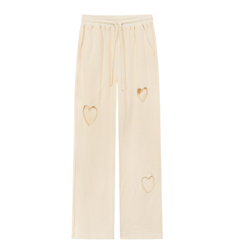 商品名称:镂空爱心休闲裤女2025夏设计感长裤子抽绳阔腿裤 222931