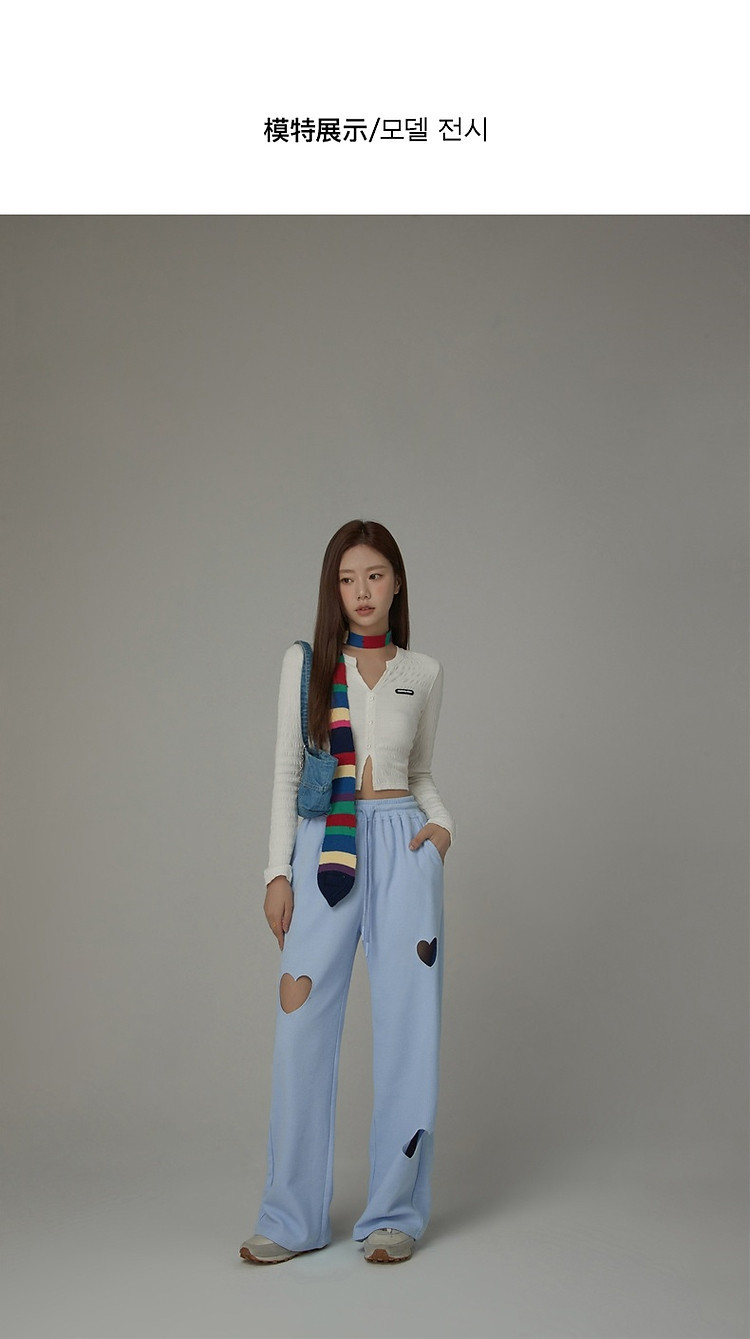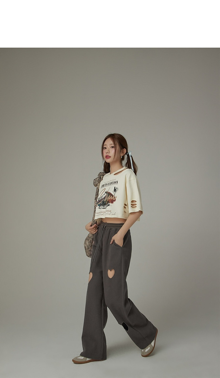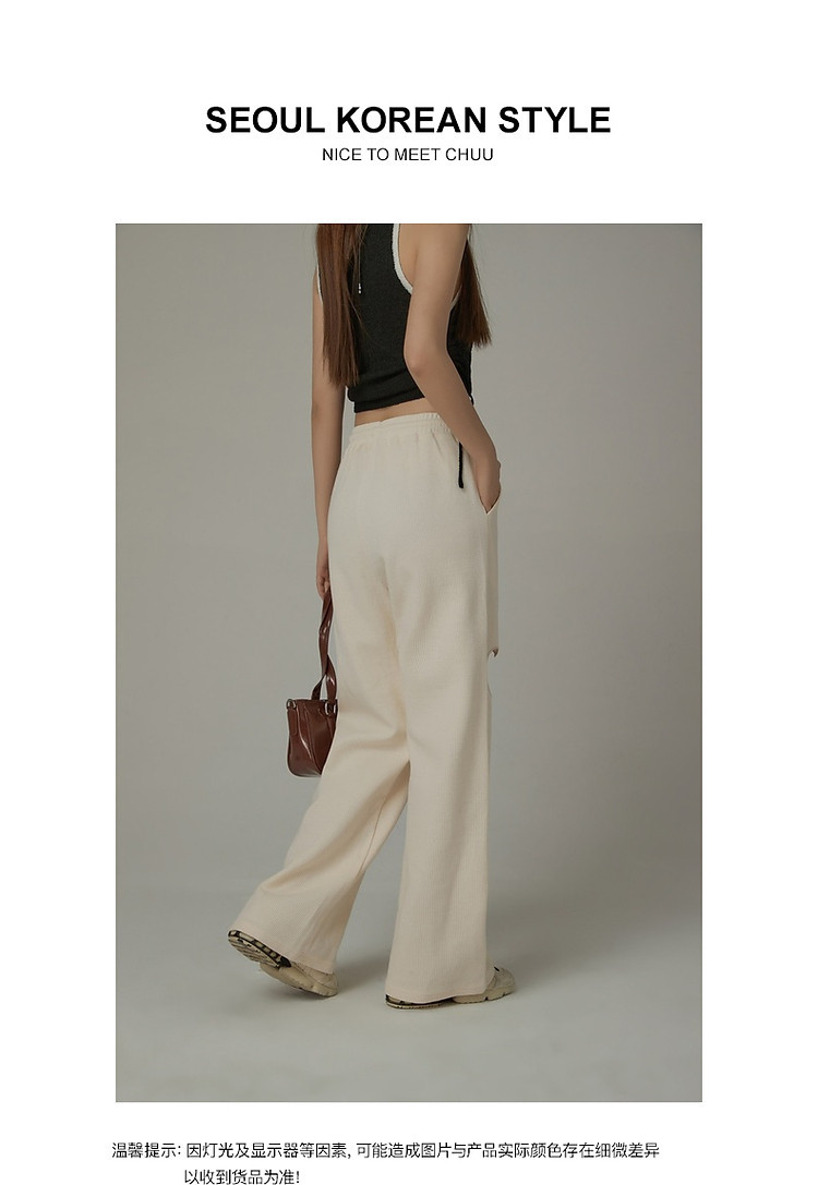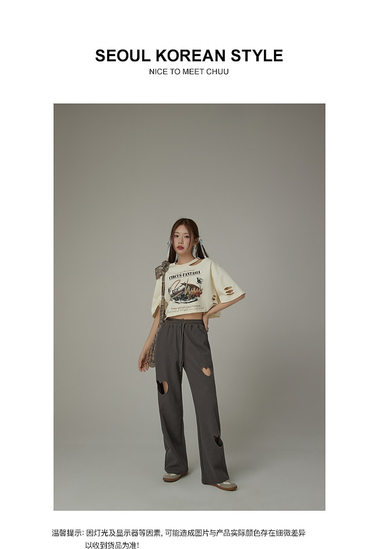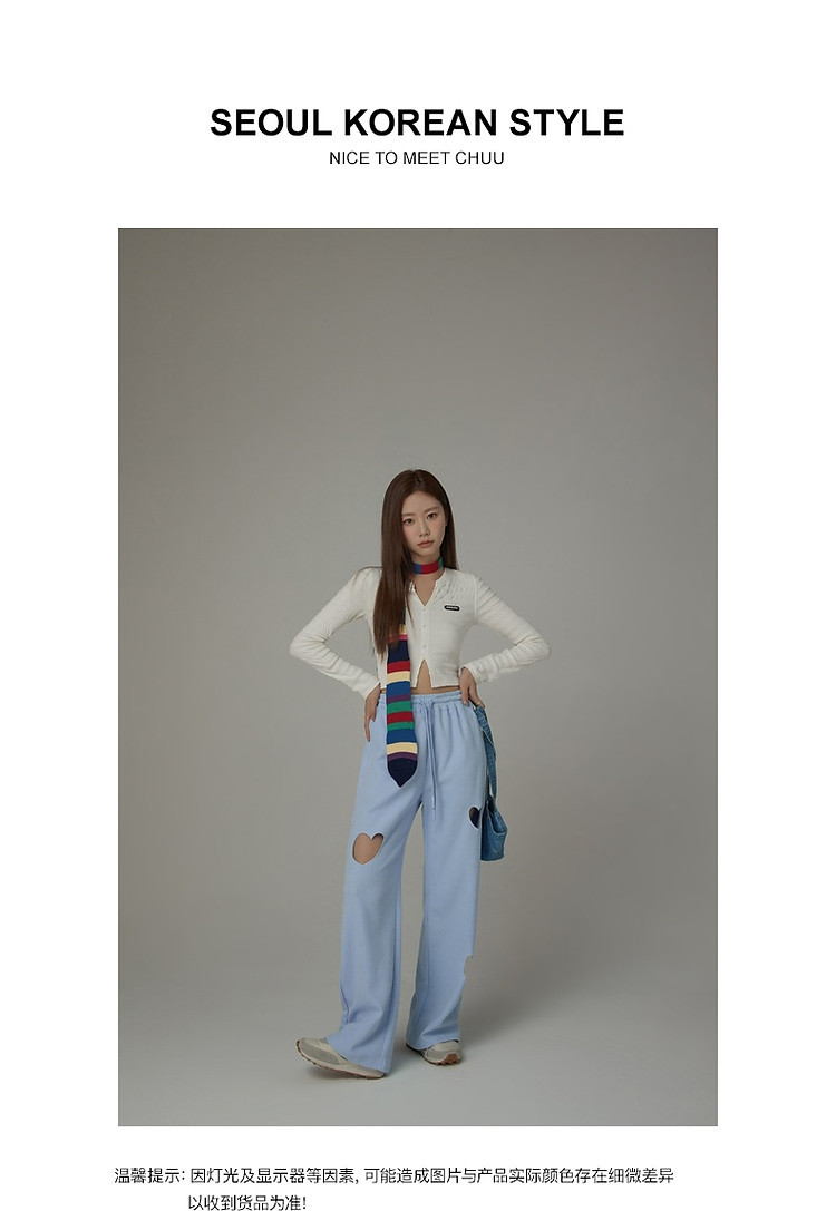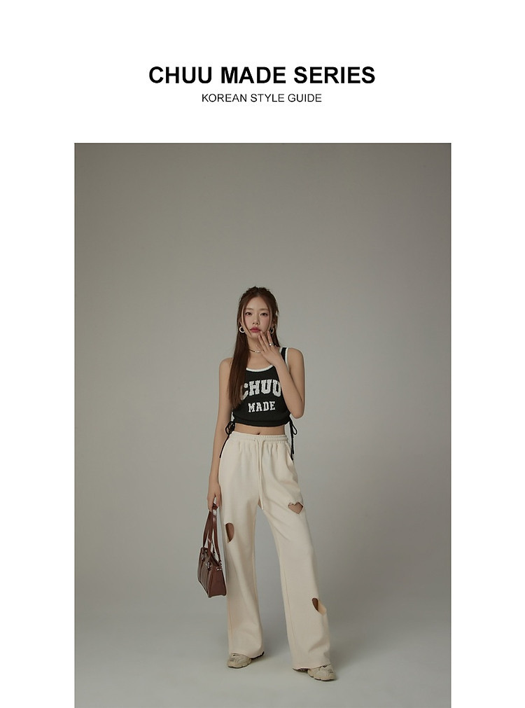 商品名称:镂空爱心休闲裤女2025夏设计感长裤子抽绳阔腿裤 222931