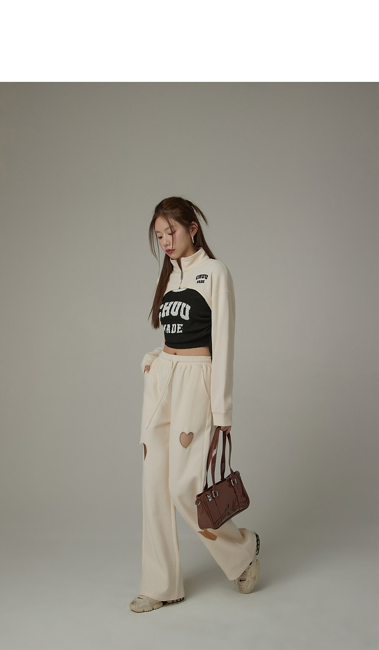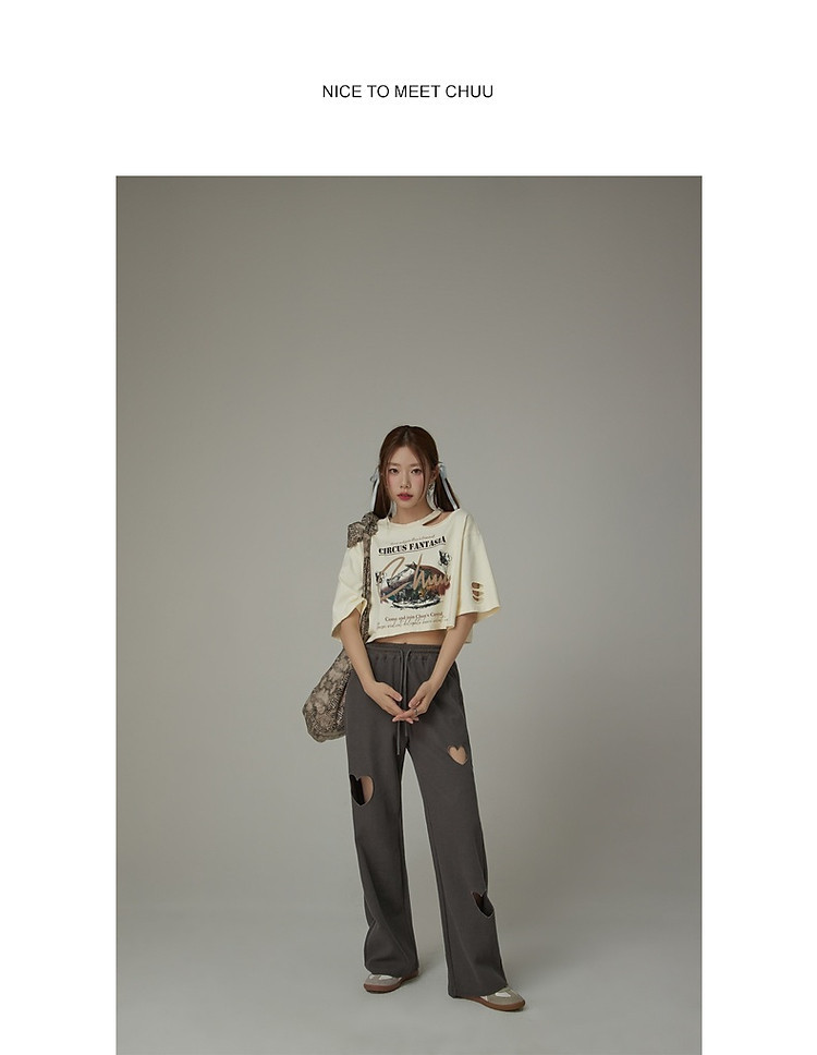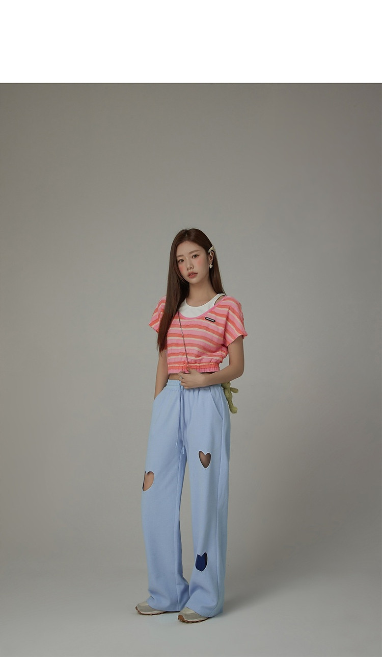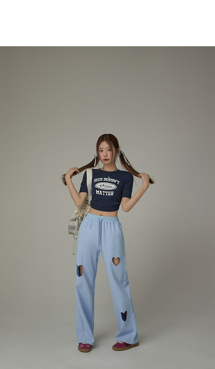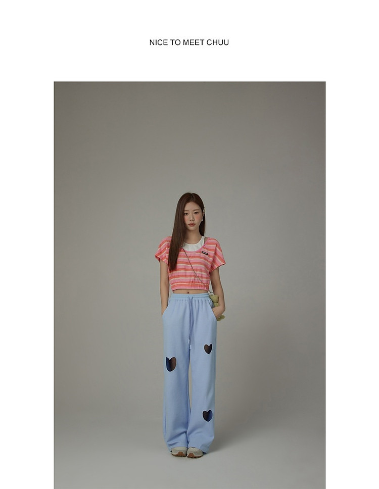 商品名称:镂空爱心休闲裤女2025夏设计感长裤子抽绳阔腿裤 222931