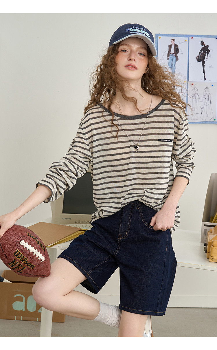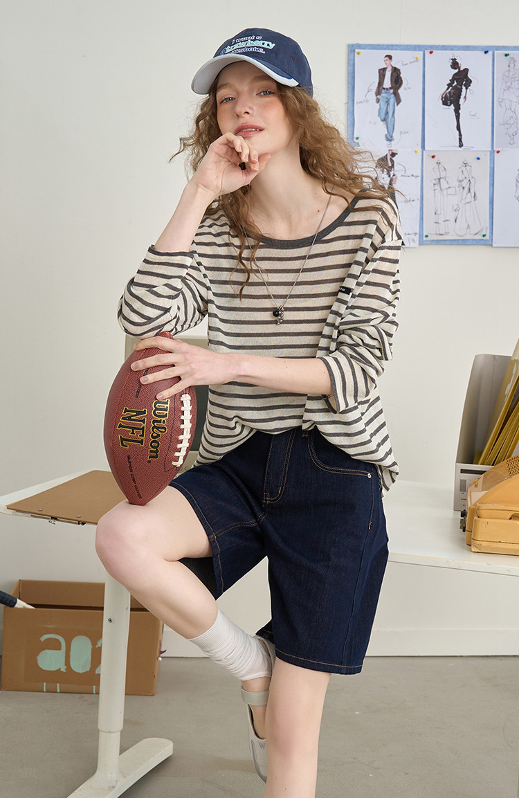 镂空设计感减龄撞色圆领上衣2025夏季百搭休闲女式针织衫 463453