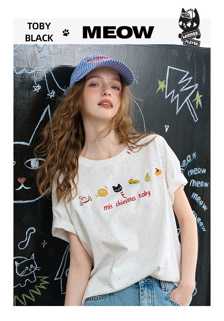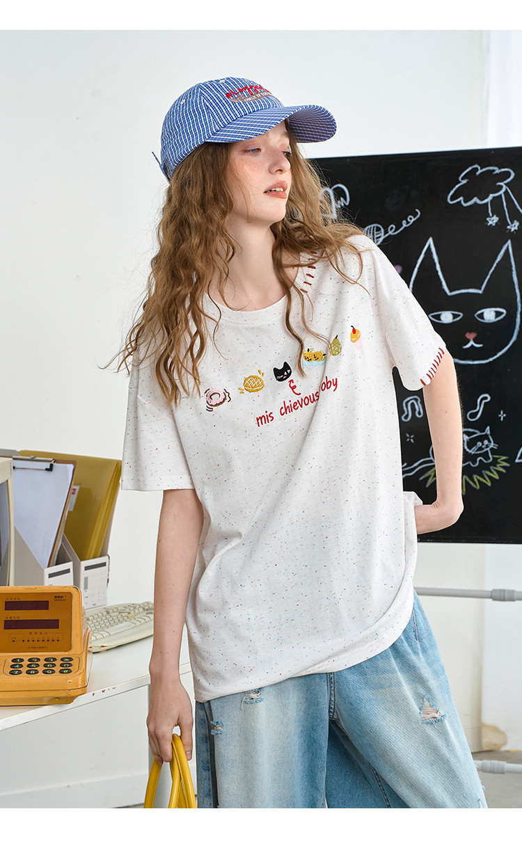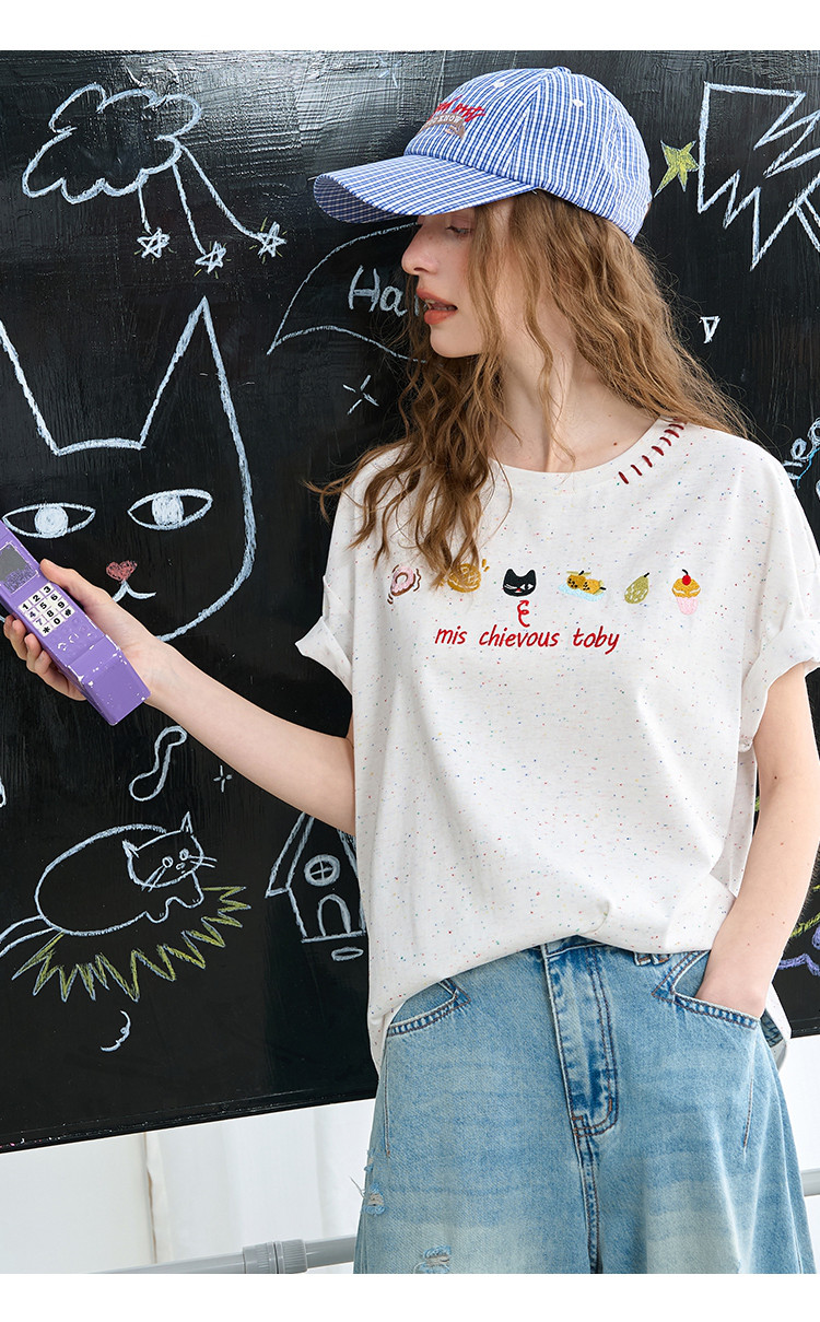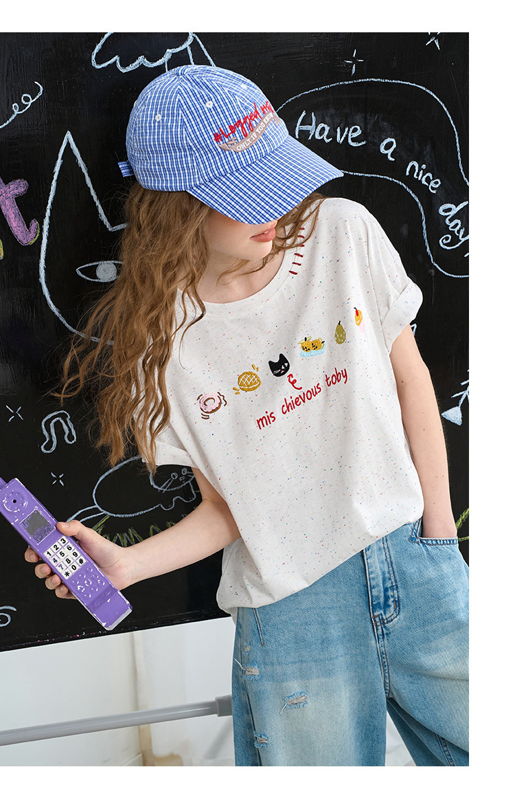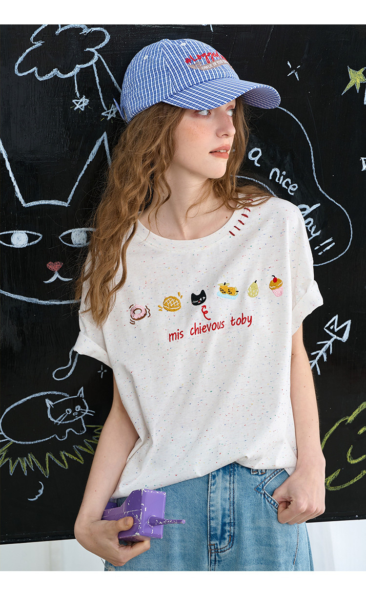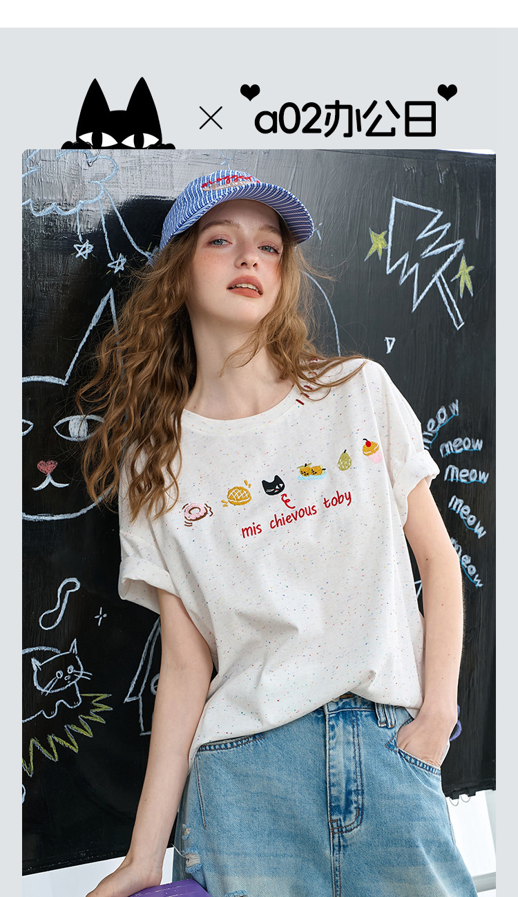 重工绣花简约宽松显瘦短袖上衣2025夏季百搭休闲女式T恤 336413