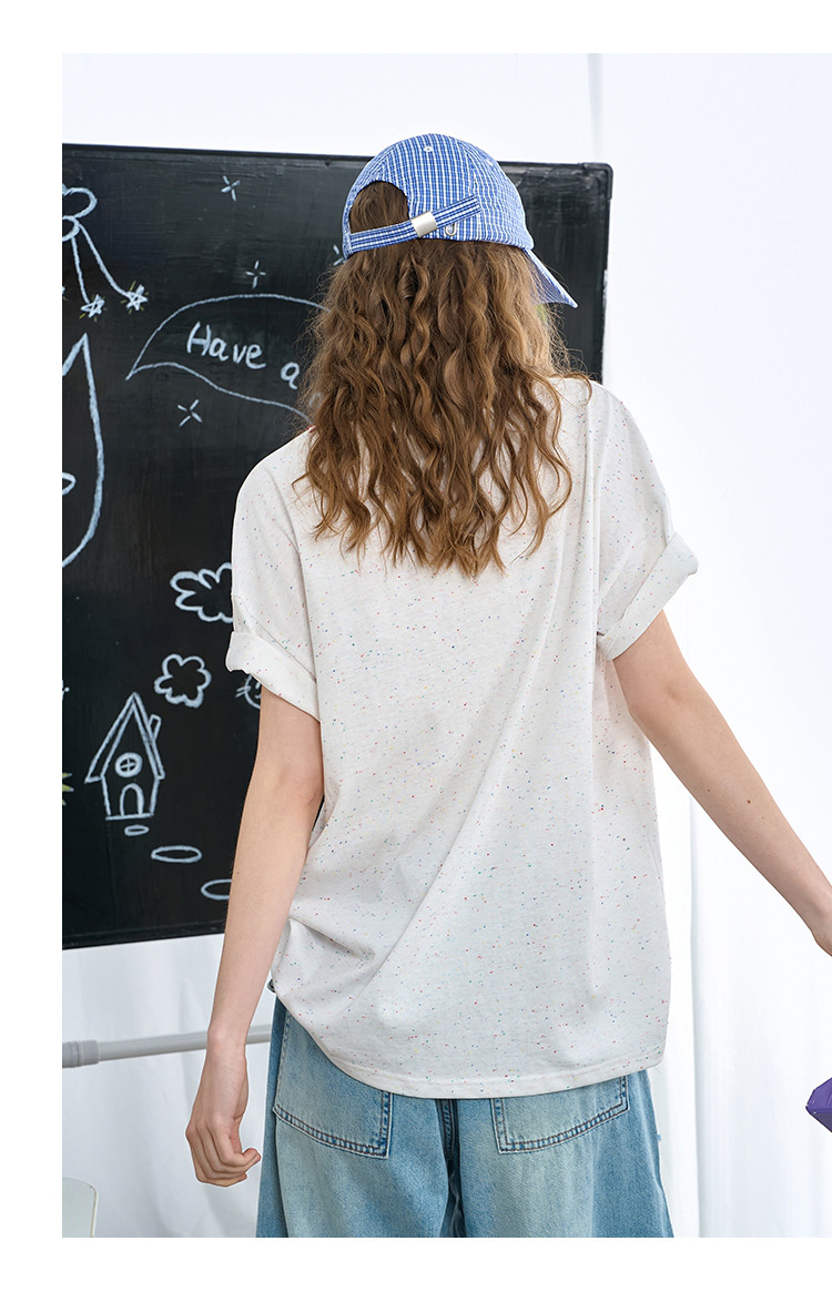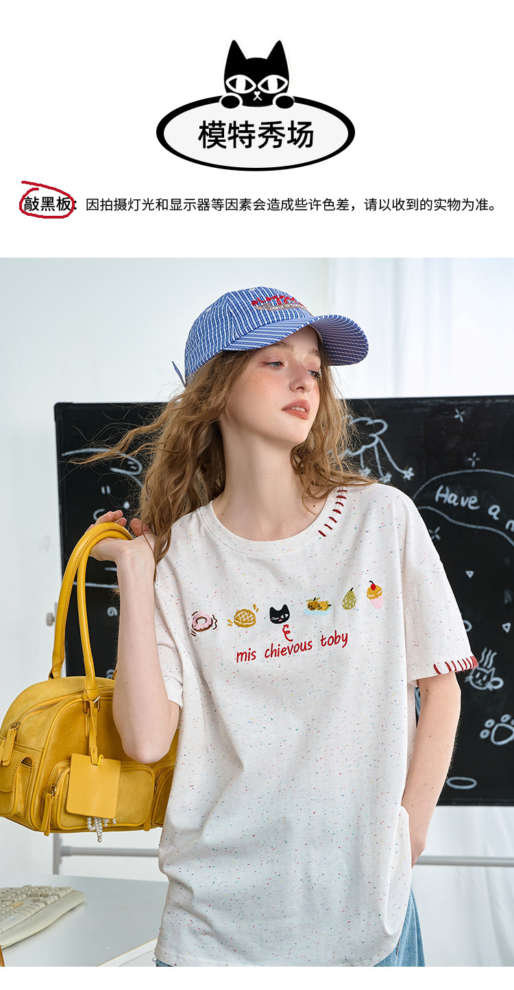商品名称:重工绣花简约宽松显瘦短袖上衣2025夏季百搭休闲女式T恤 336413