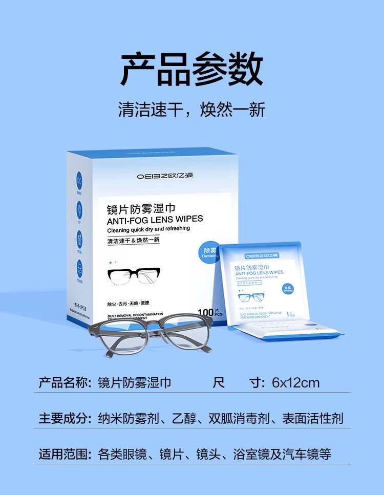 商品名称:欧亿姿眼镜湿巾100片*2盒