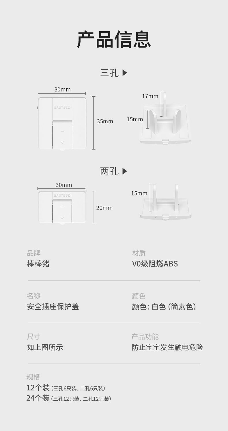 商品名称:棒棒猪安全插座保护盖儿童防触电插座保护套24个装