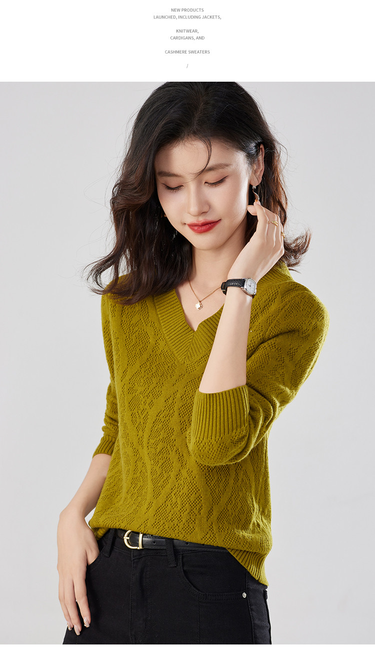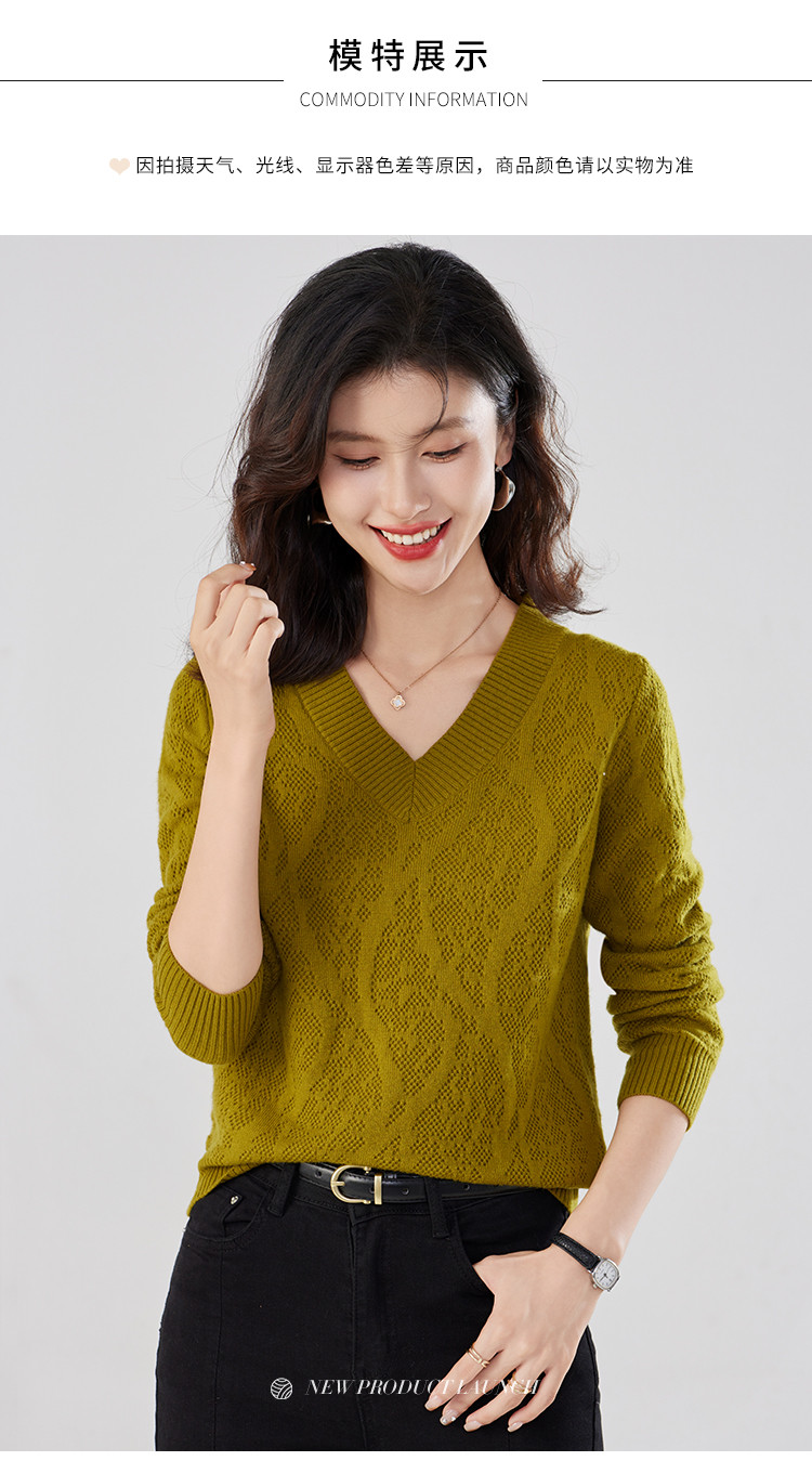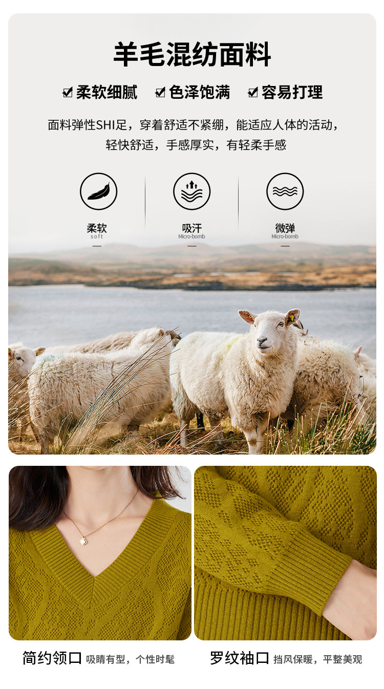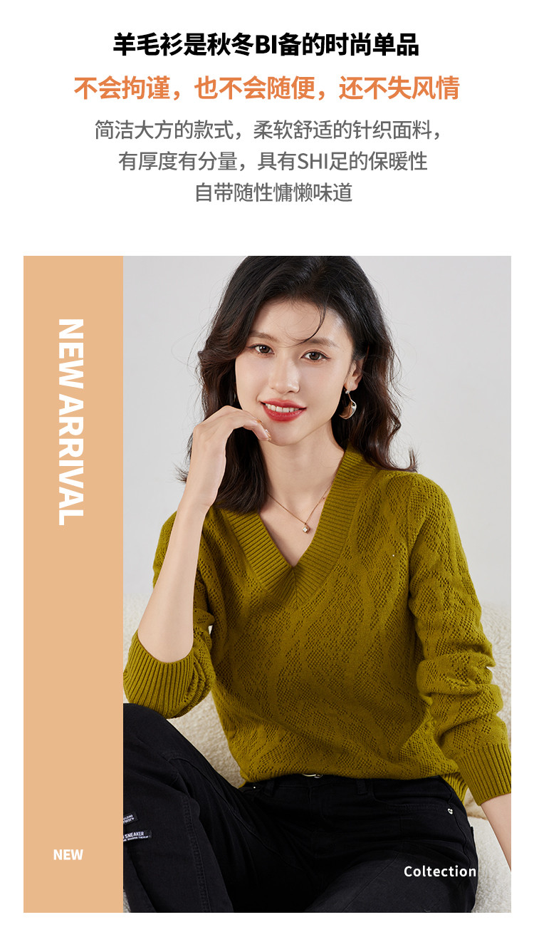 【含羊毛】简约休闲纯色气质V领羊毛衫女复古通勤百搭套头毛衣 840031