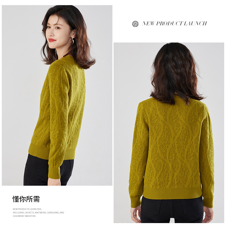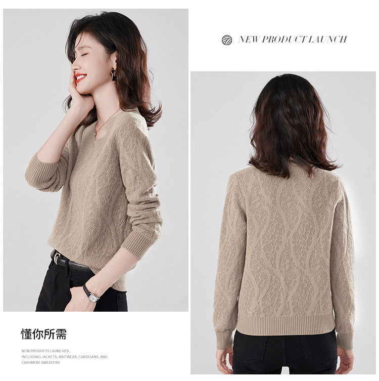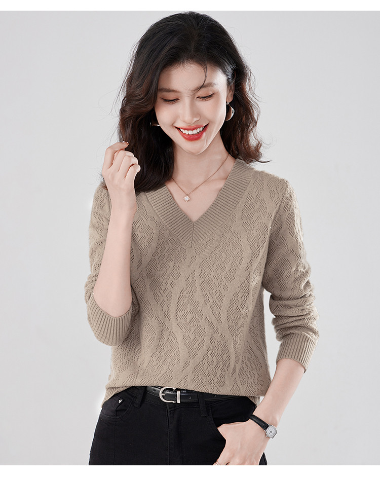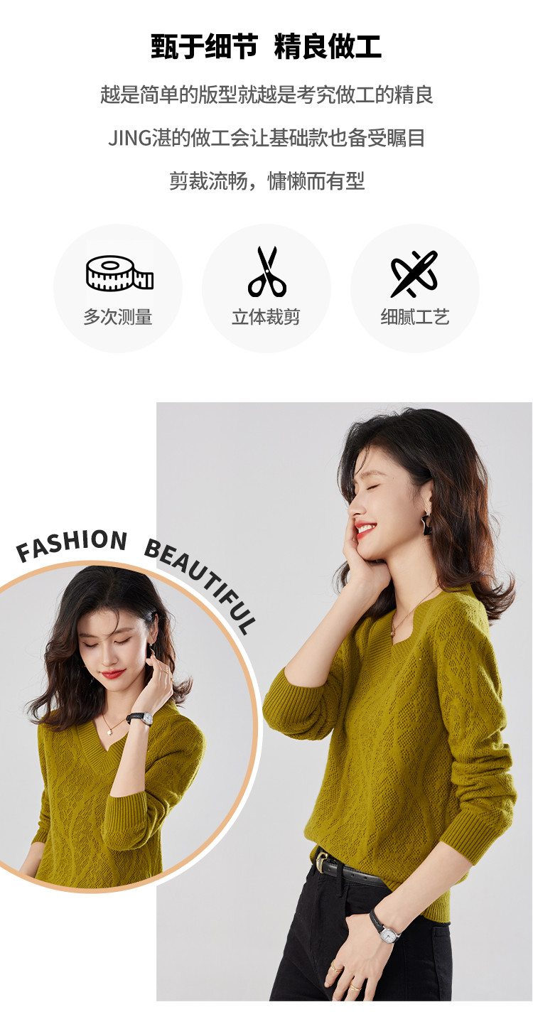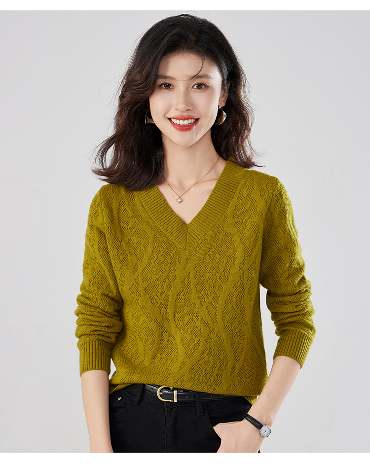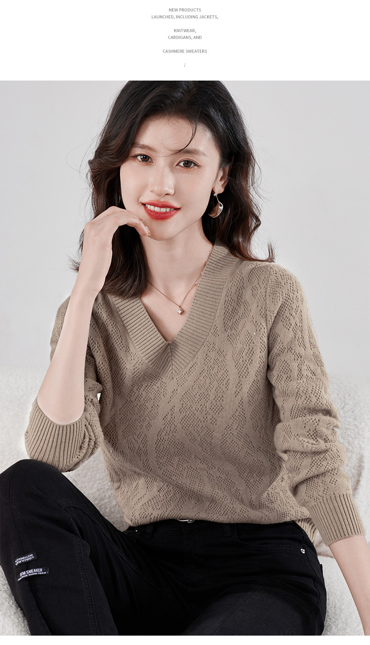 【含羊毛】简约休闲纯色气质V领羊毛衫女复古通勤百搭套头毛衣 840031