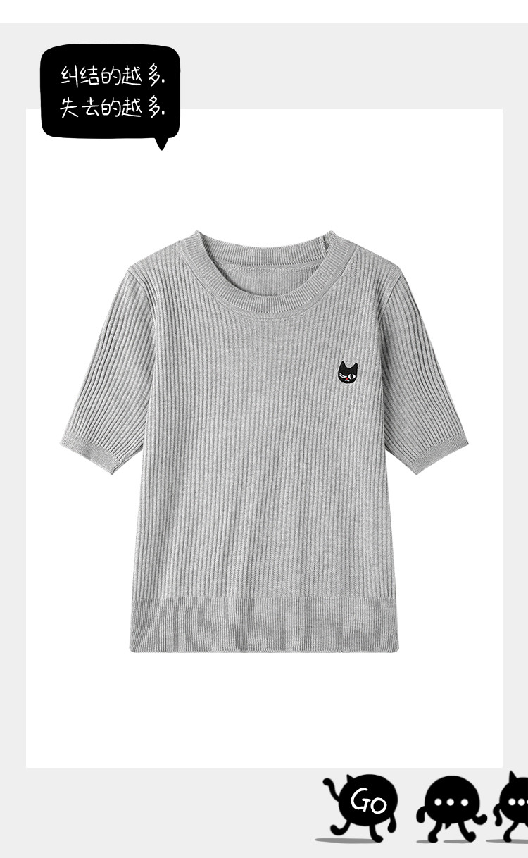 商品名称:圆领气质薄款宽松正肩短袖上衣2025夏季休闲百搭女式针织衫 834717