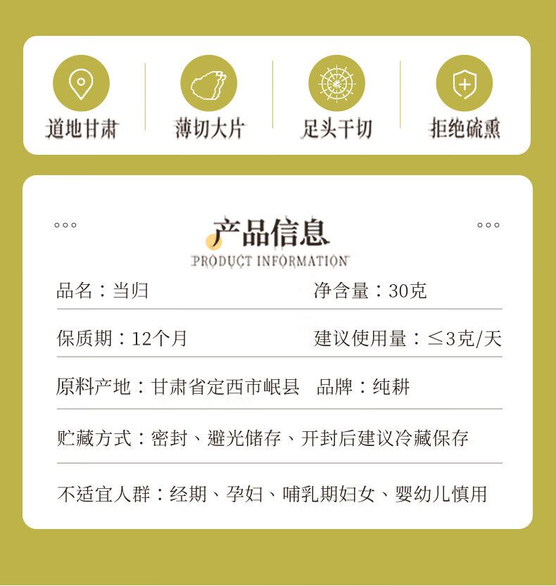 商品名称:纯耕 当归片30g