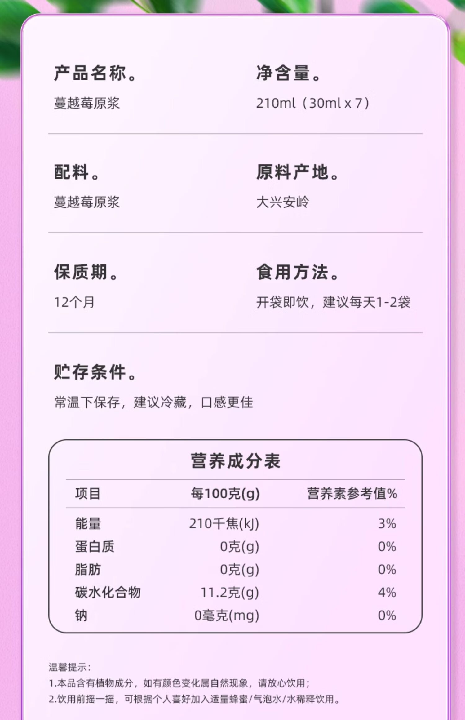 商品名称:默小吉 蔓越莓原浆210ml