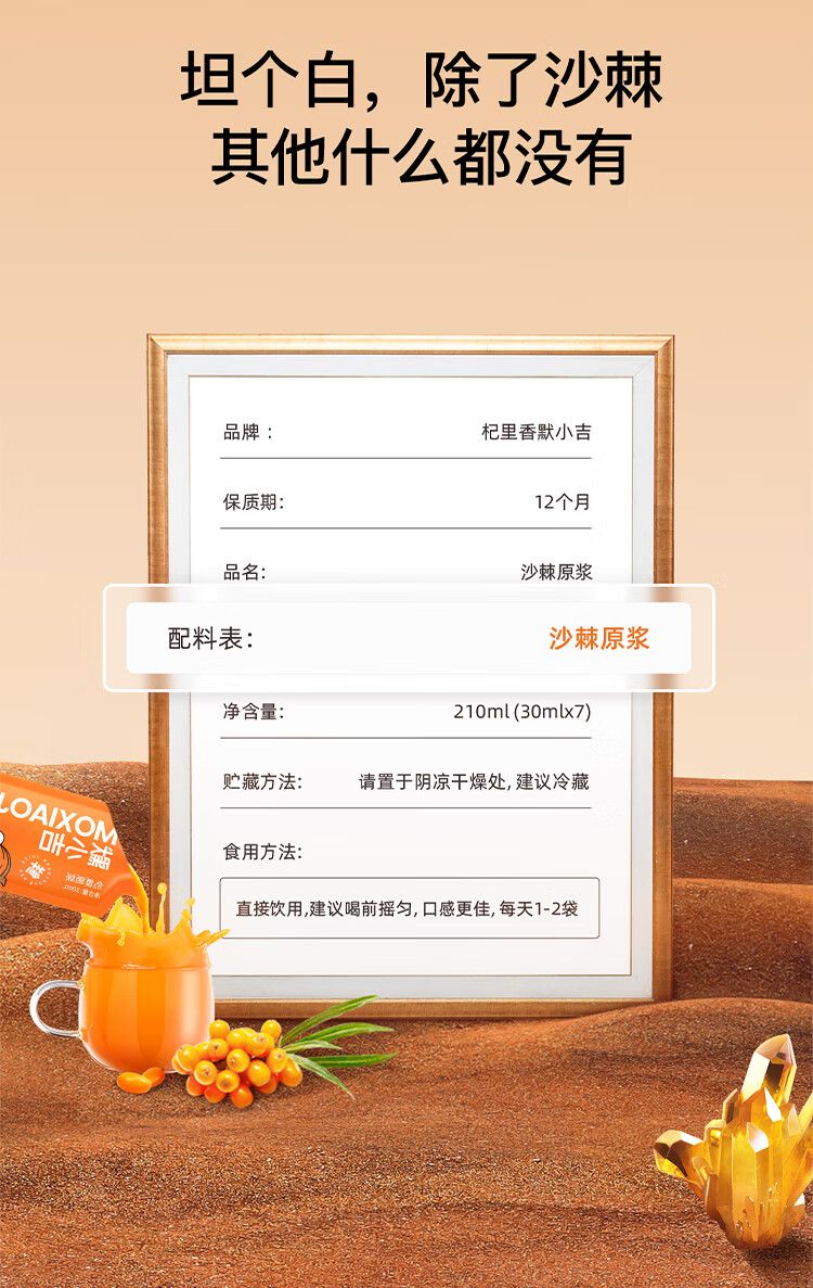 商品名称:默小吉 沙棘原浆210ml