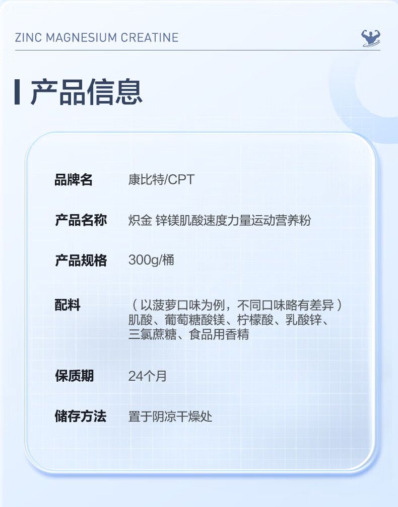 商品名称:康比特/CPT 锌镁肌酸菠萝味 100g