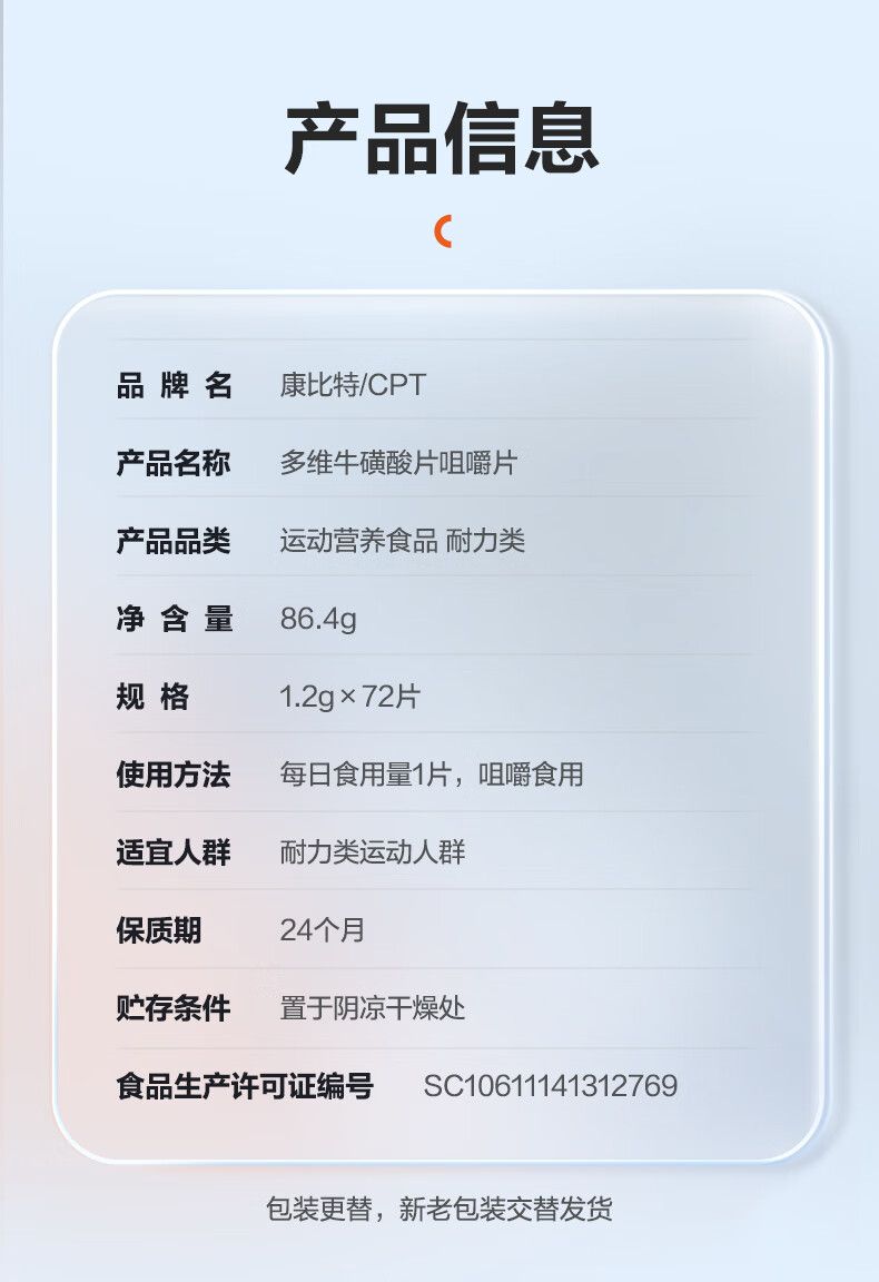 商品名称:康比特/CPT 多维牛磺酸片咀嚼片