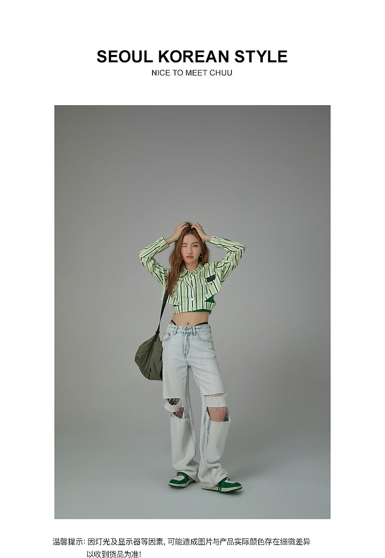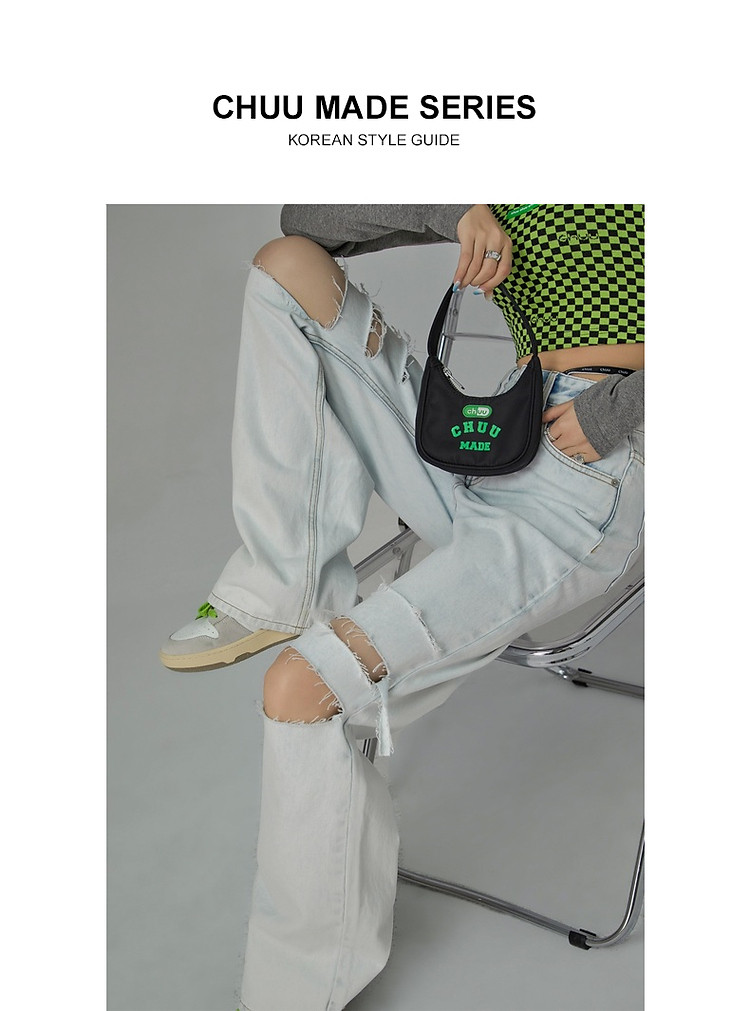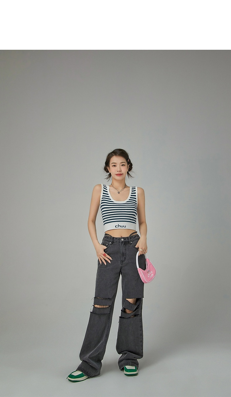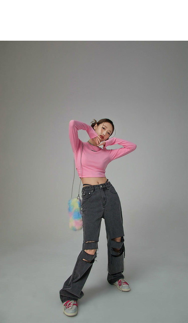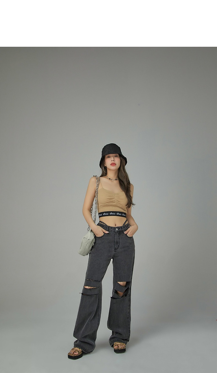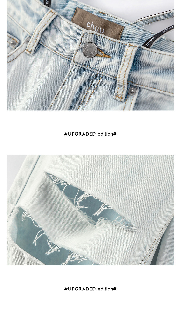 商品名称:破洞牛仔裤女2025夏设计感小众高腰阔腿宽松长裤 733011