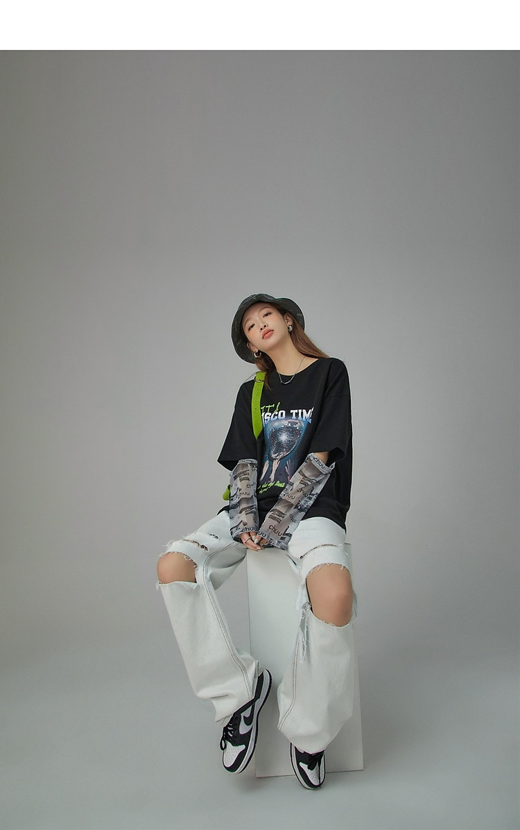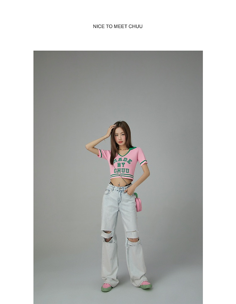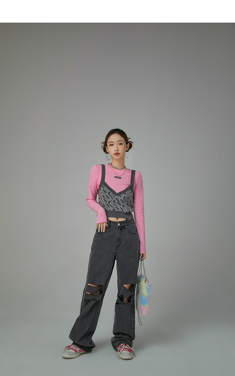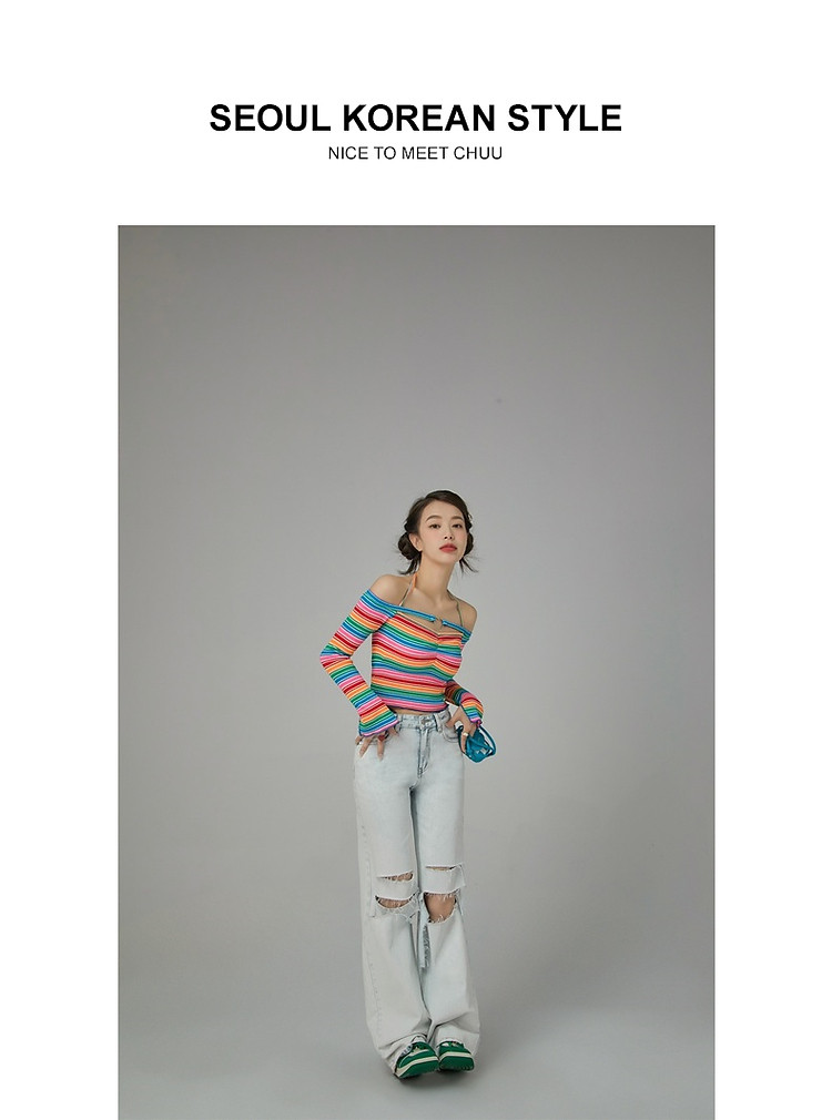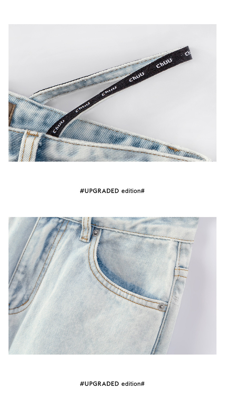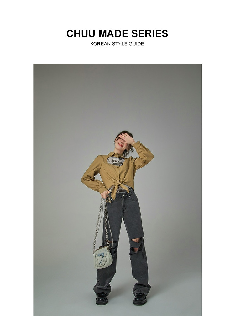 商品名称:破洞牛仔裤女2025夏设计感小众高腰阔腿宽松长裤 733011