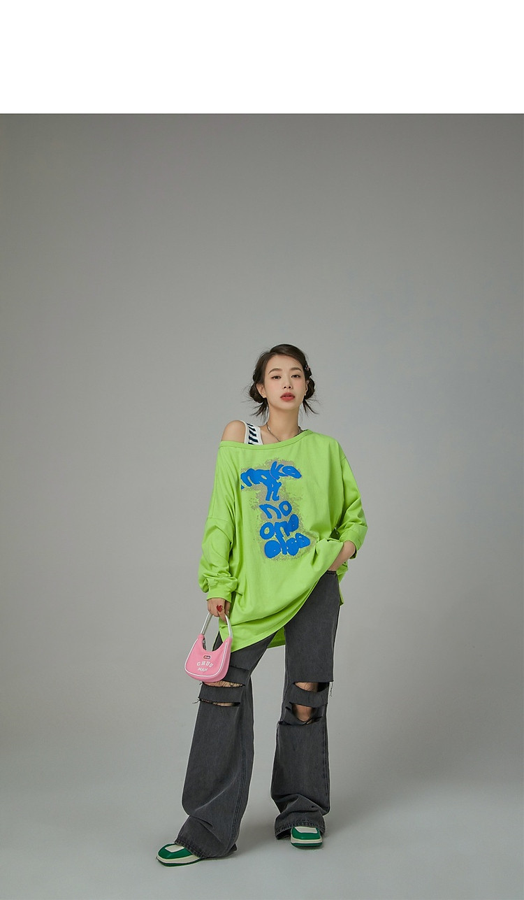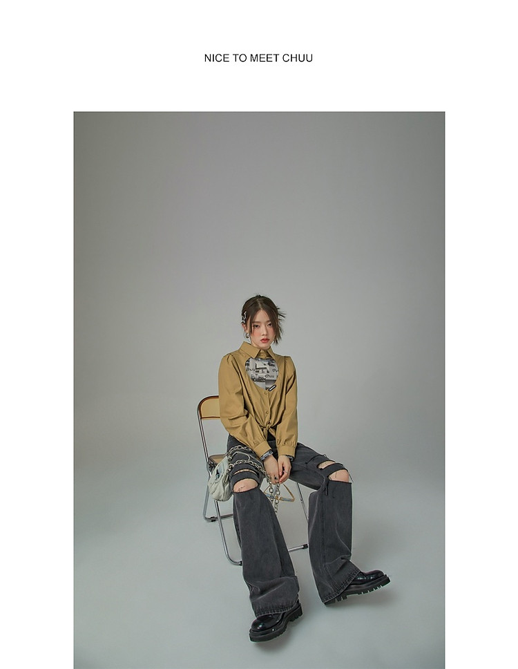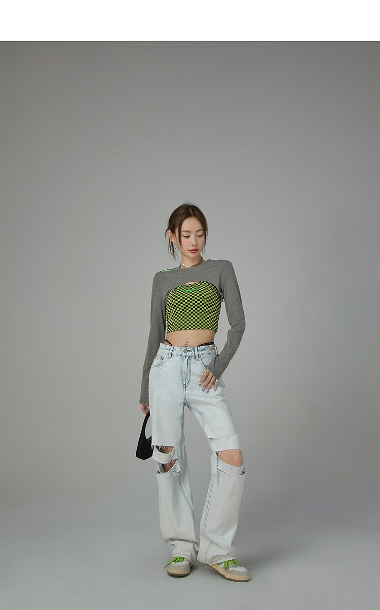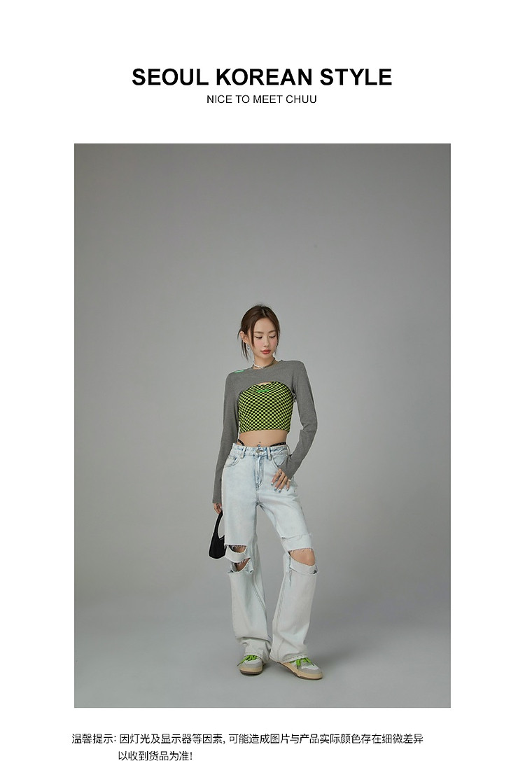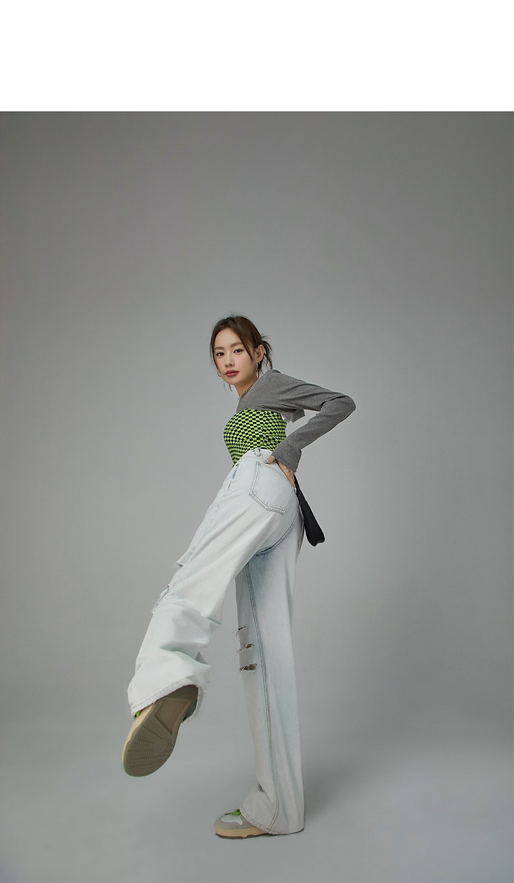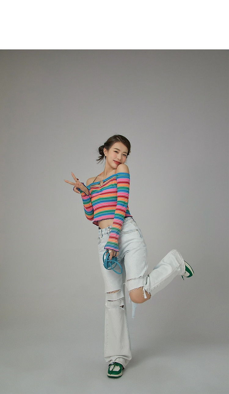 商品名称:破洞牛仔裤女2025夏设计感小众高腰阔腿宽松长裤 733011