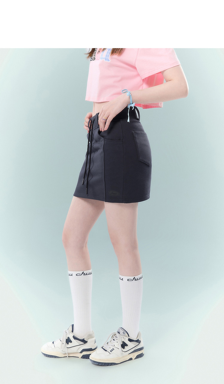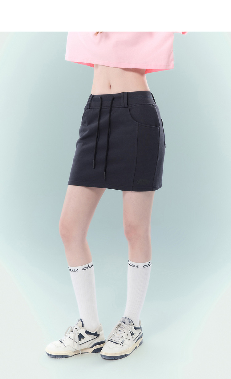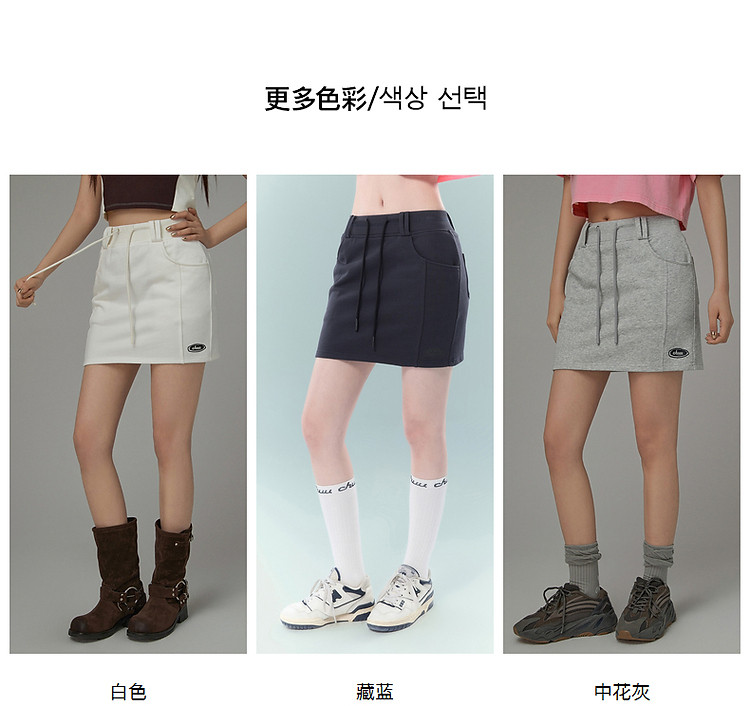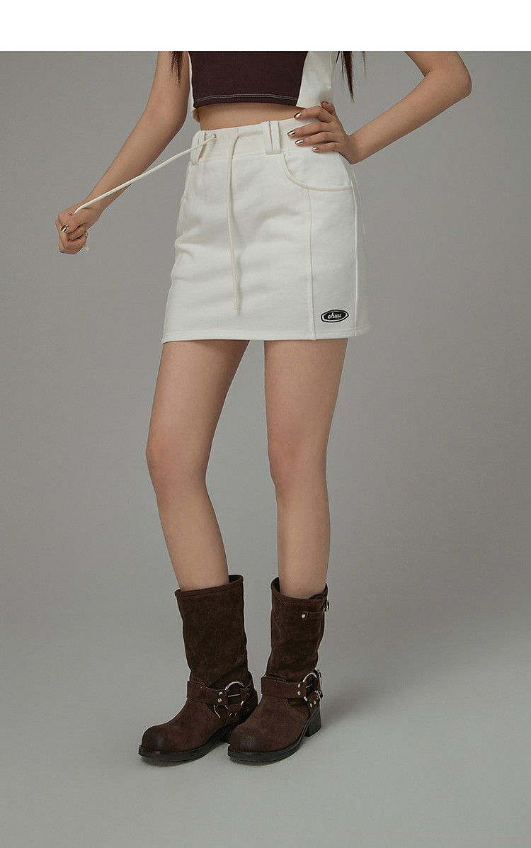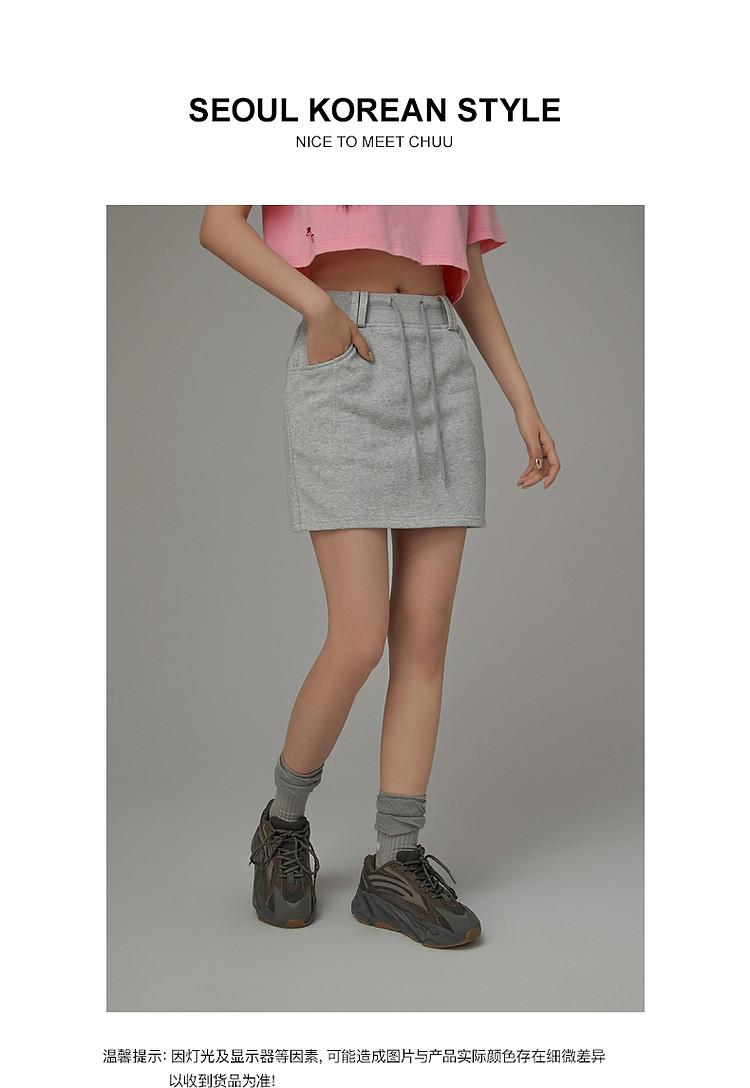 商品名称:高腰抽绳半身裙女2025夏休闲简约百搭显瘦洋气减龄短裙 865875