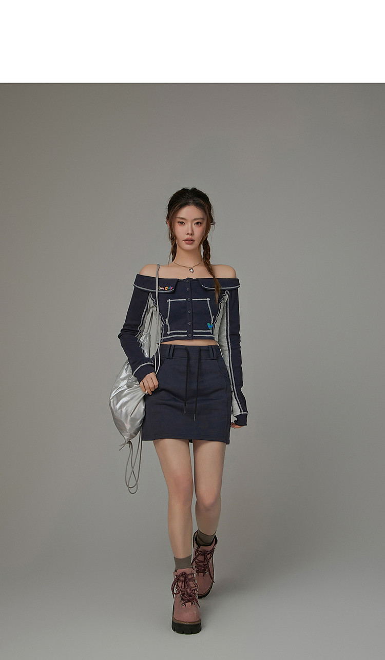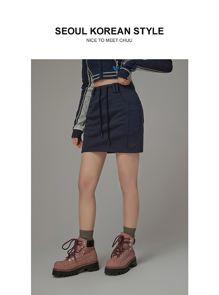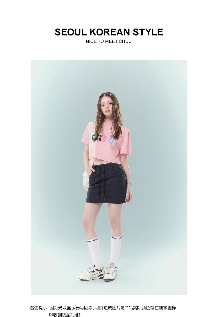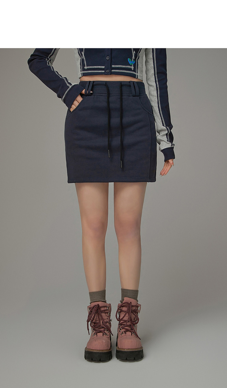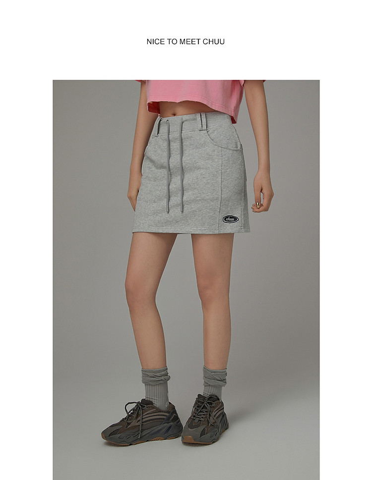 商品名称:高腰抽绳半身裙女2025夏休闲简约百搭显瘦洋气减龄短裙 865875