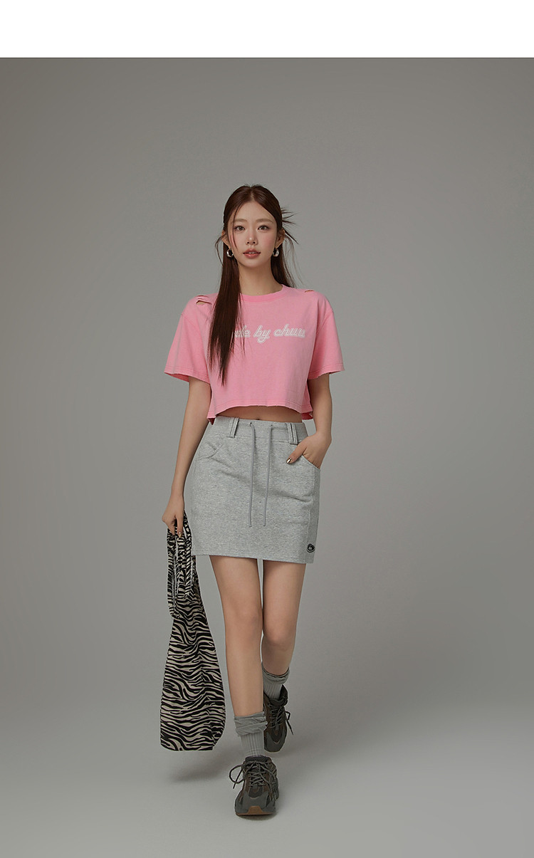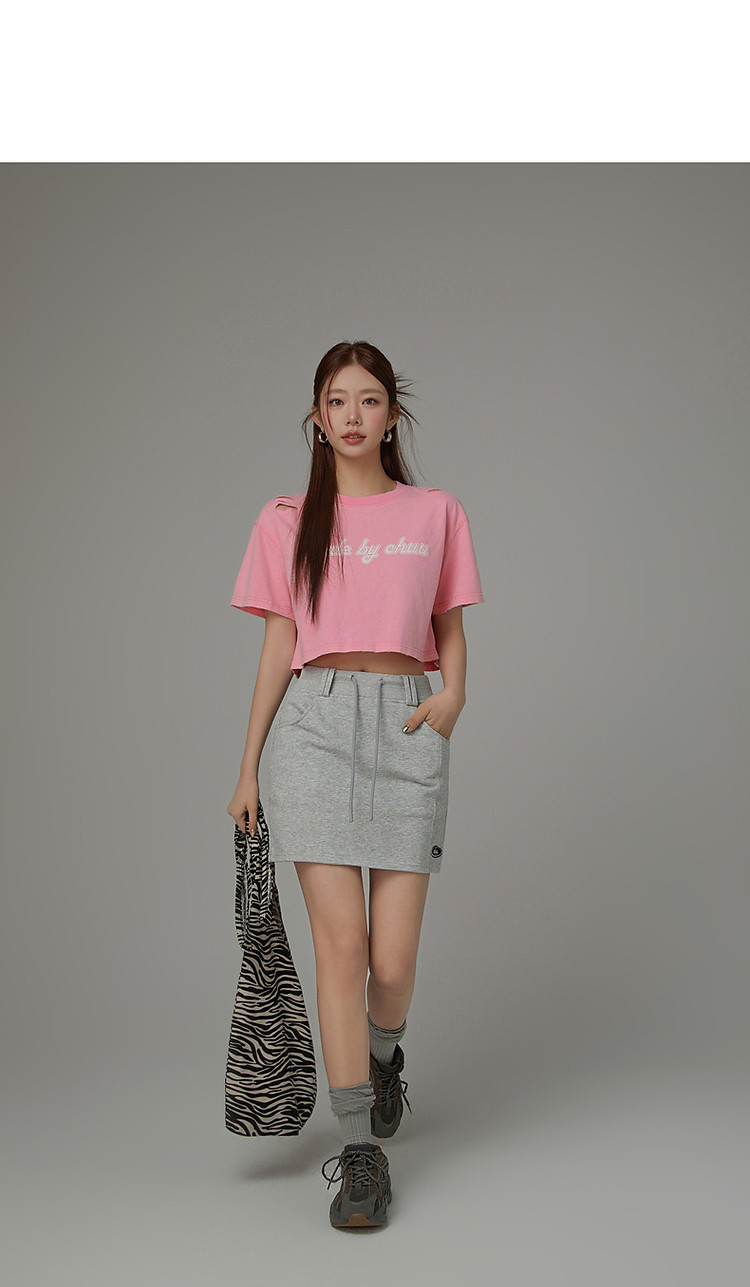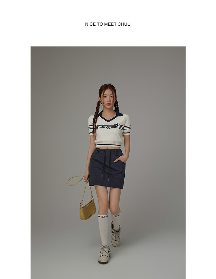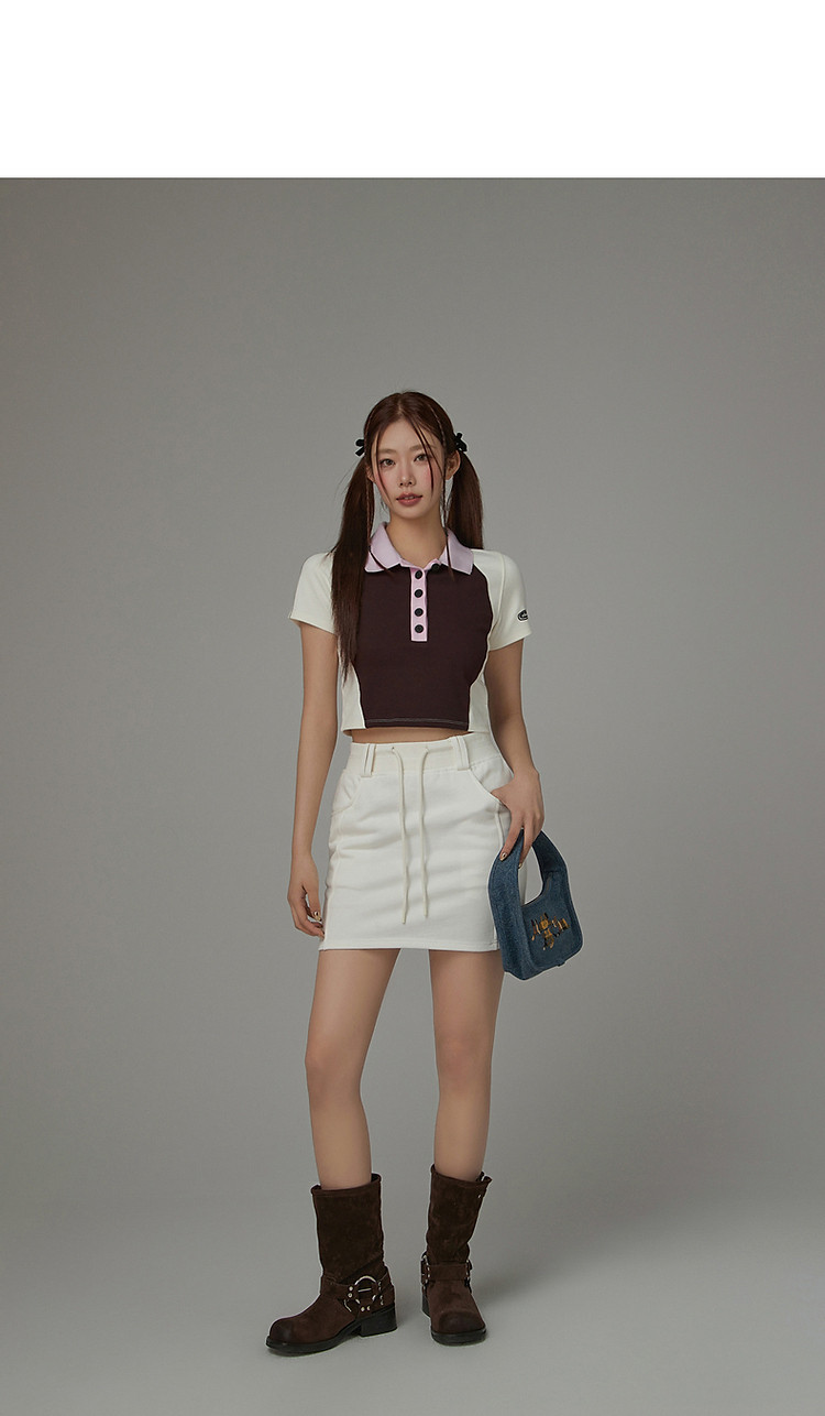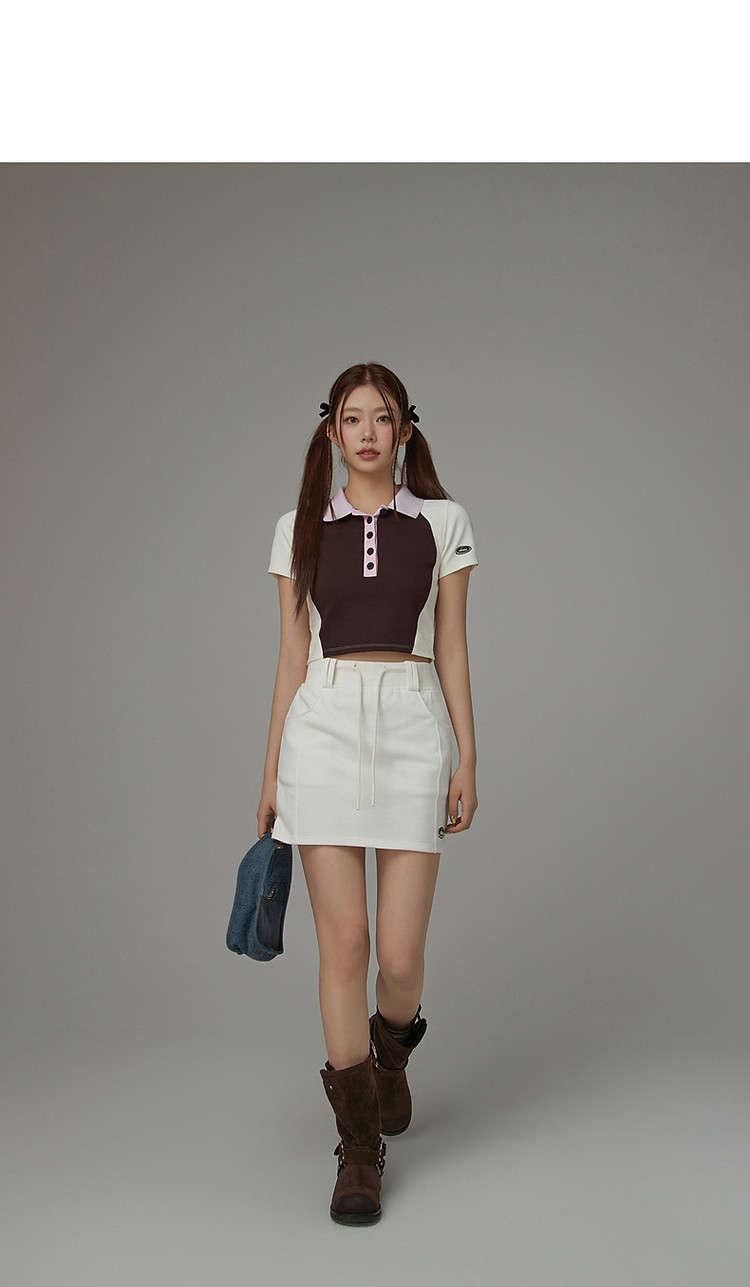 高腰抽绳半身裙女2025夏休闲简约百搭显瘦洋气减龄短裙 865875