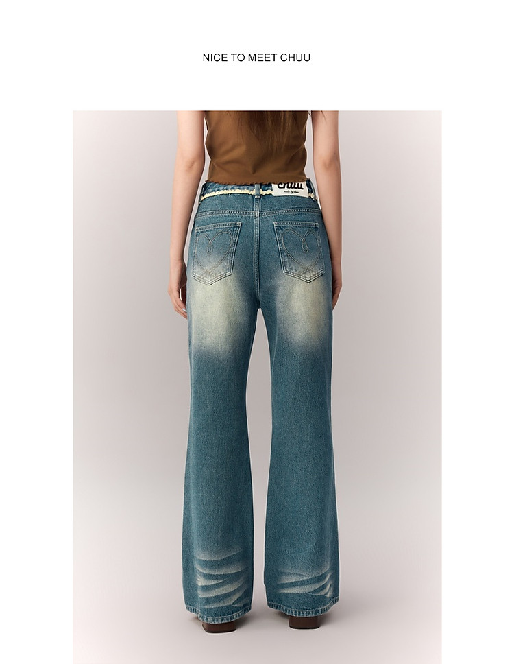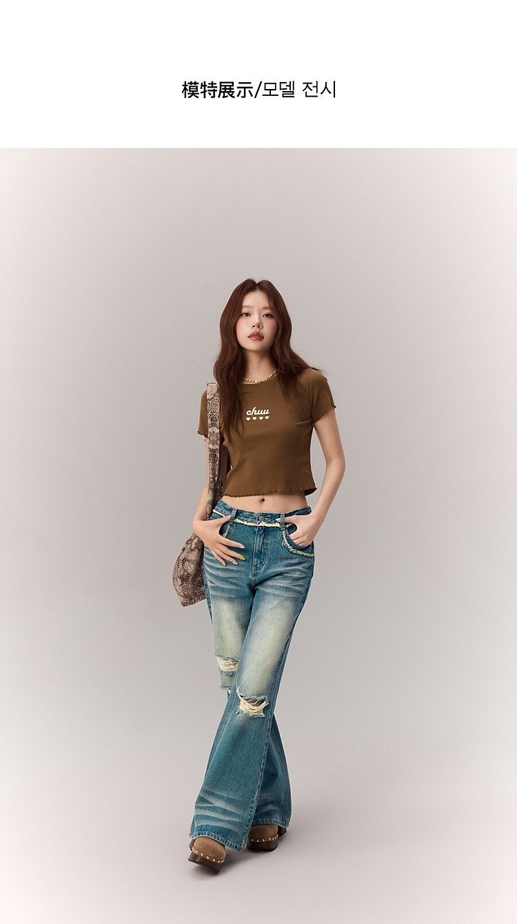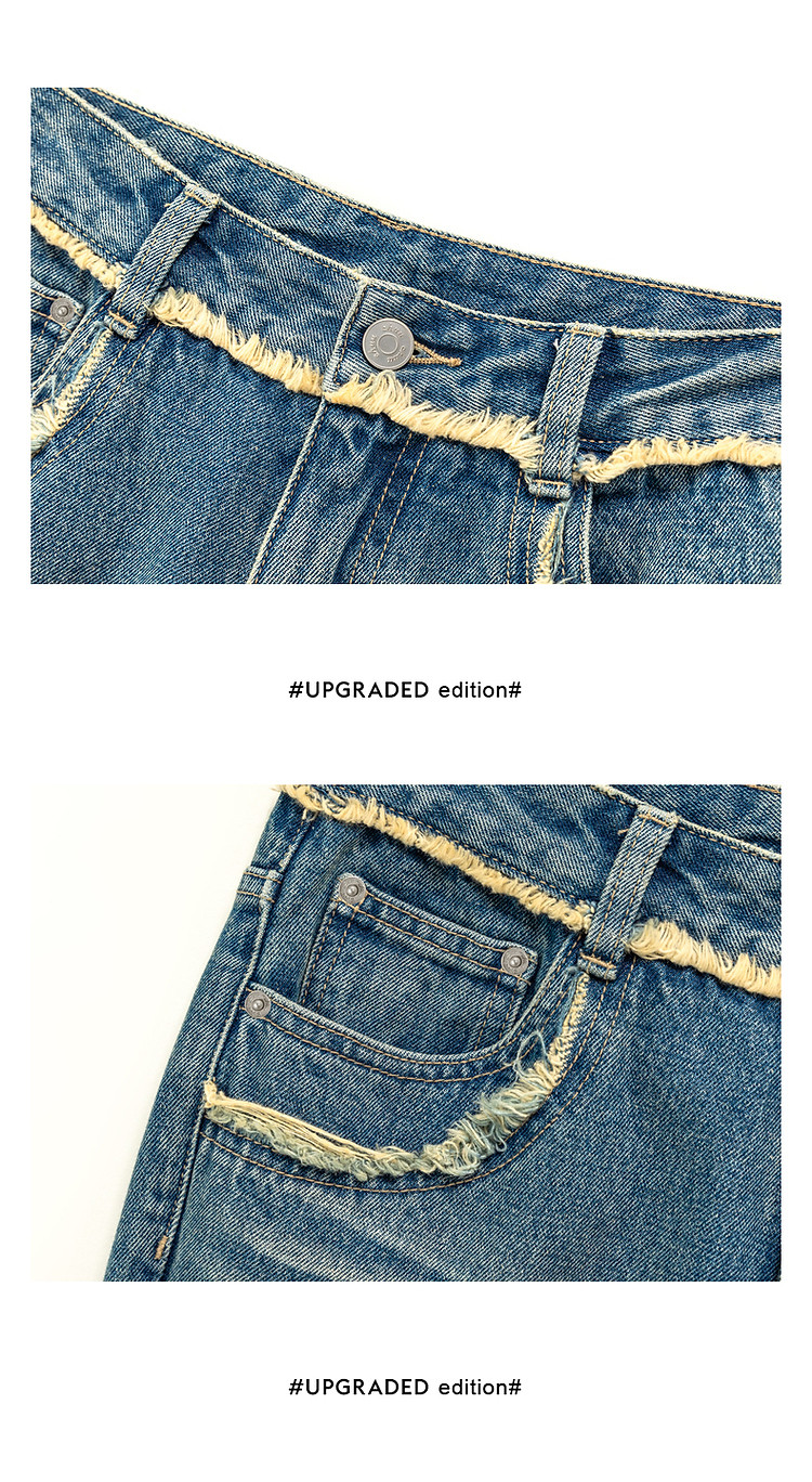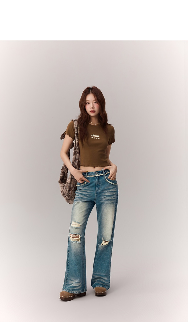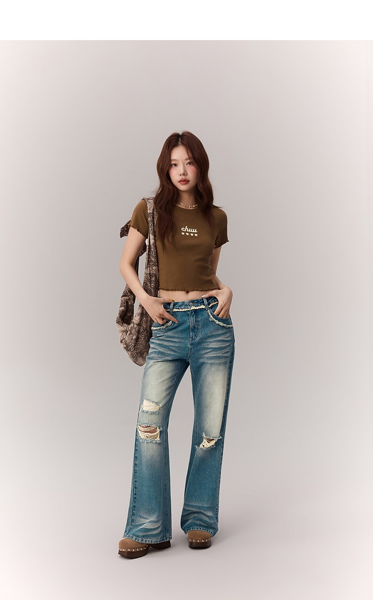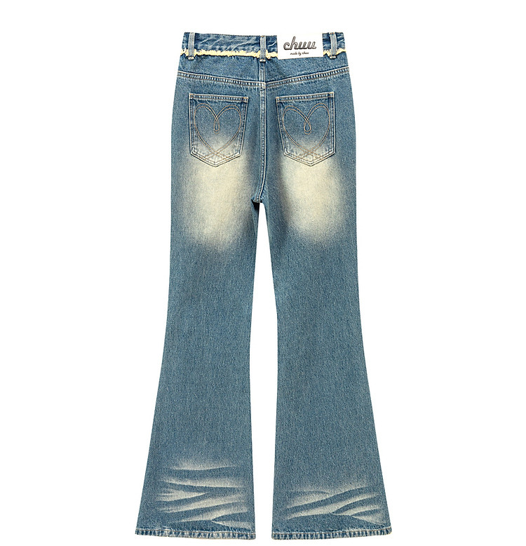 商品名称:破洞微喇牛仔裤女2025夏高腰显瘦百搭设计感个性长裤 189779