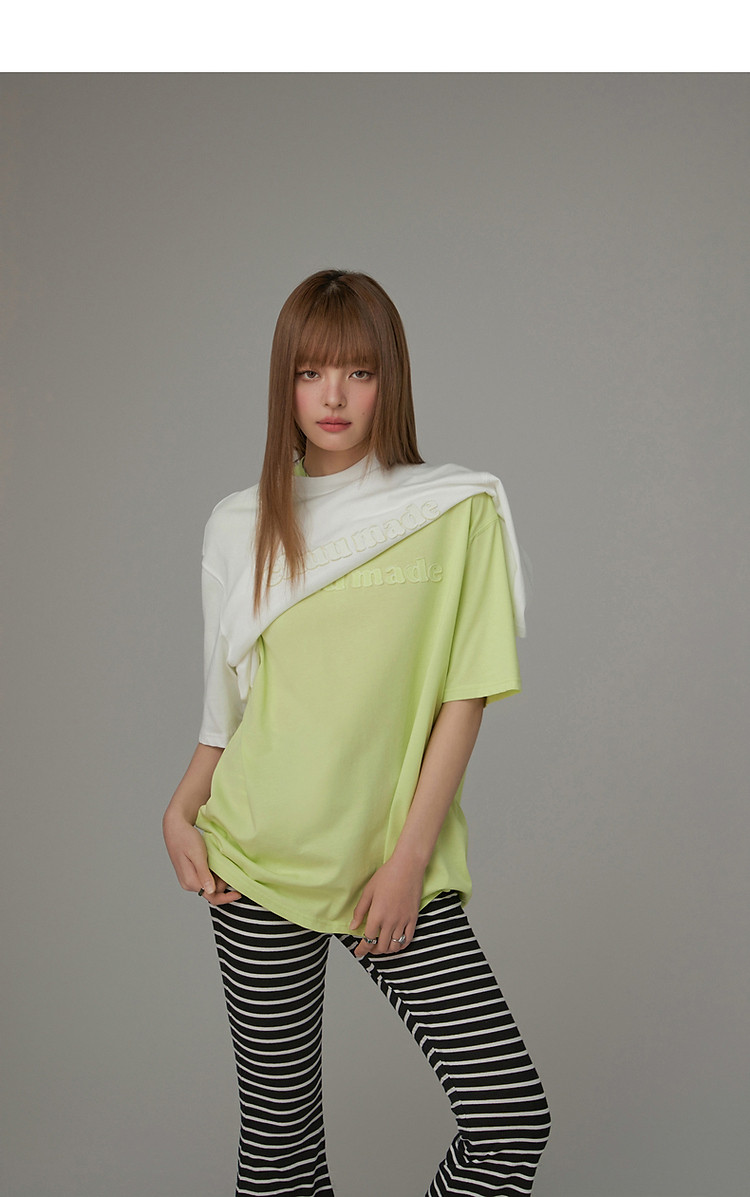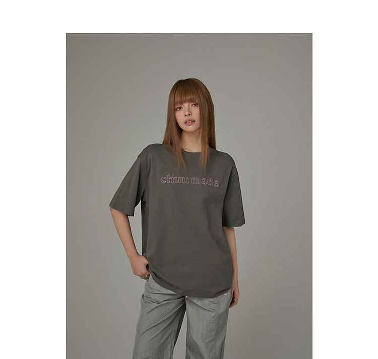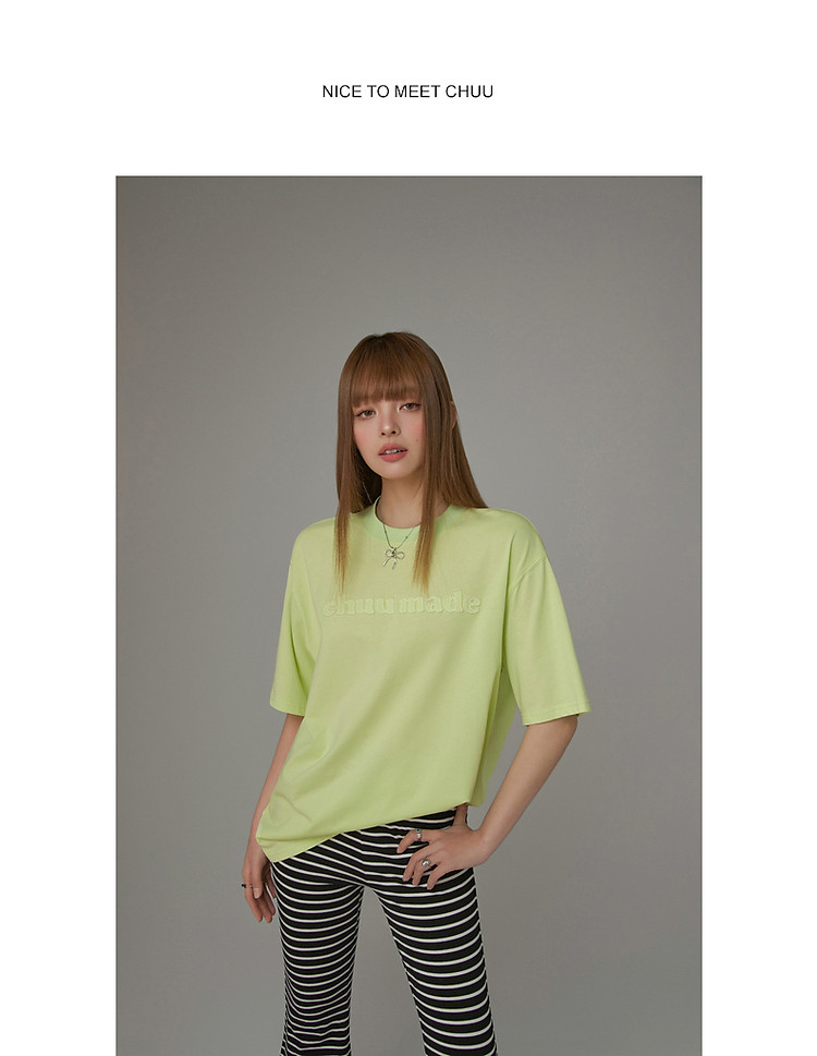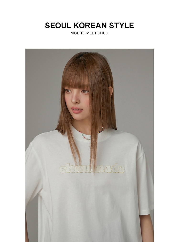 商品名称:字母贴布绣短袖T恤女2025夏学院运动基础宽松中长 115731
