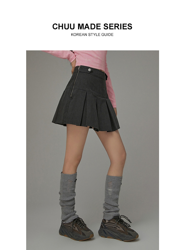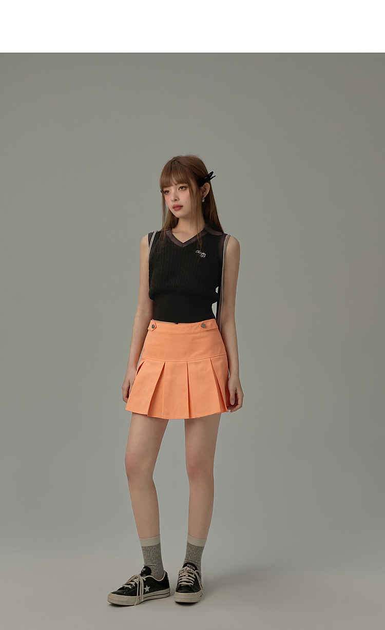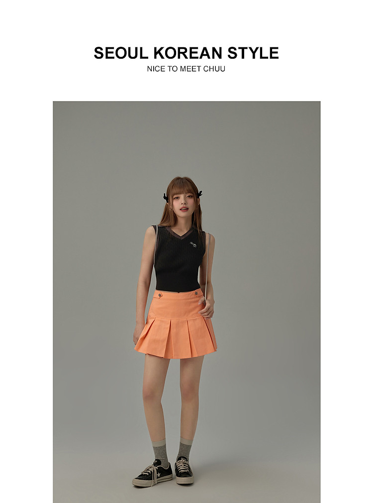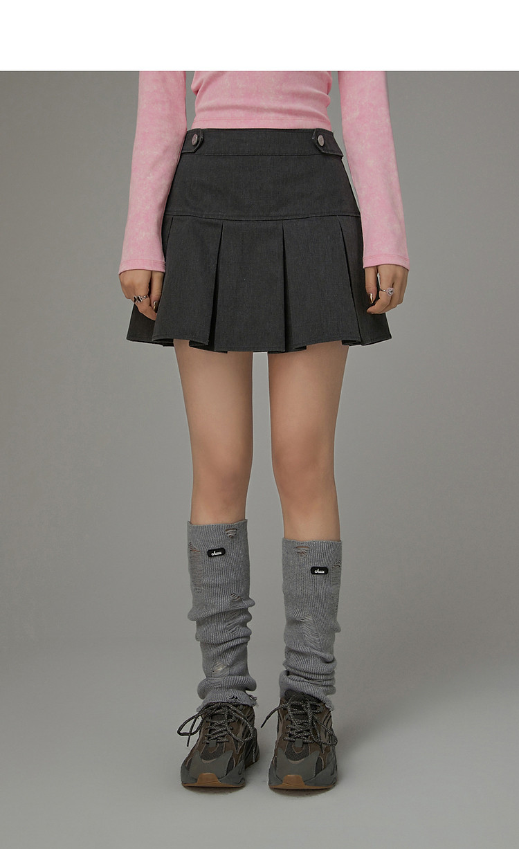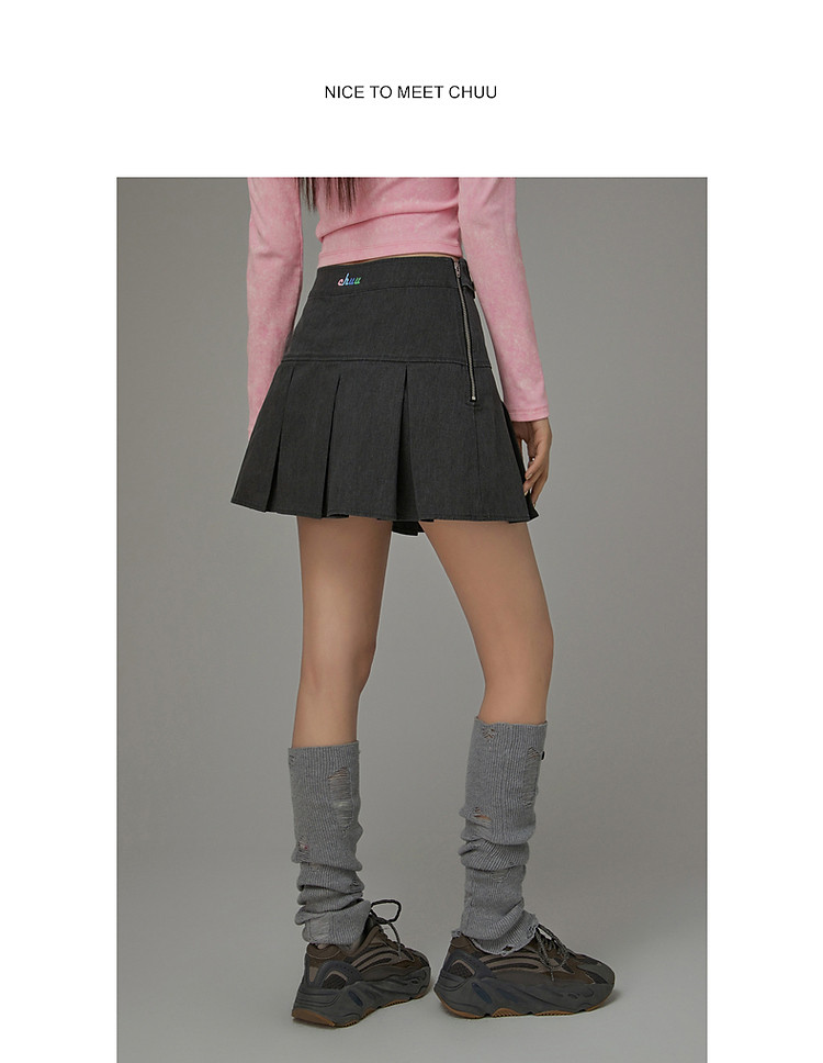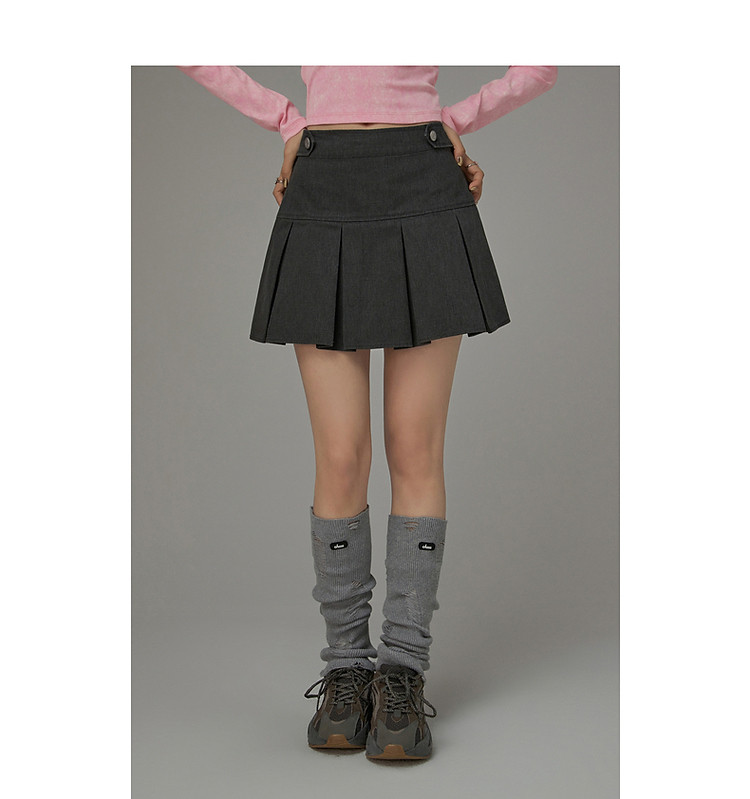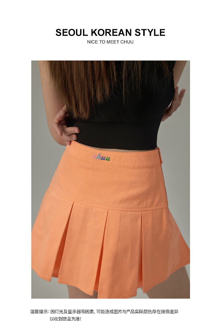 商品名称:刺绣字母纽扣半身裙女2025夏辣妹A字短裙子百褶裙 589843
