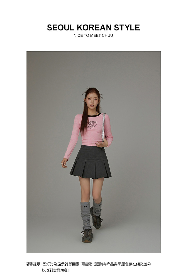 刺绣字母纽扣半身裙女2025夏辣妹A字短裙子百褶裙 589843