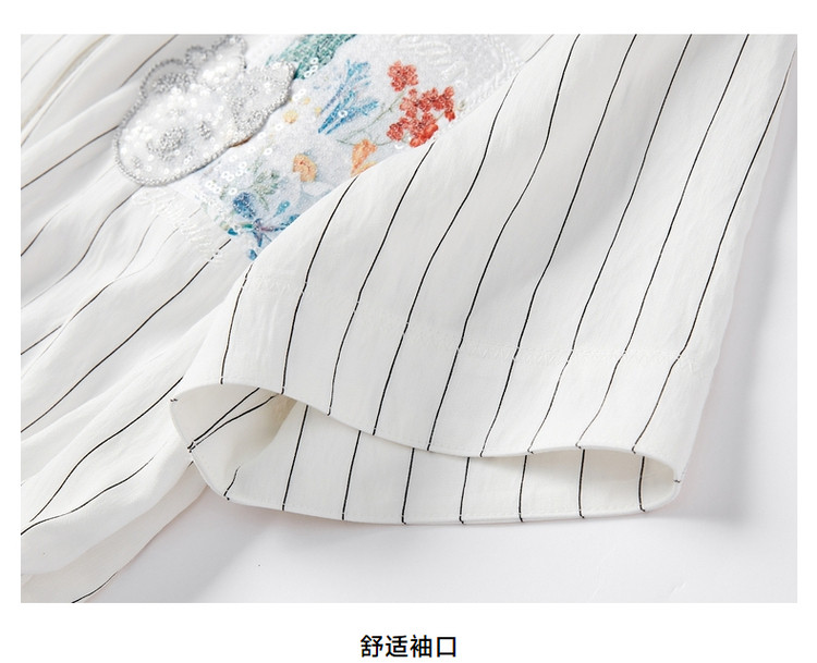 [商场同款]秋季文艺不规则印花翻领7分袖烫钻系腰带连衣裙 160095