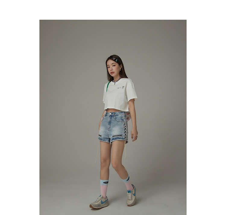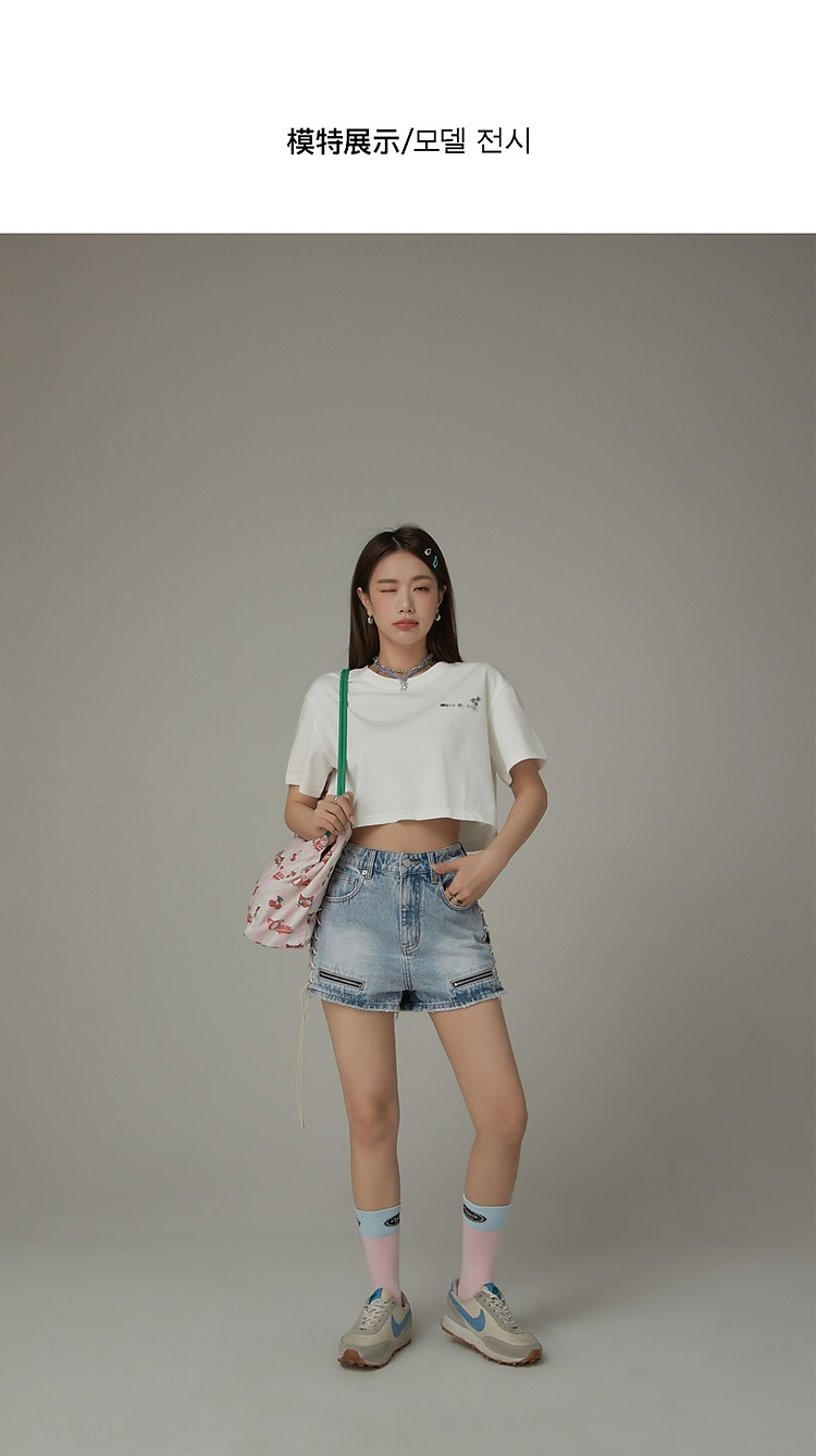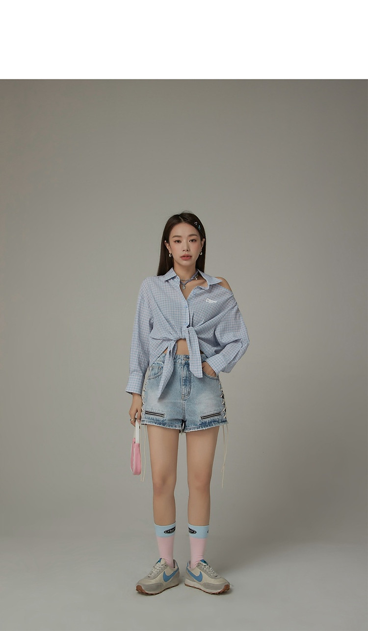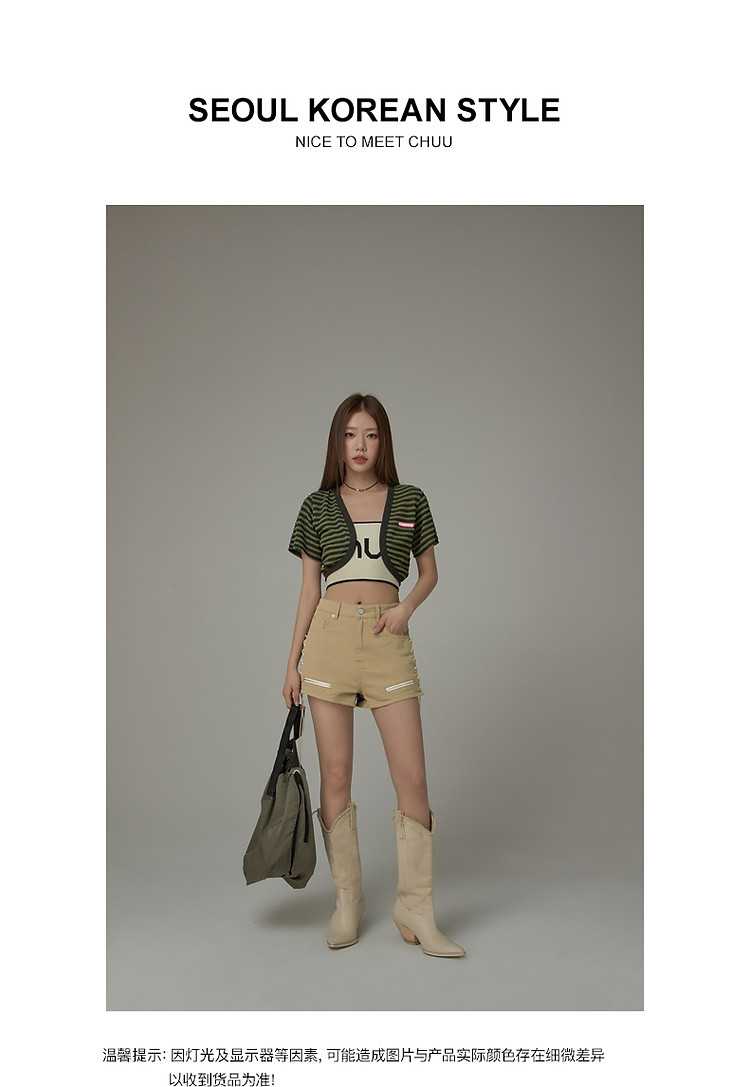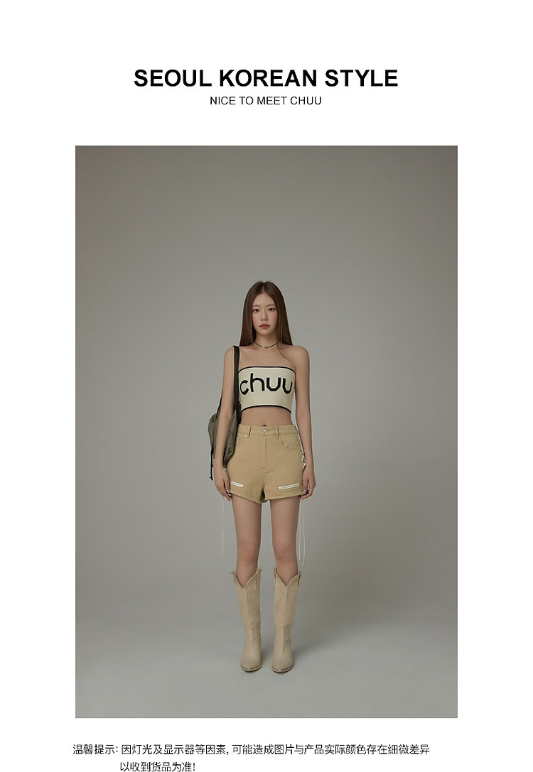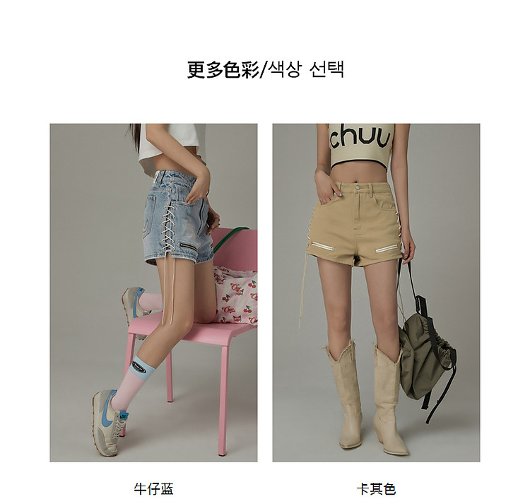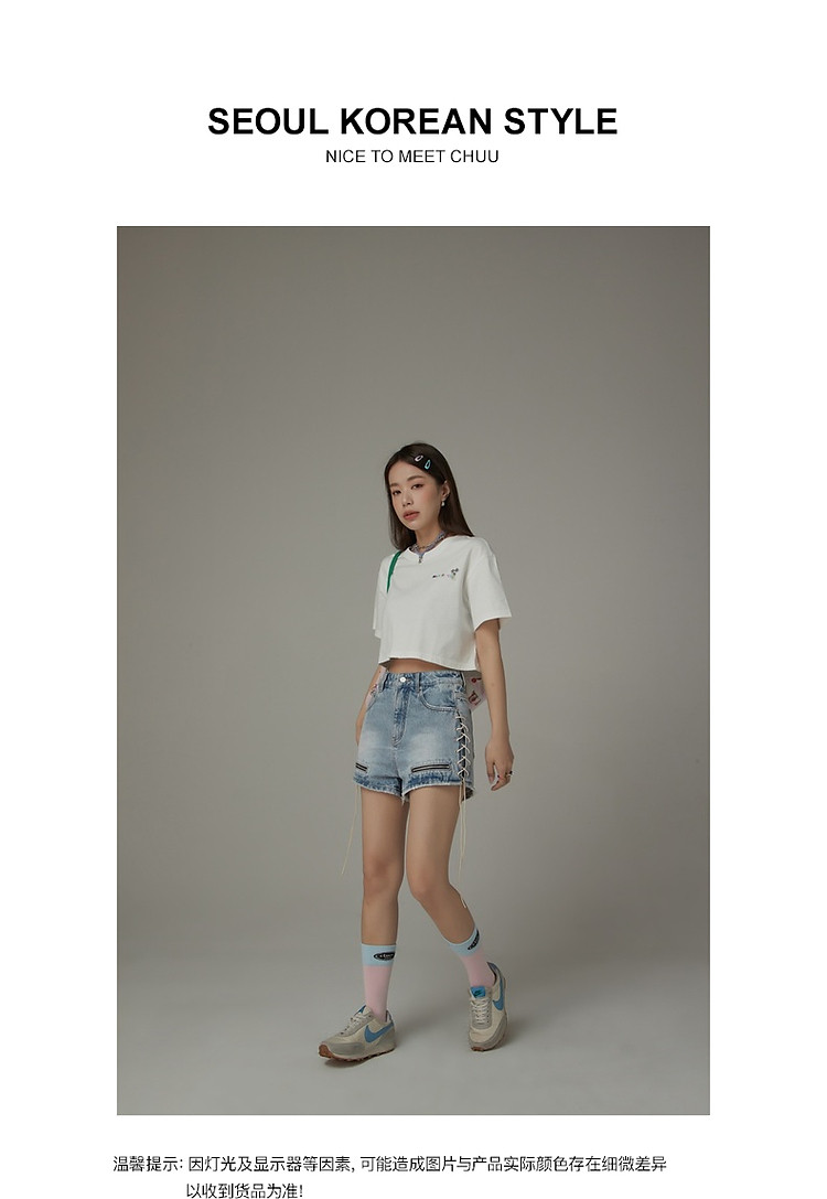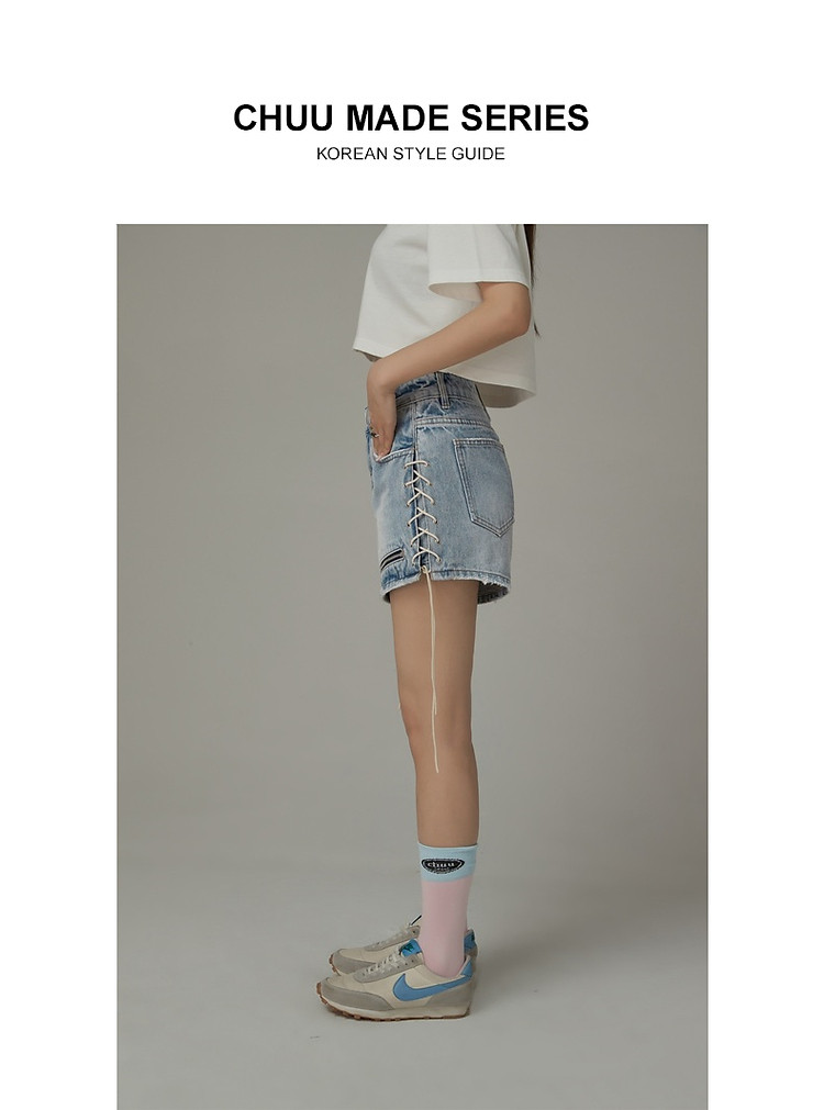商品名称:CHUU高腰绑带牛仔裤女夏设计感减龄洋气百搭短裤 300179