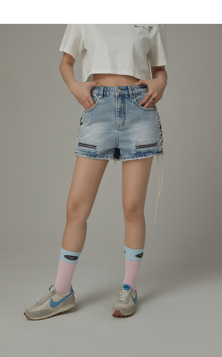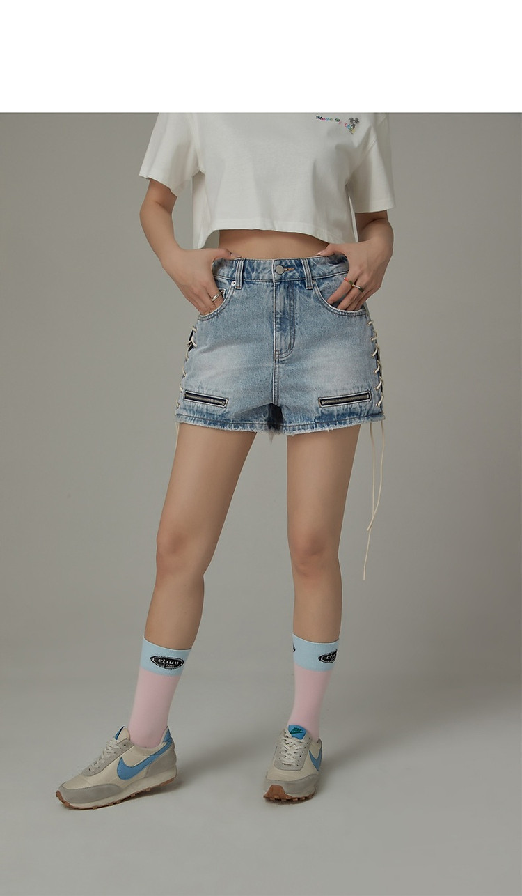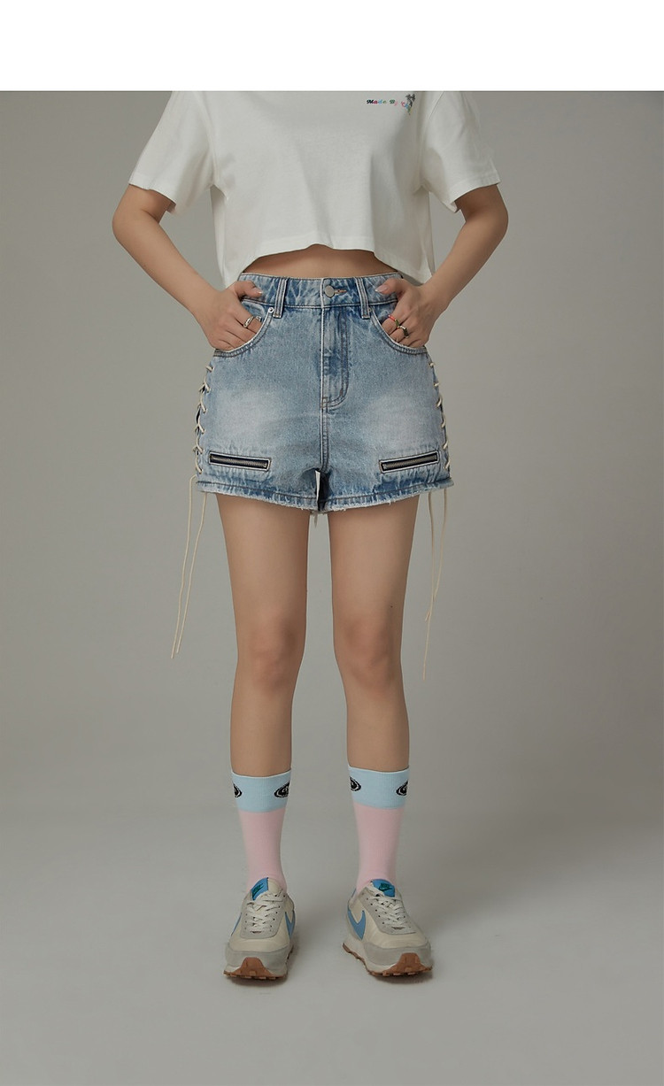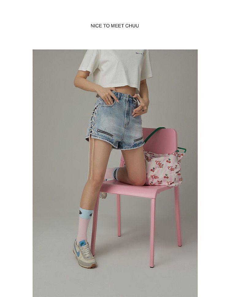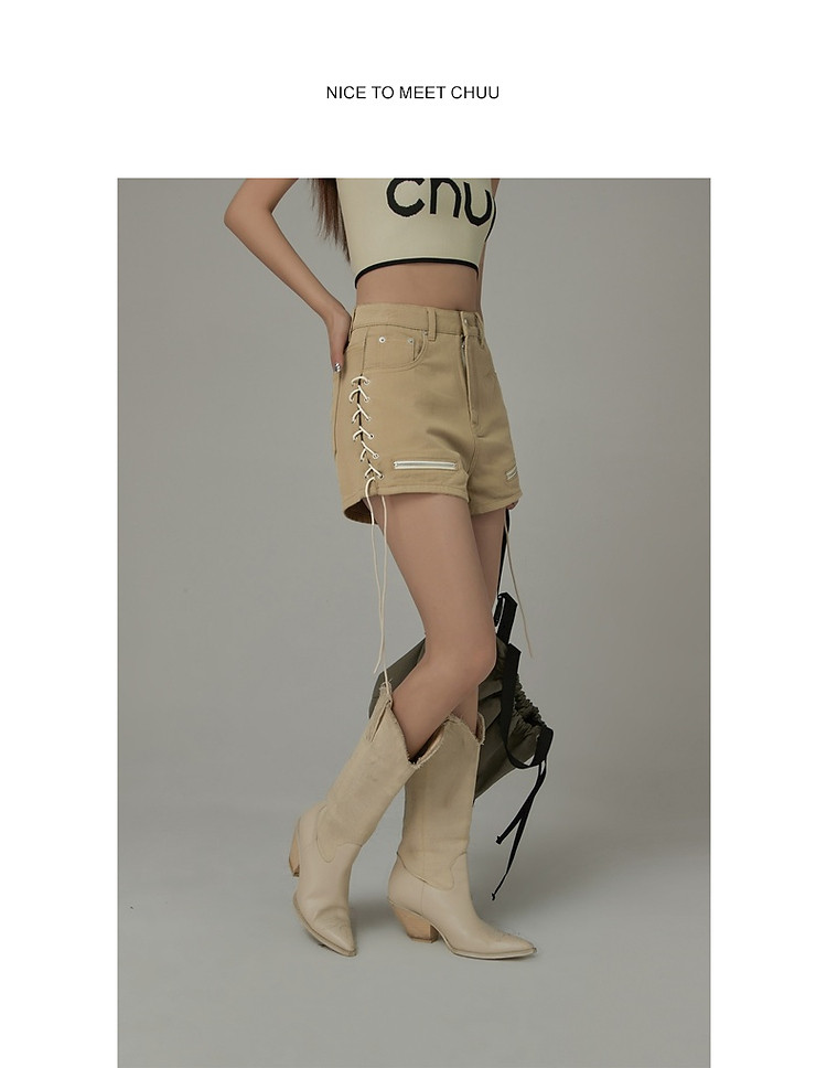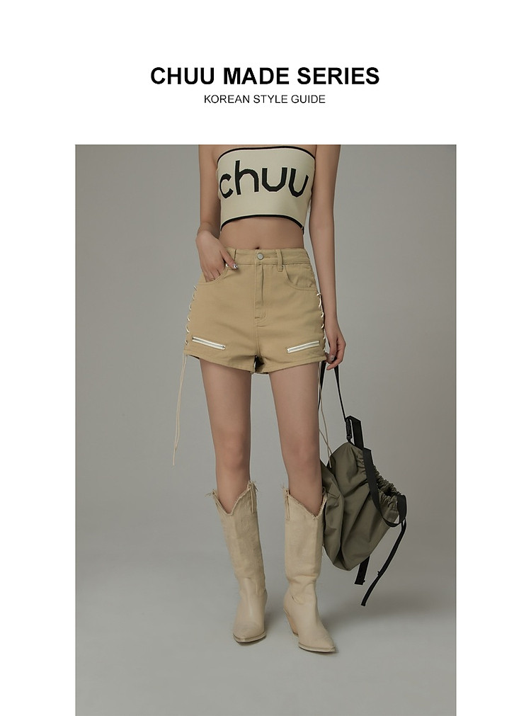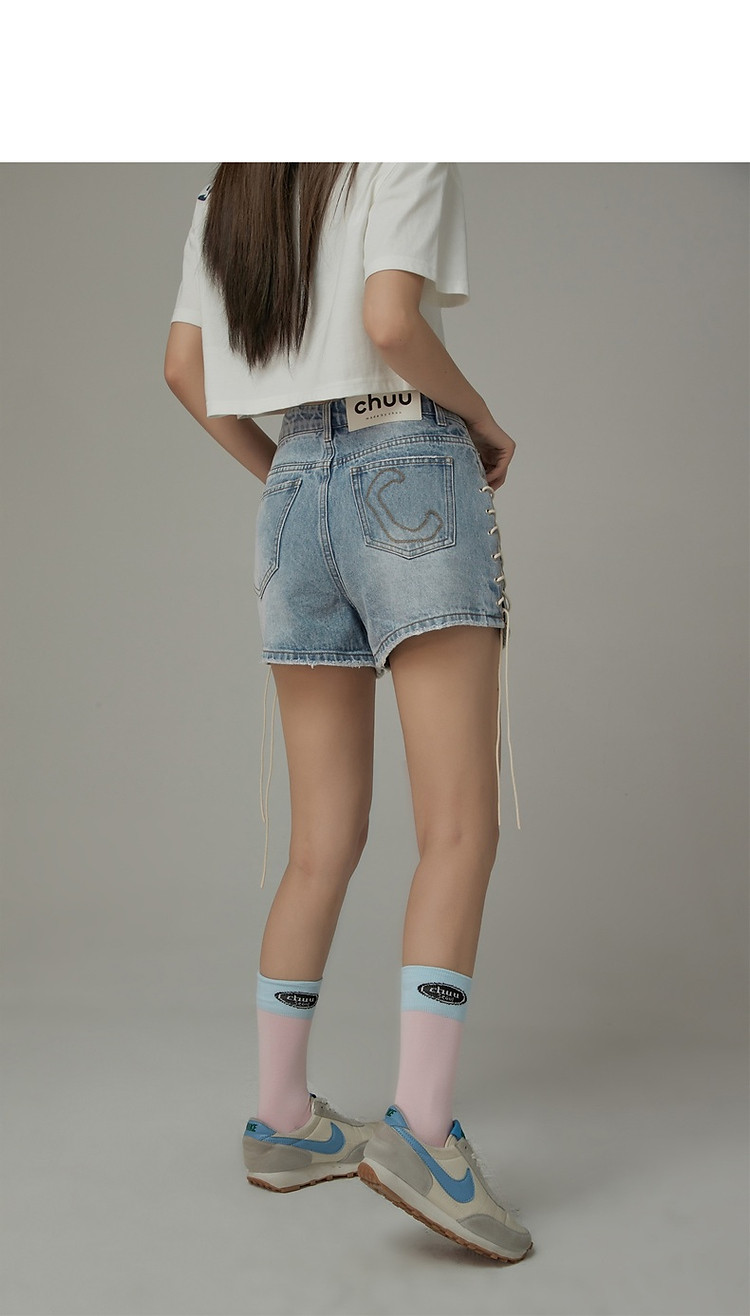 CHUU高腰绑带牛仔裤女夏设计感减龄洋气百搭短裤 300179