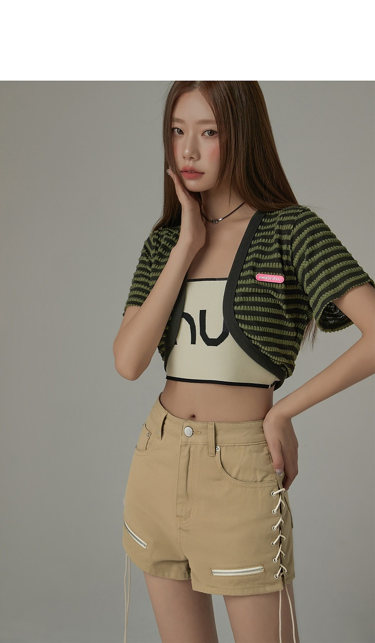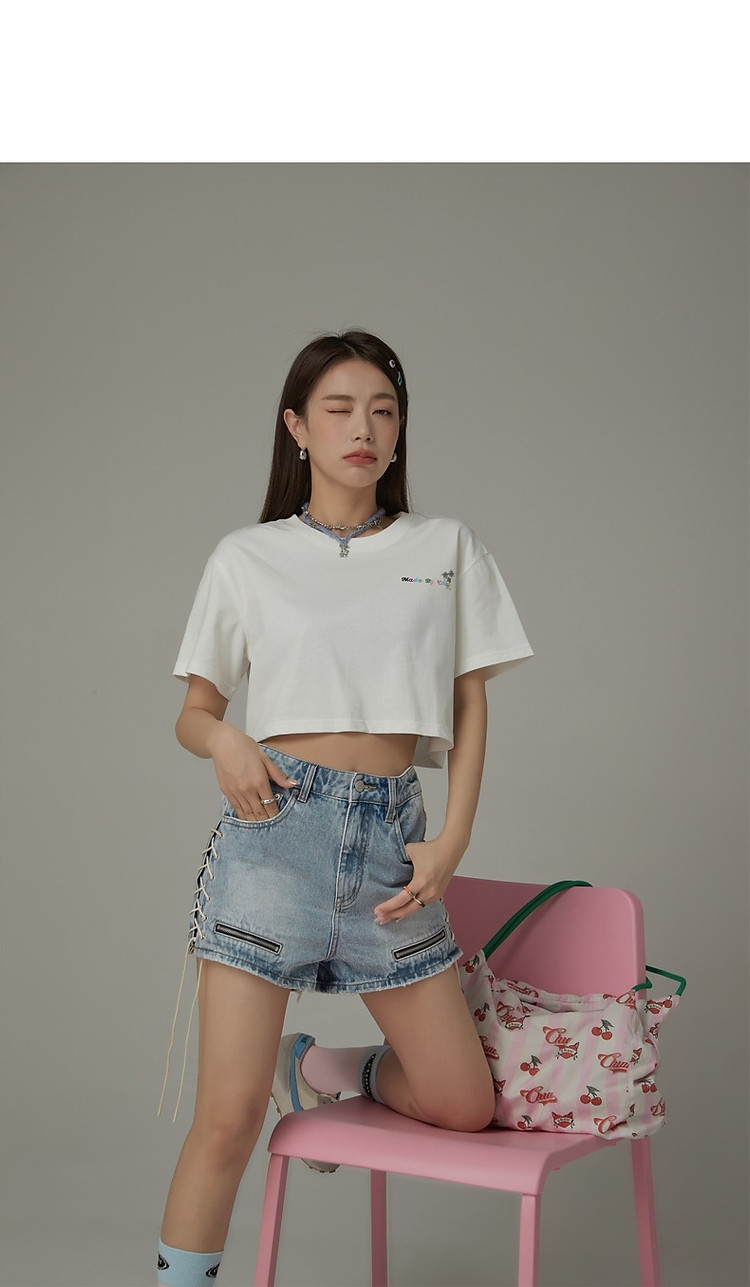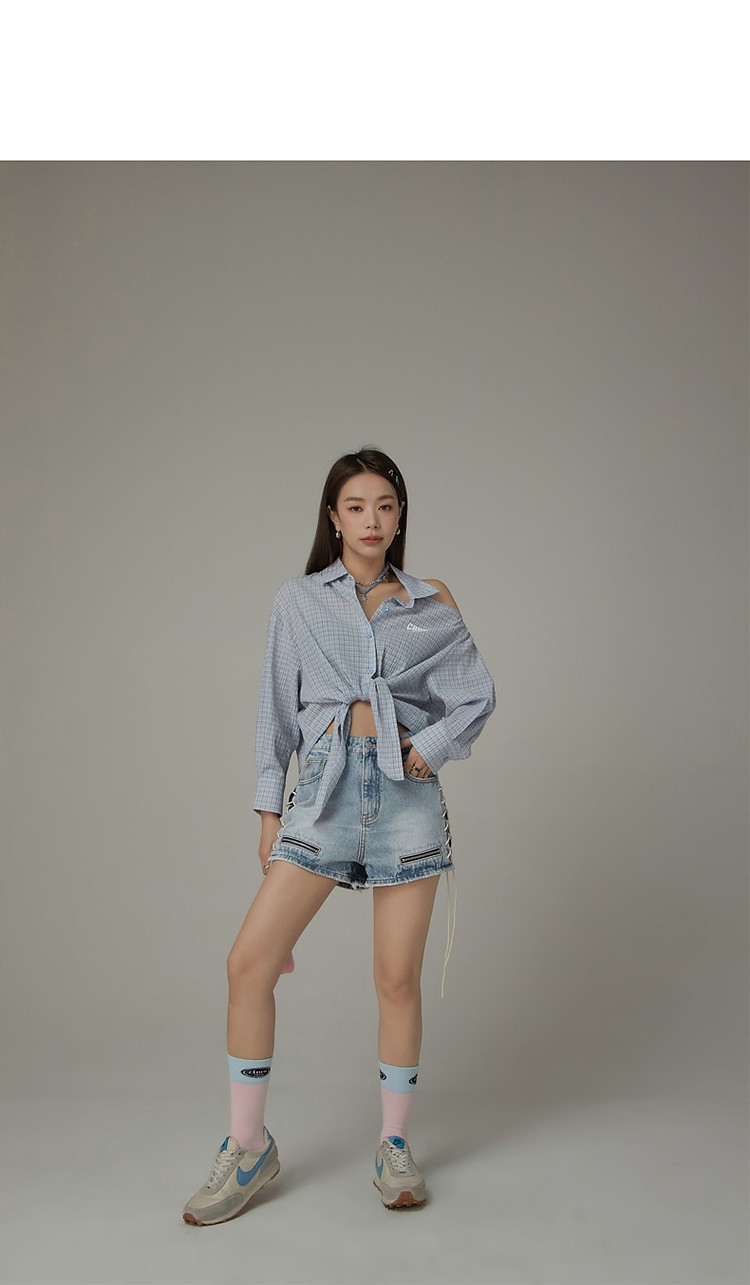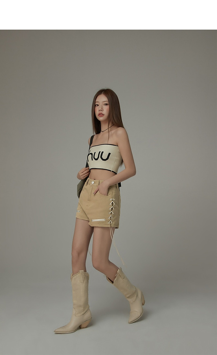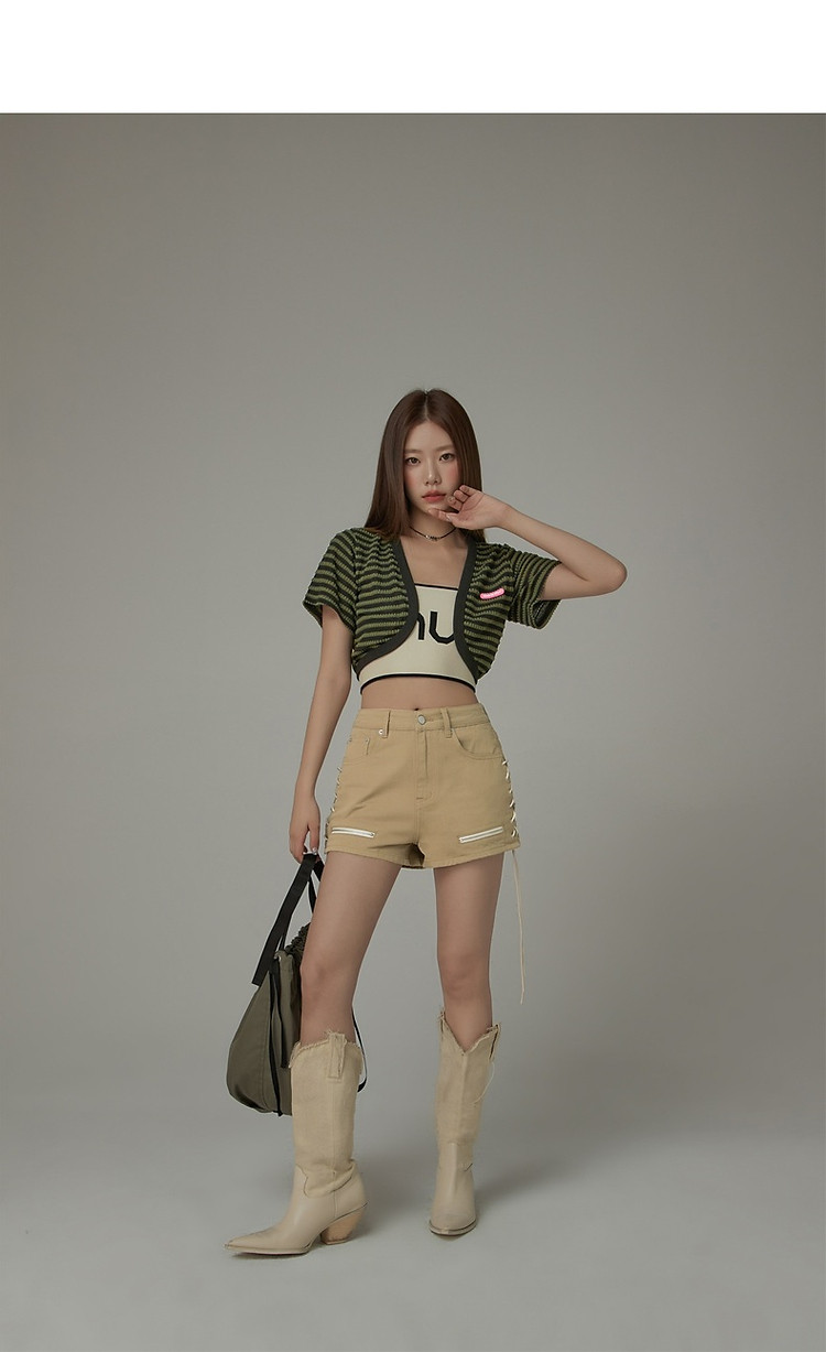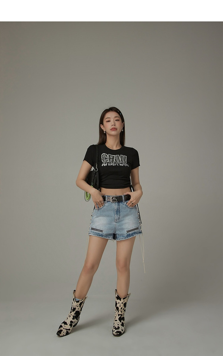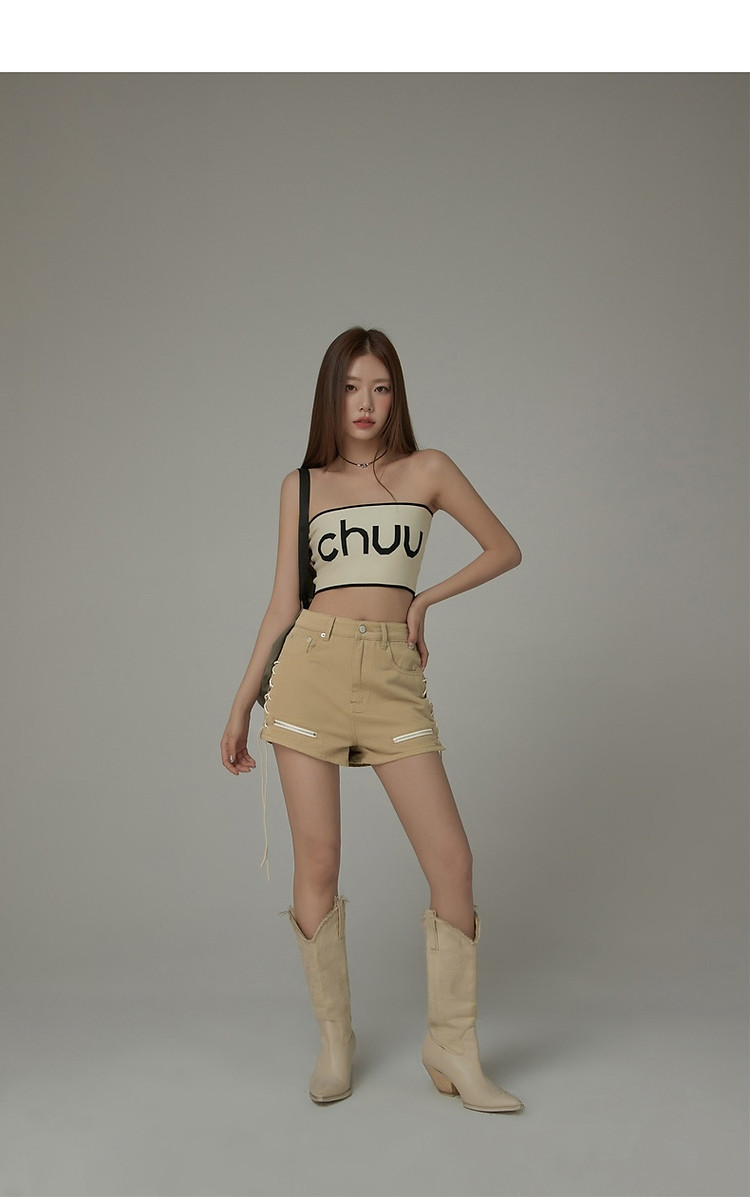 CHUU高腰绑带牛仔裤女夏设计感减龄洋气百搭短裤 300179
