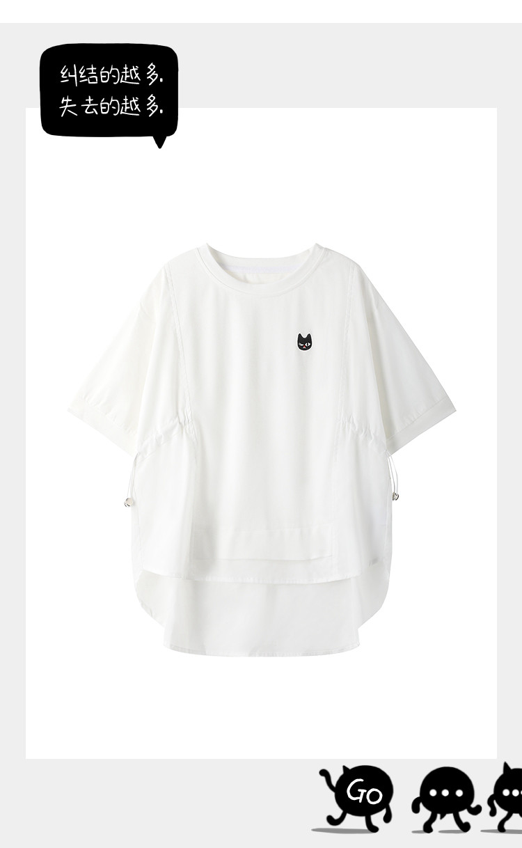商品名称:不规则松紧抽绳百搭休闲短袖上衣2025夏季宽松显瘦女式T恤 703133