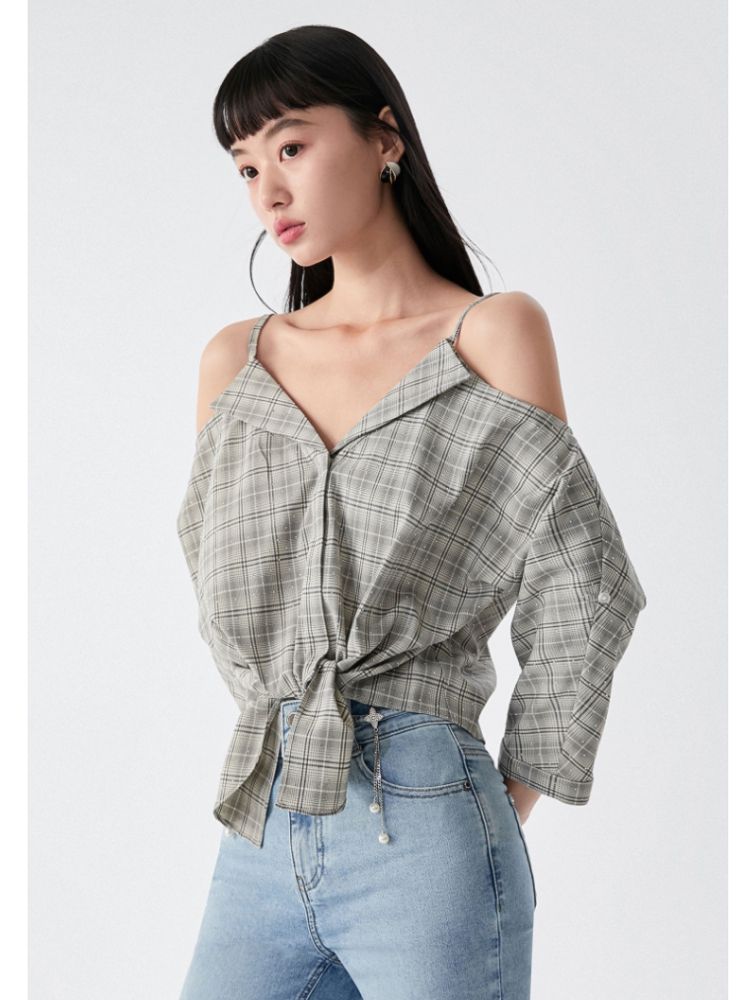 【专柜同款】吊带露肩七分袖上衣女 370385