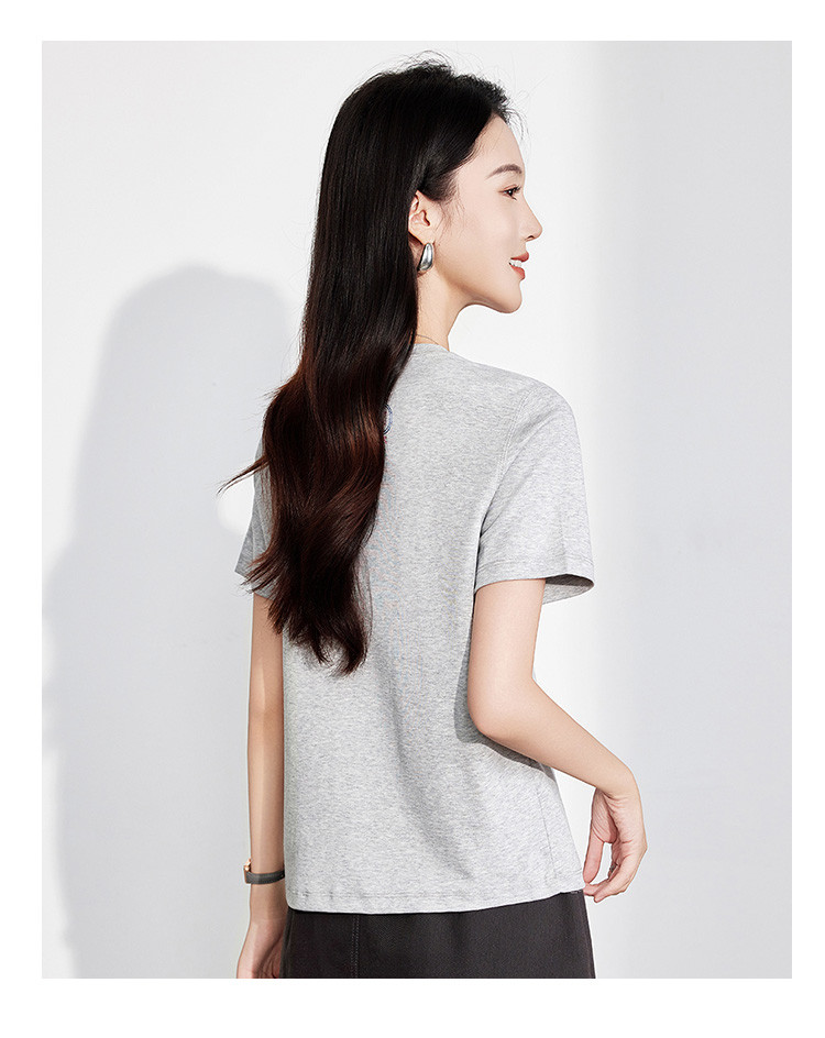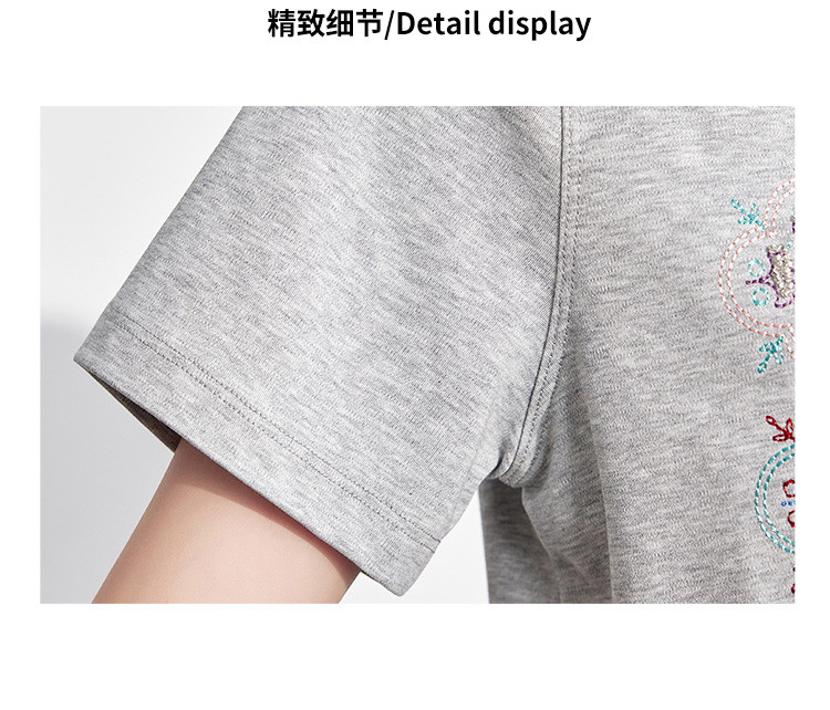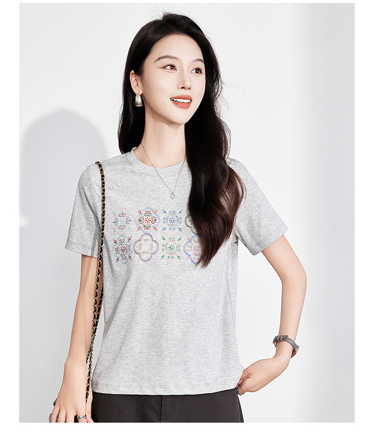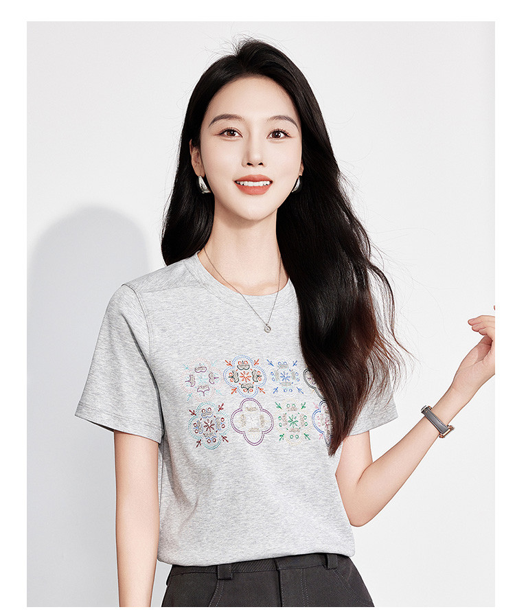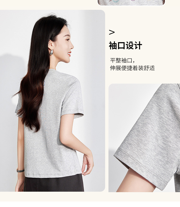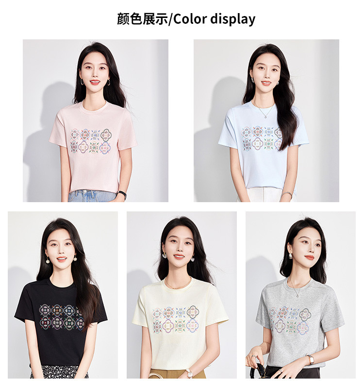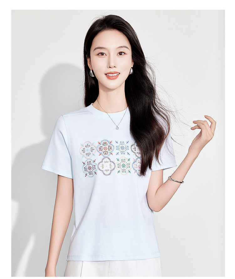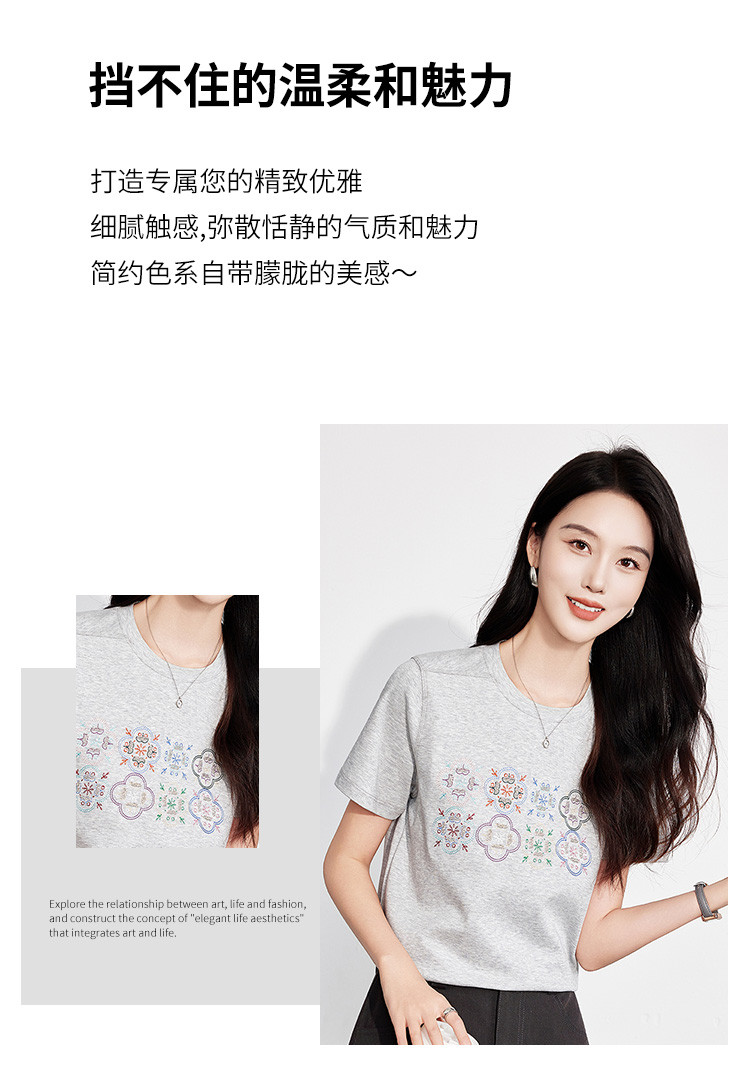 商品名称:25夏季新款时尚温柔刺绣钉珠短袖上衣女式休闲日常通勤微弹T恤 969439